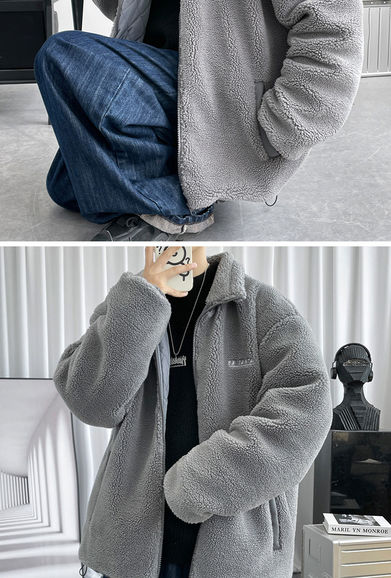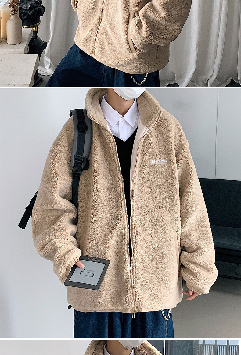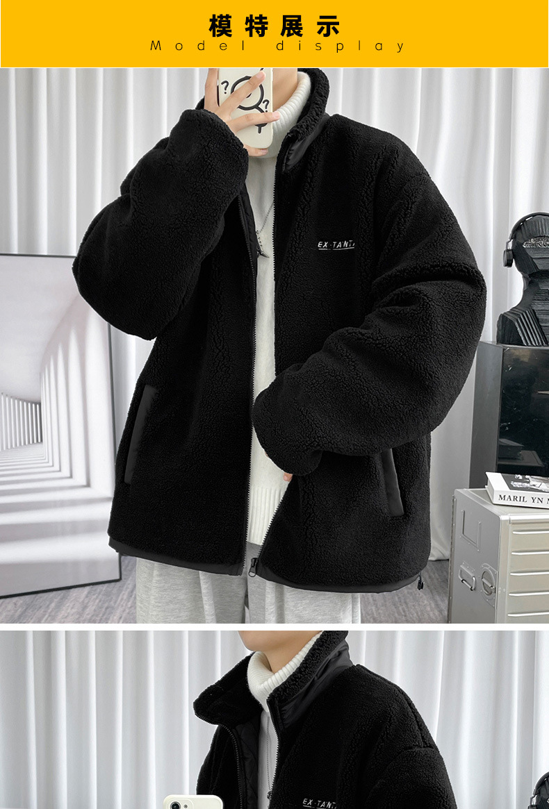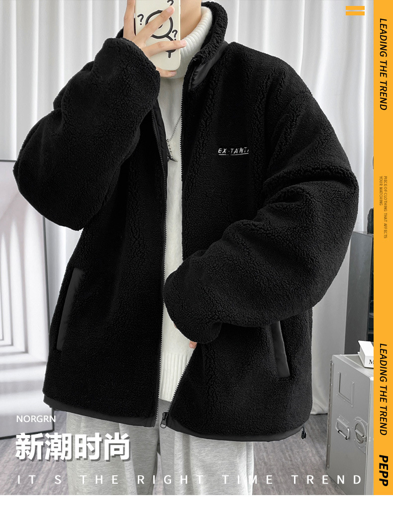 羊羔绒外套男秋冬季加厚羊羔毛立领棉衣宽松潮牌ins潮流棉服冬装