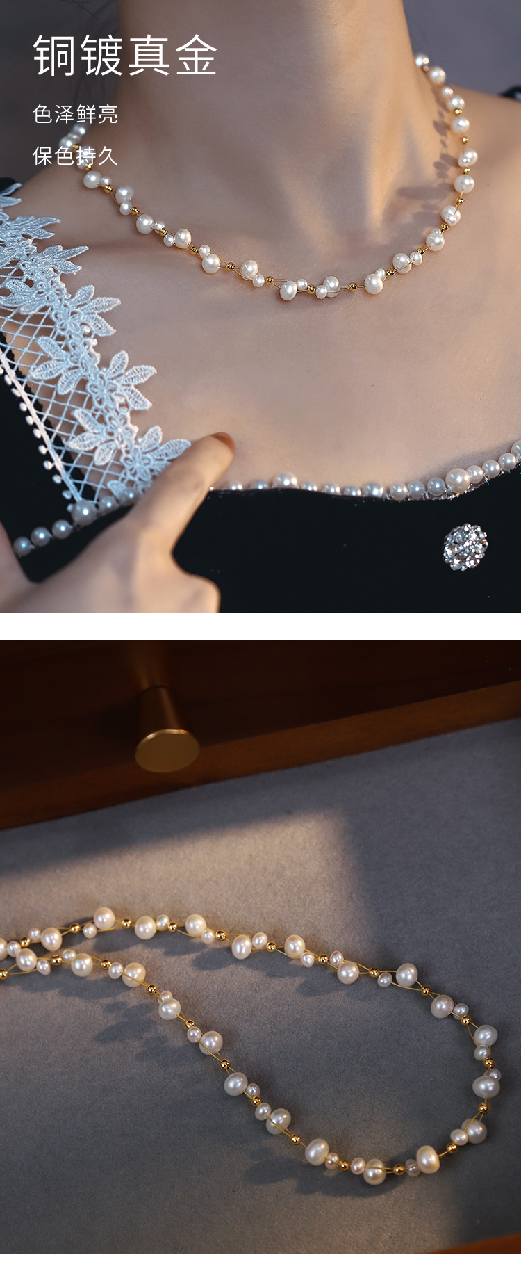 小金珠淡水珍珠项链女复古法式时尚宫廷风格气质秋冬新款简约饰品