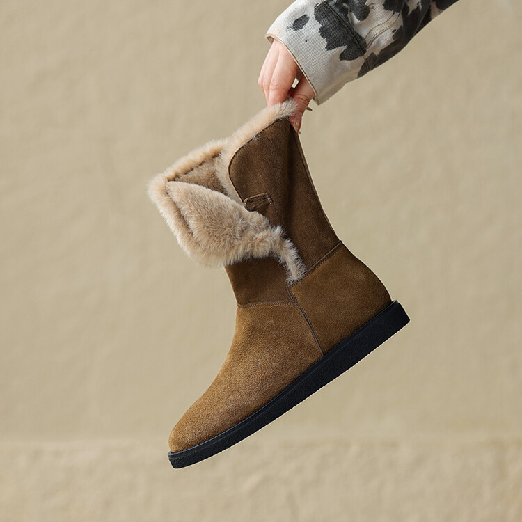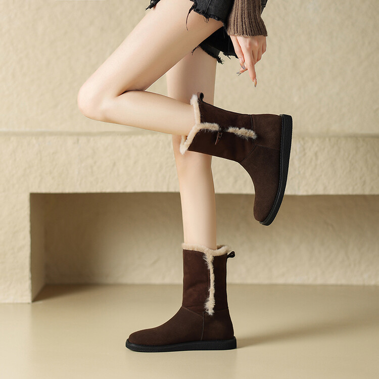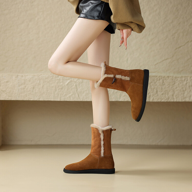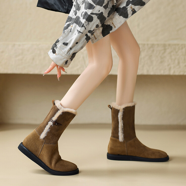 겨울 기모 통굽 플랫부츠