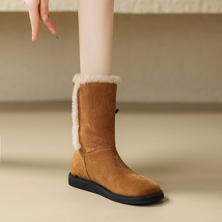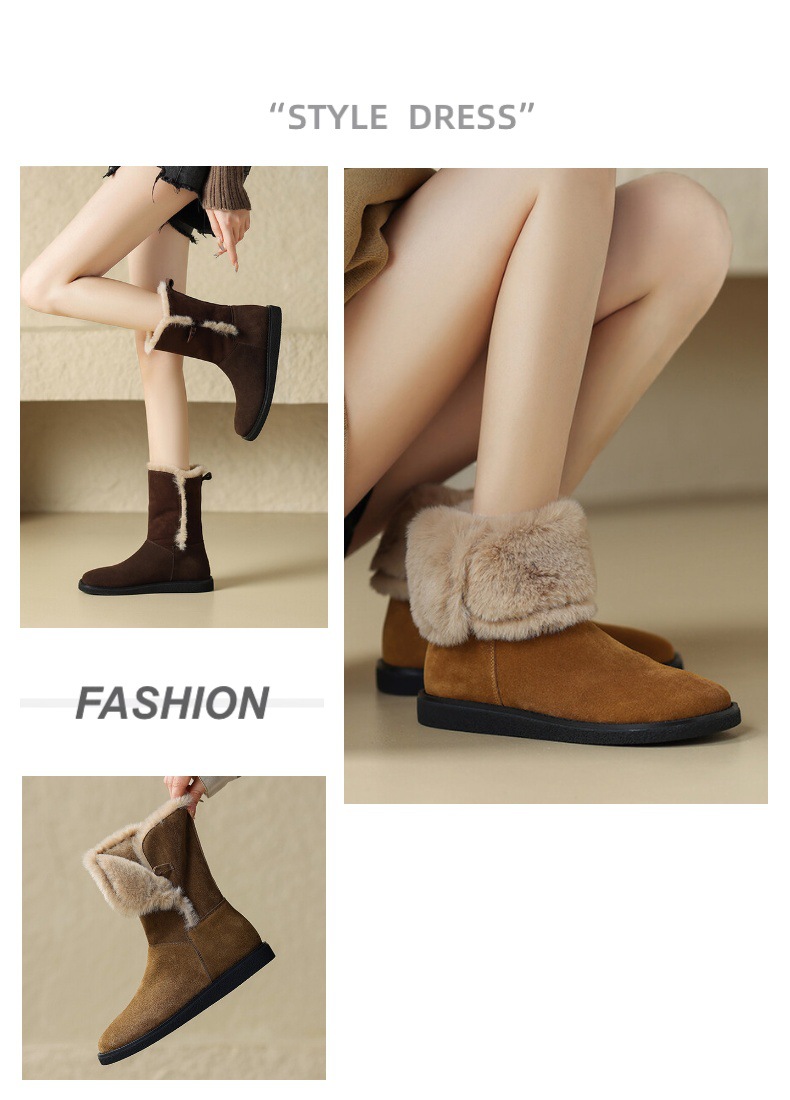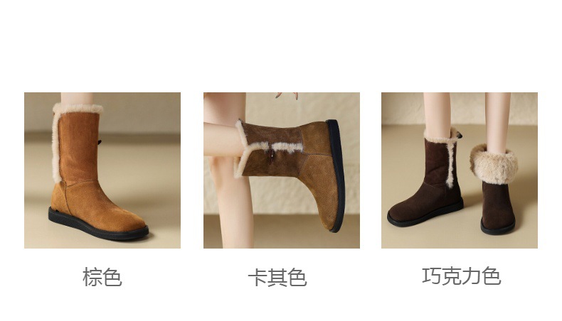 雪地靴女磨砂2023年冬季新款保暖厚底加绒厚棉中筒靴平底靴东北靴