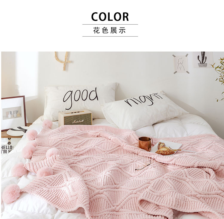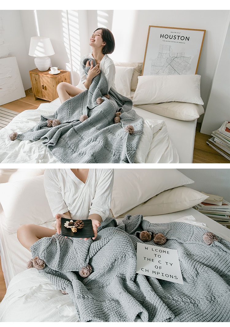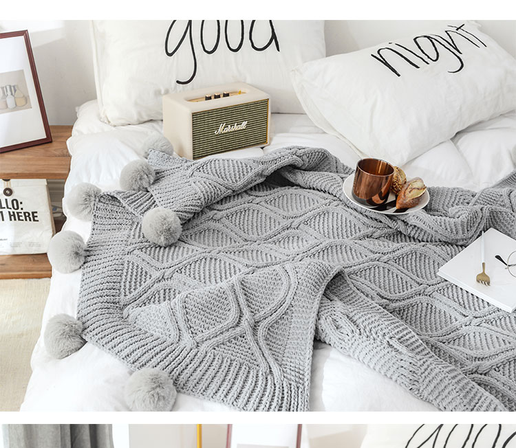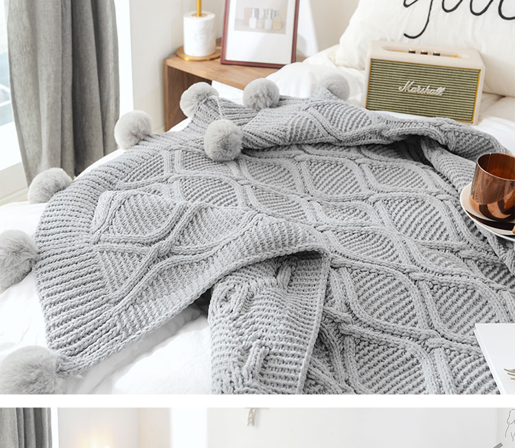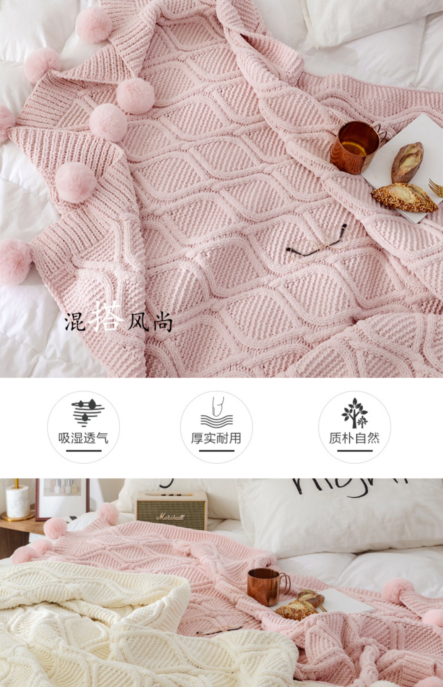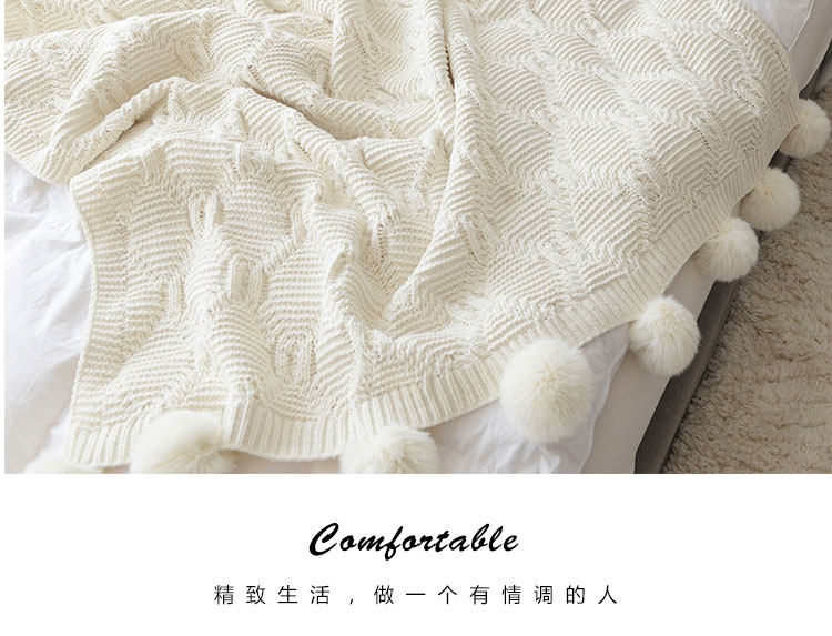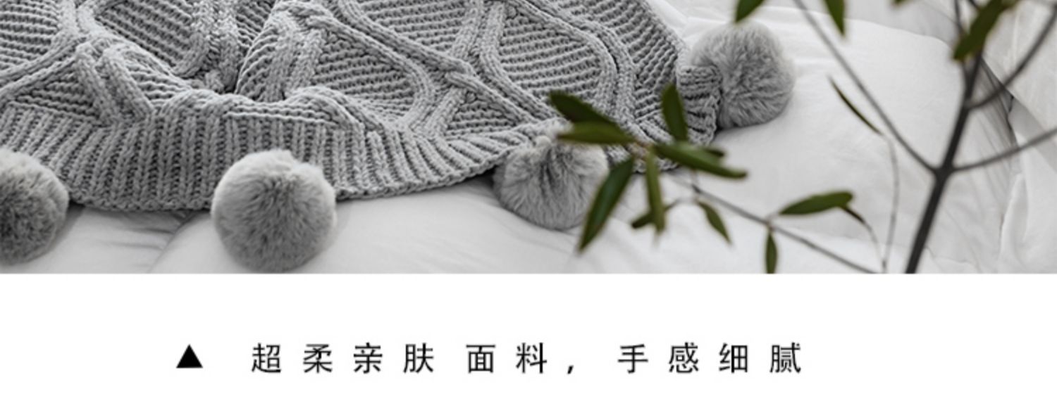 北欧沙发毯加厚盖毯披肩轻奢针织毛线毯床尾搭毯盖毯装饰球球毯子