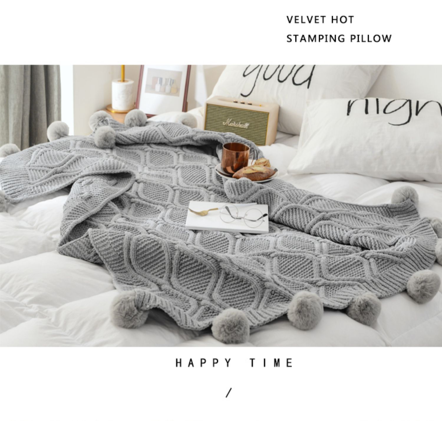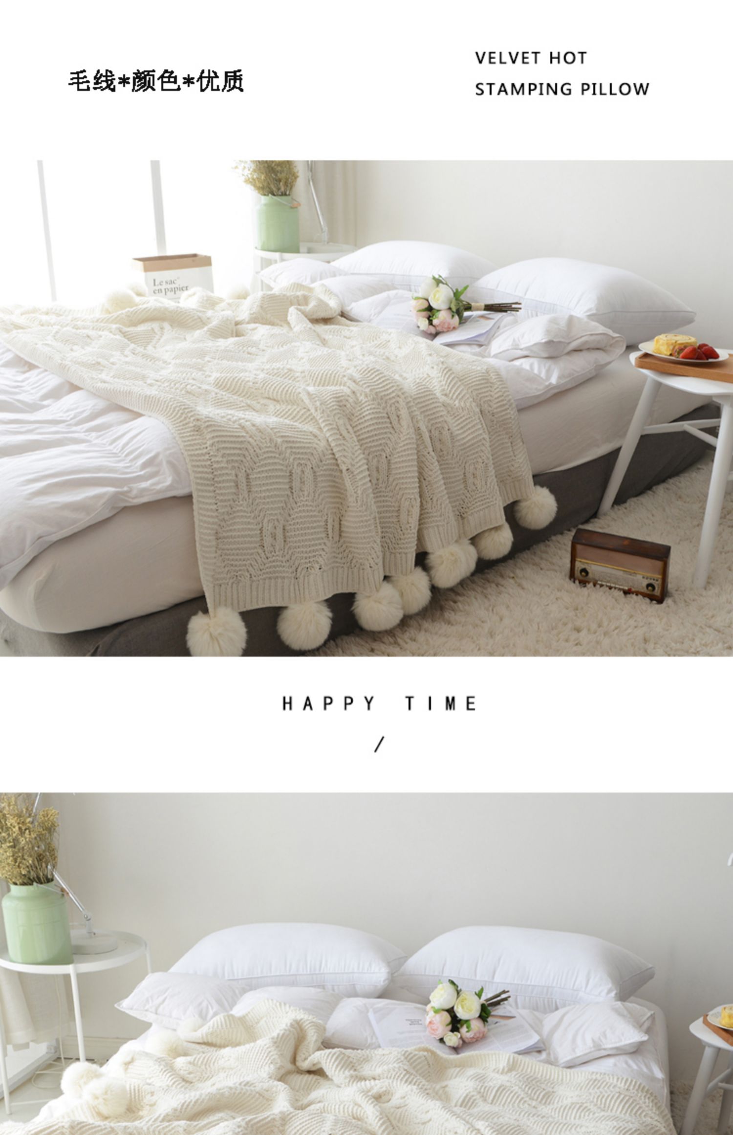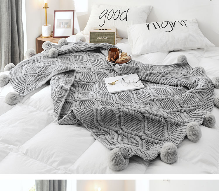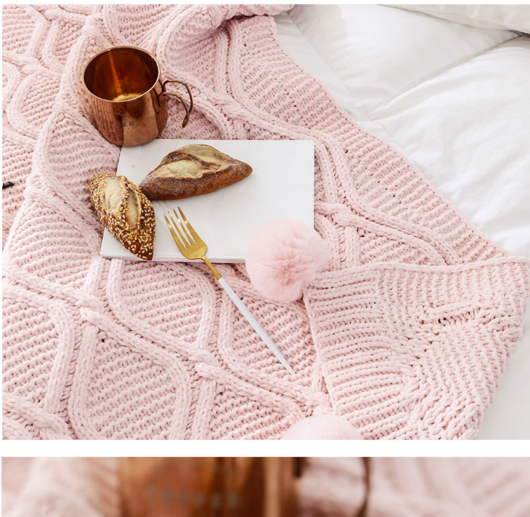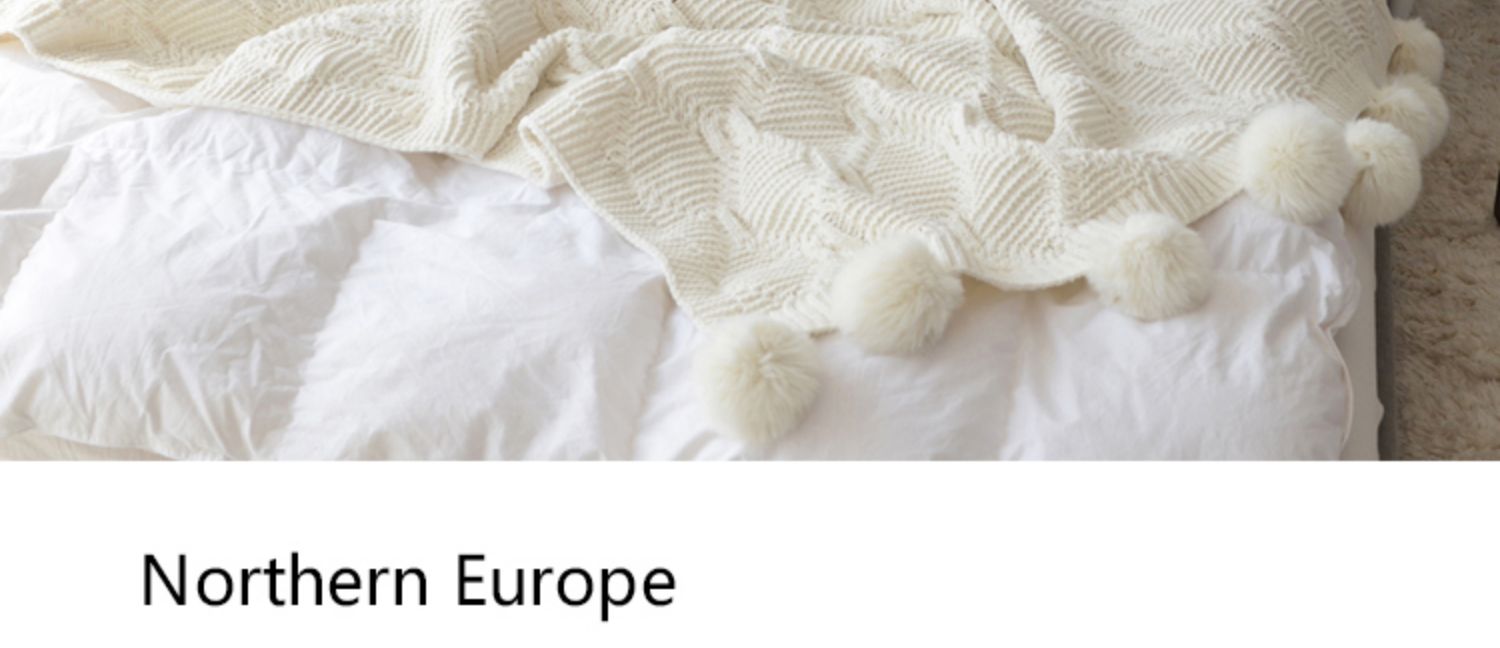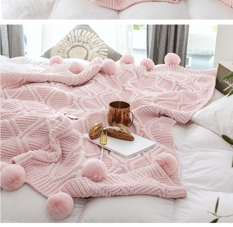 北欧沙发毯加厚盖毯披肩轻奢针织毛线毯床尾搭毯盖毯装饰球球毯子