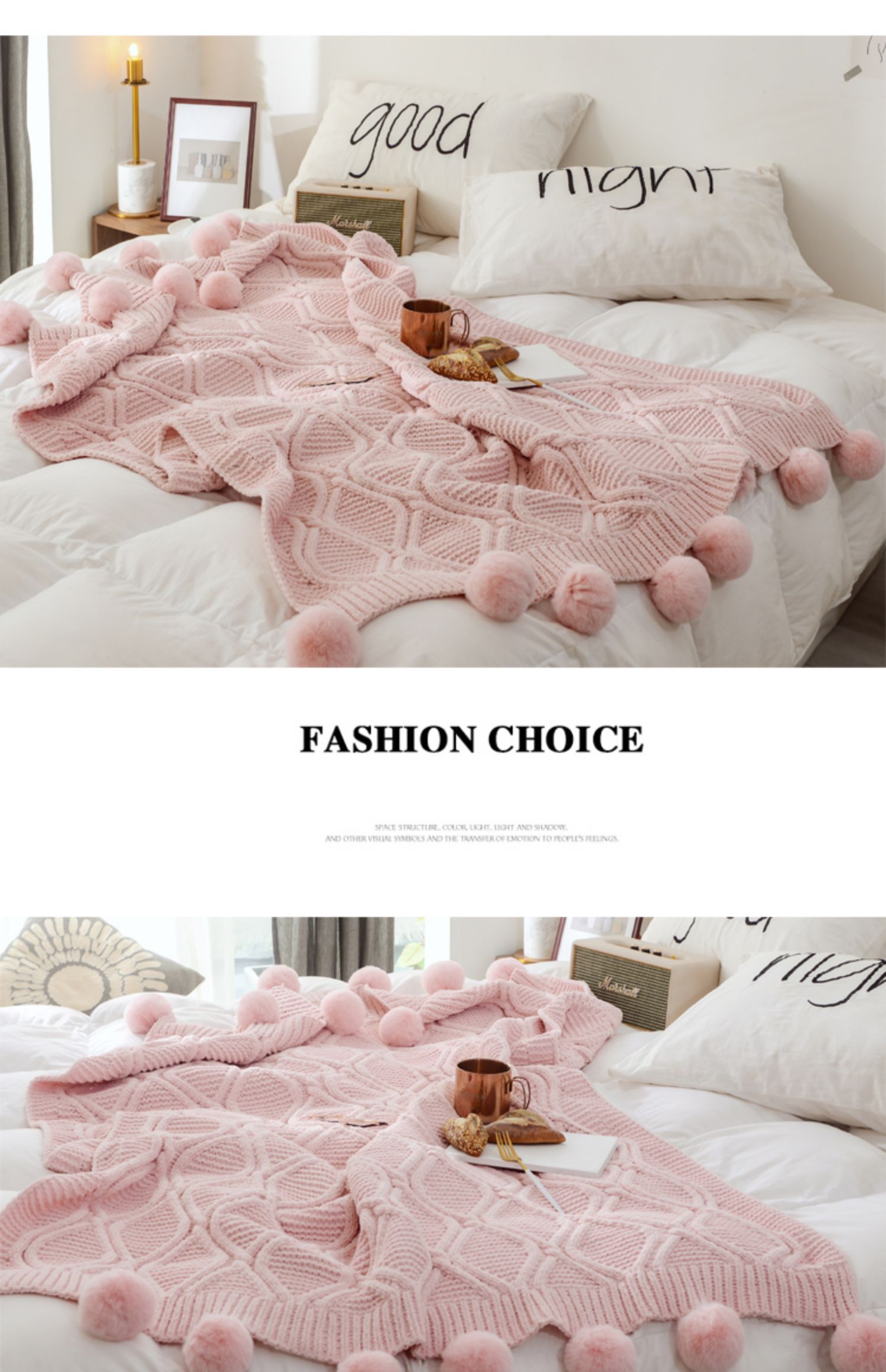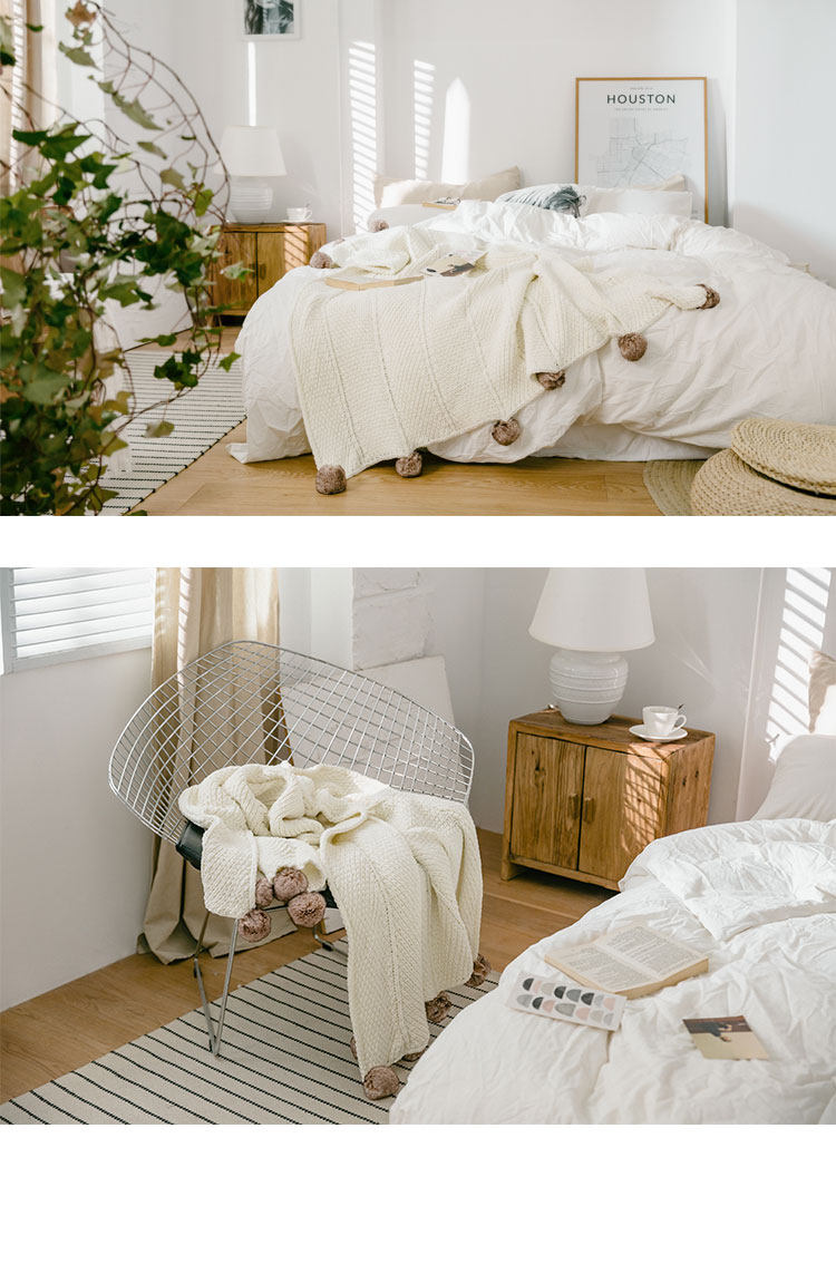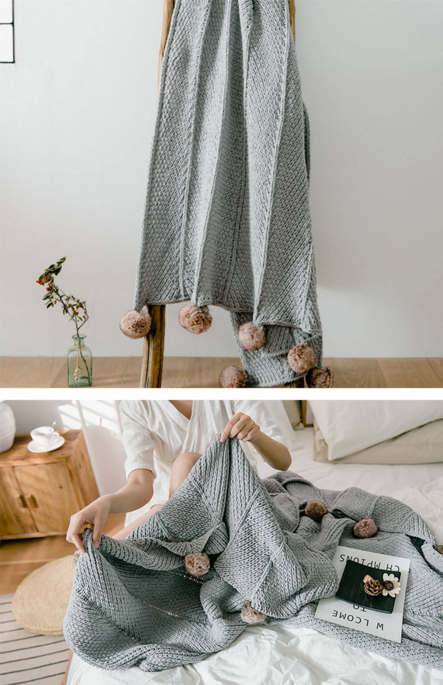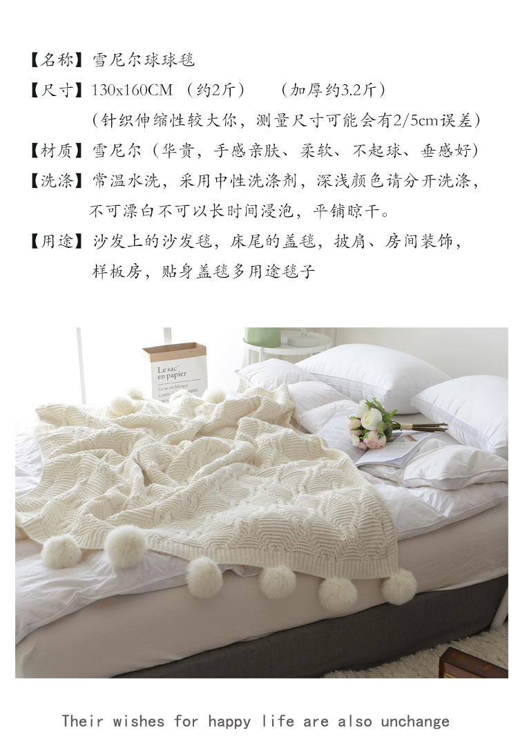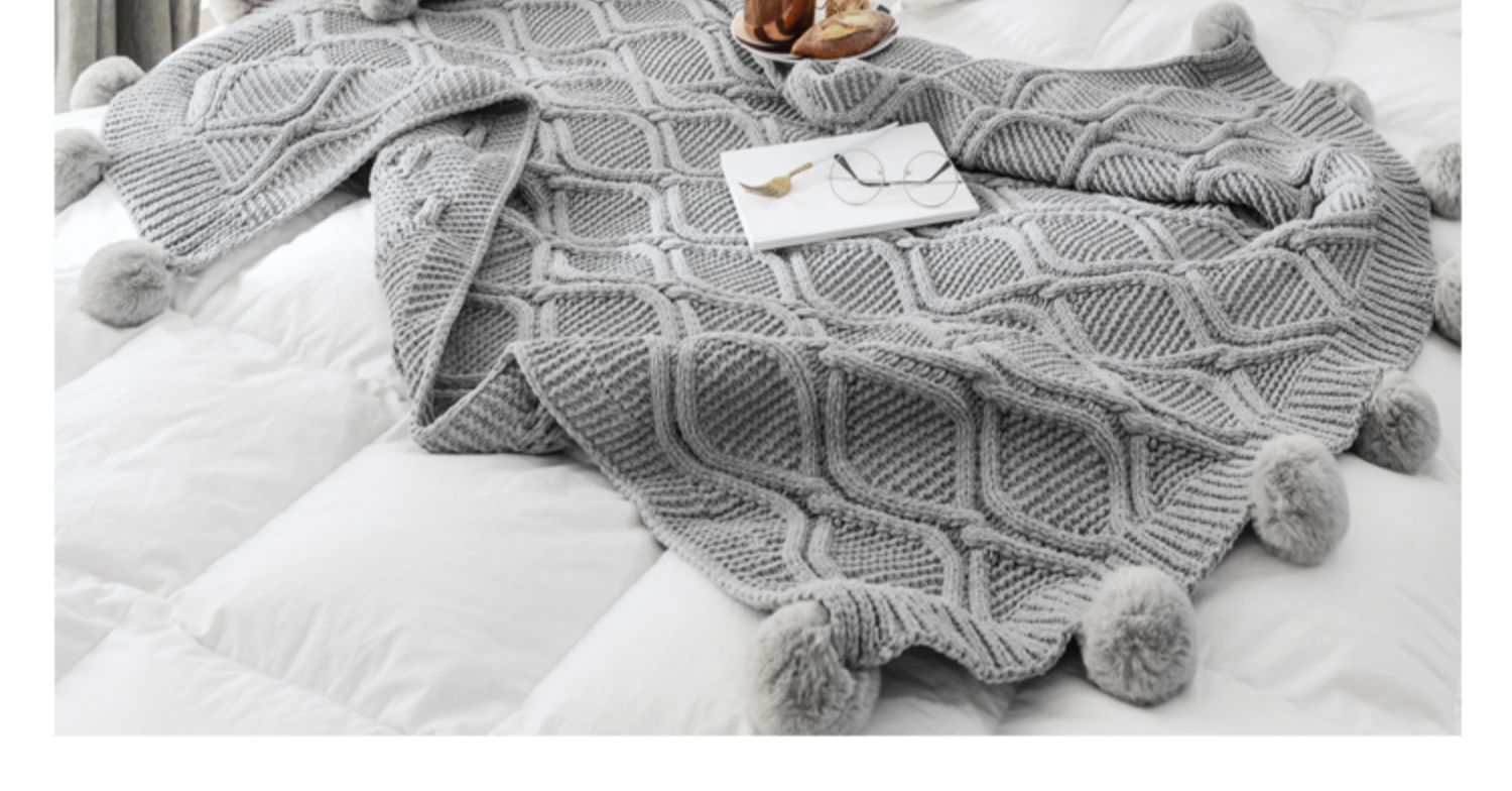 北欧沙发毯加厚盖毯披肩轻奢针织毛线毯床尾搭毯盖毯装饰球球毯子