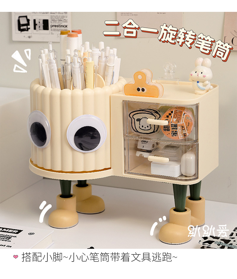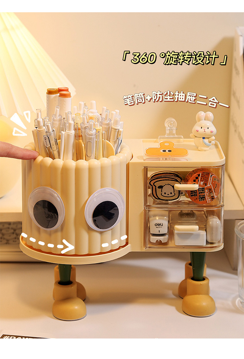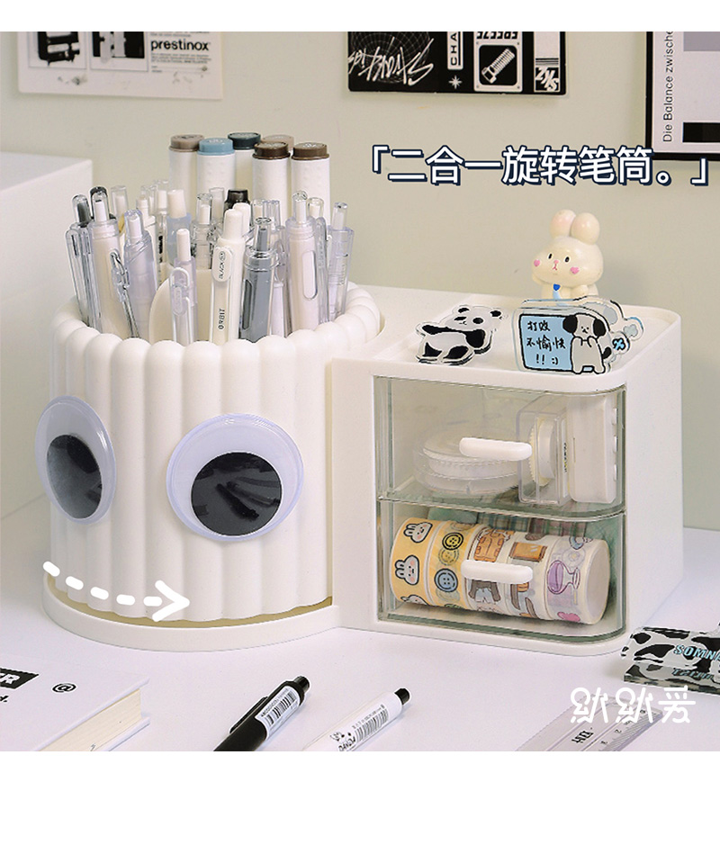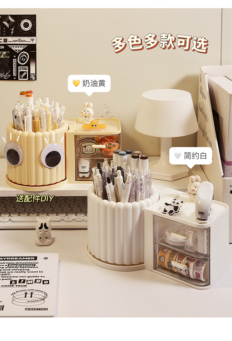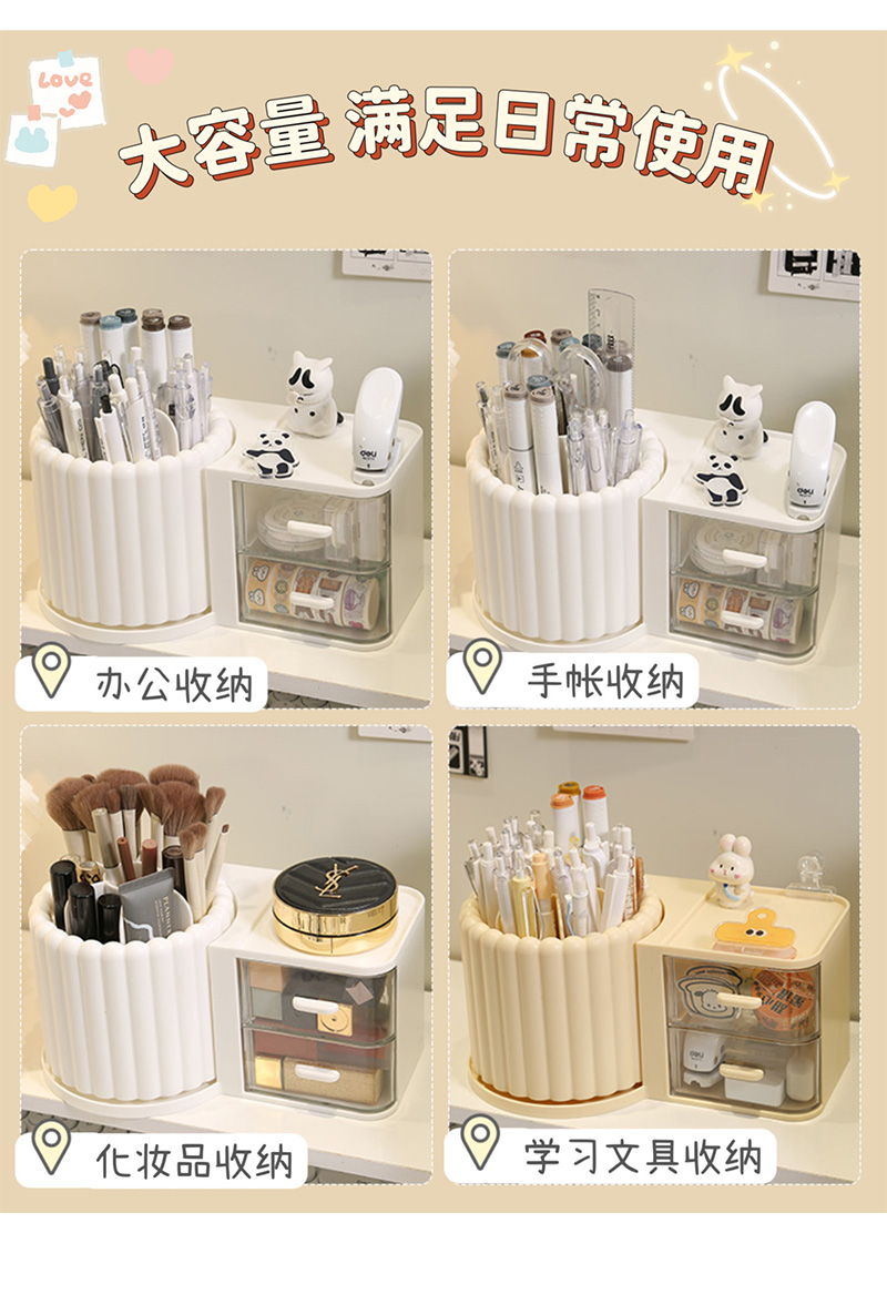 大容量旋转笔筒儿童创意桌面收纳盒办公室男孩女轻奢高级感置物架