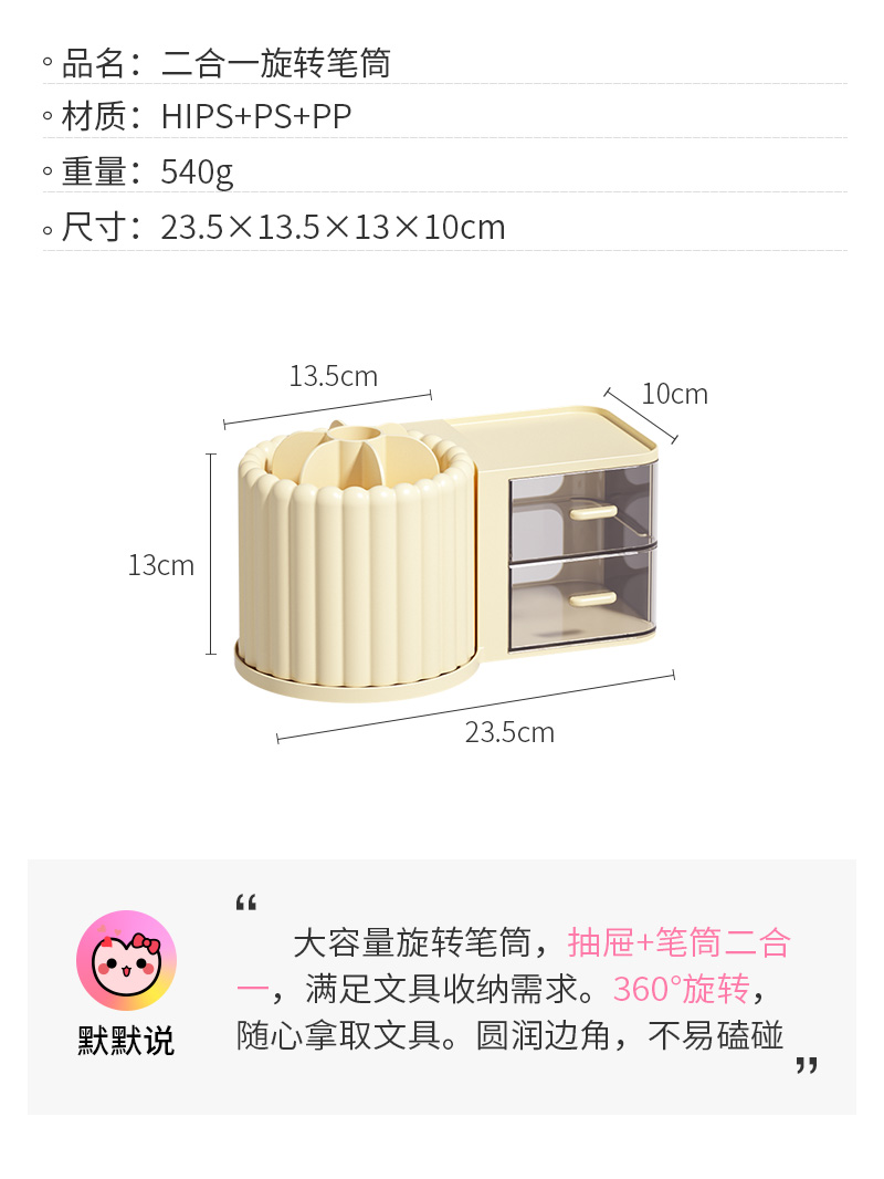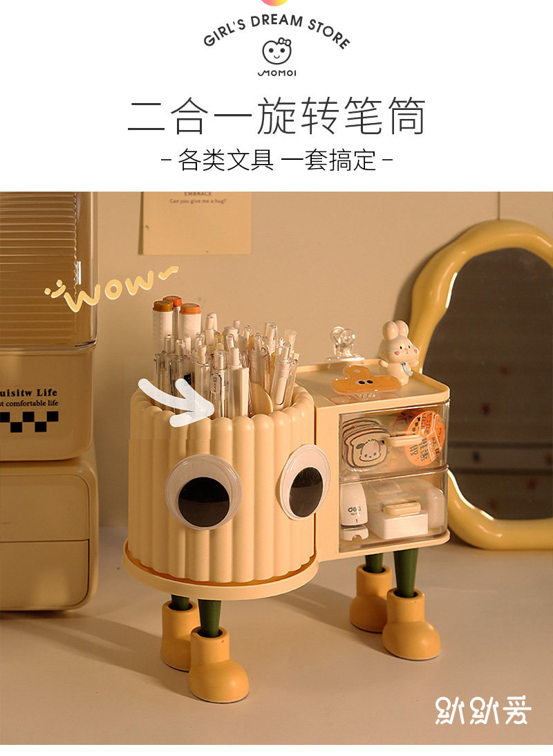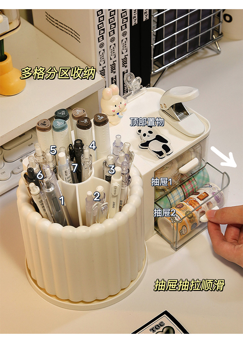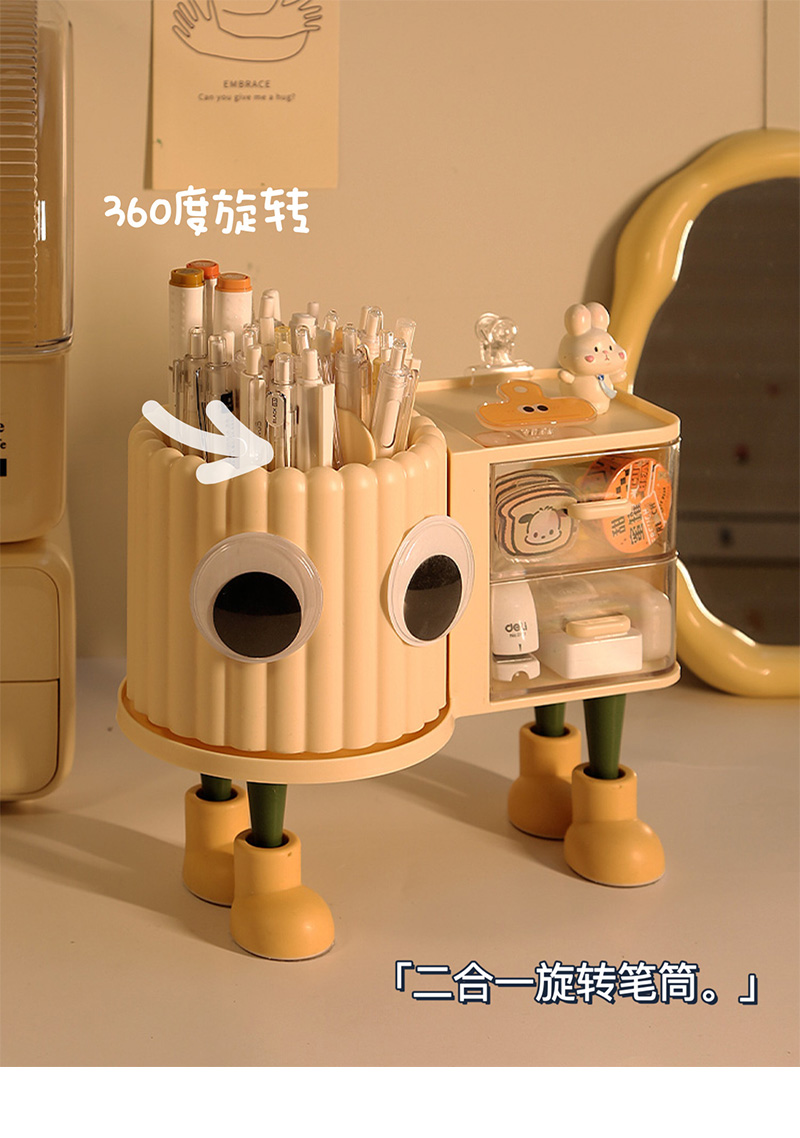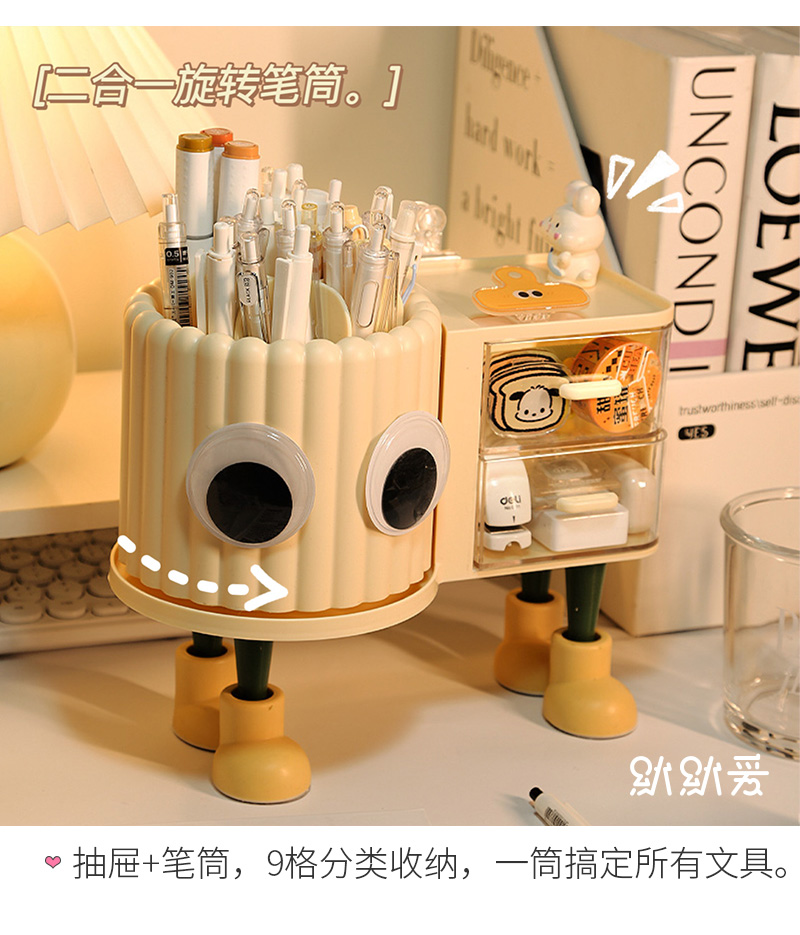 大容量旋转笔筒儿童创意桌面收纳盒办公室男孩女轻奢高级感置物架