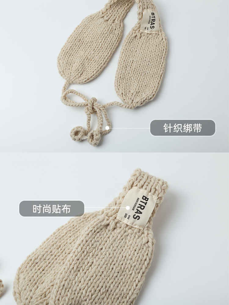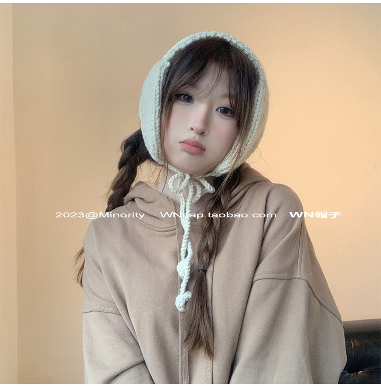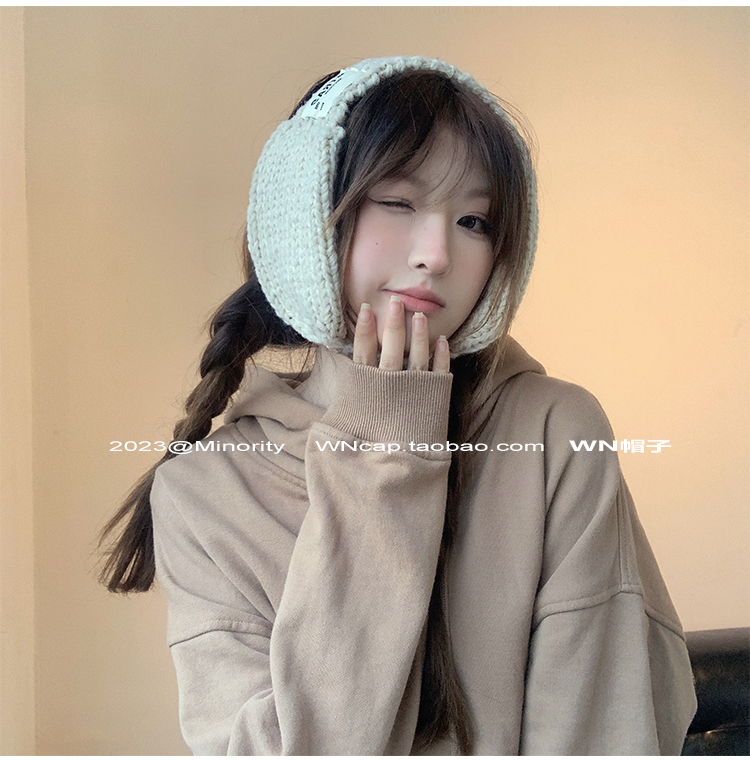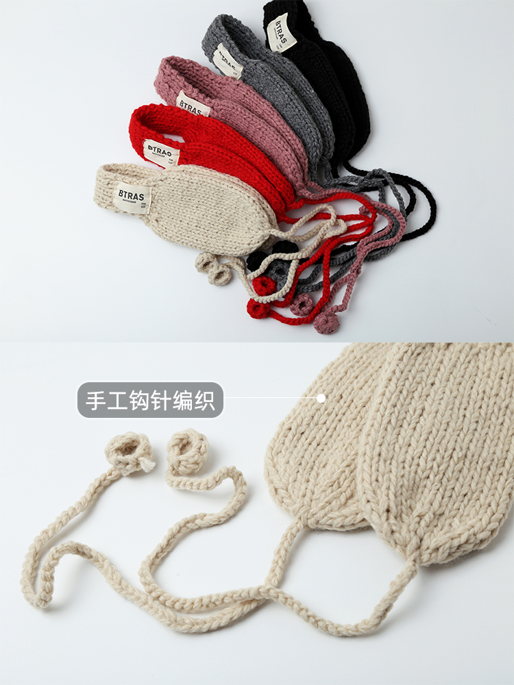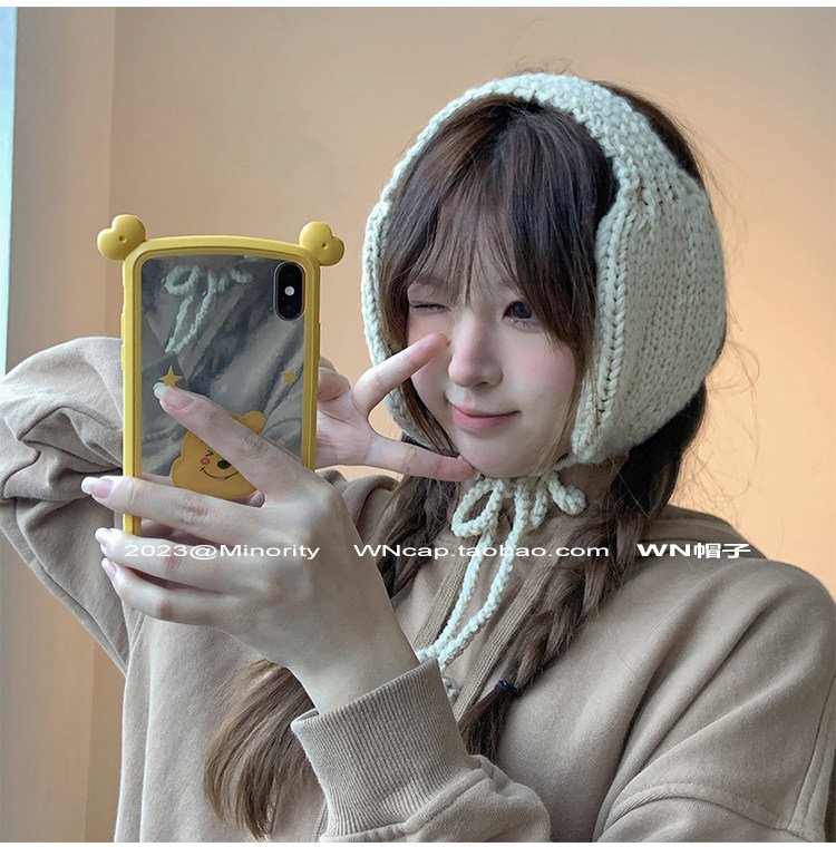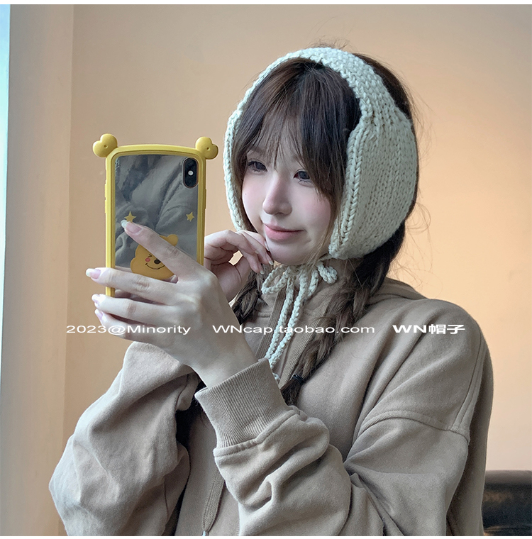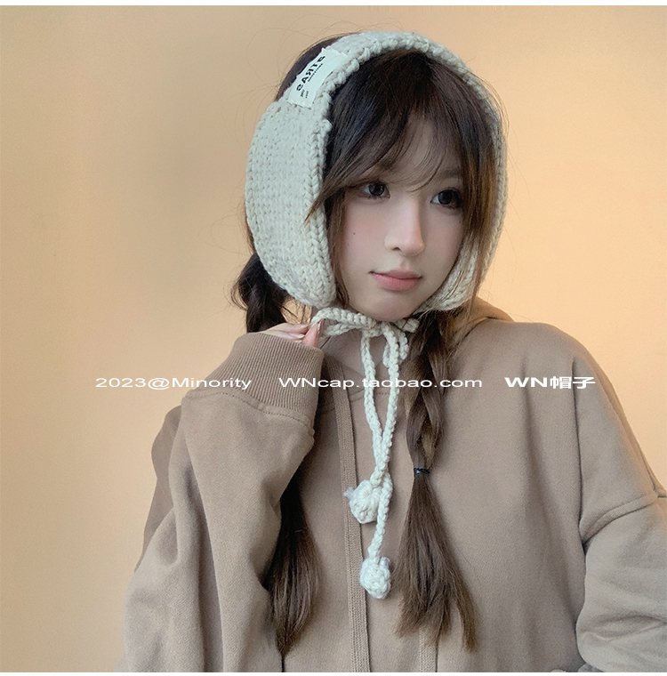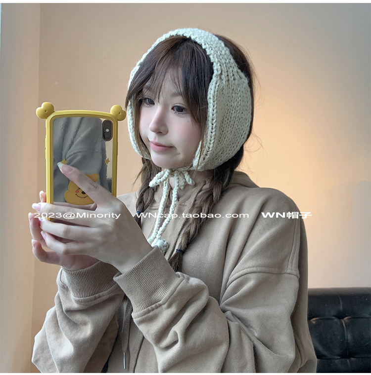 手工贴布针织毛线耳罩女秋冬米色百搭绑带耳套保暖耳包耳捂子学生