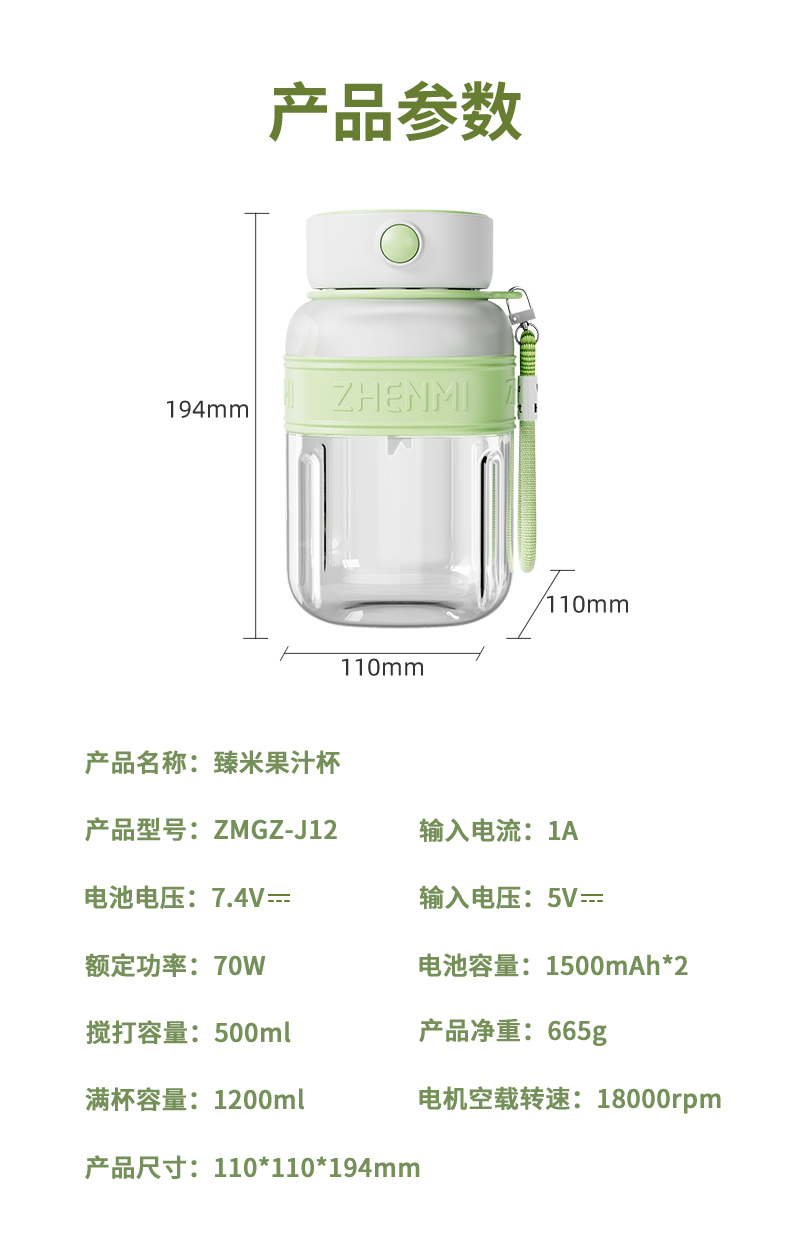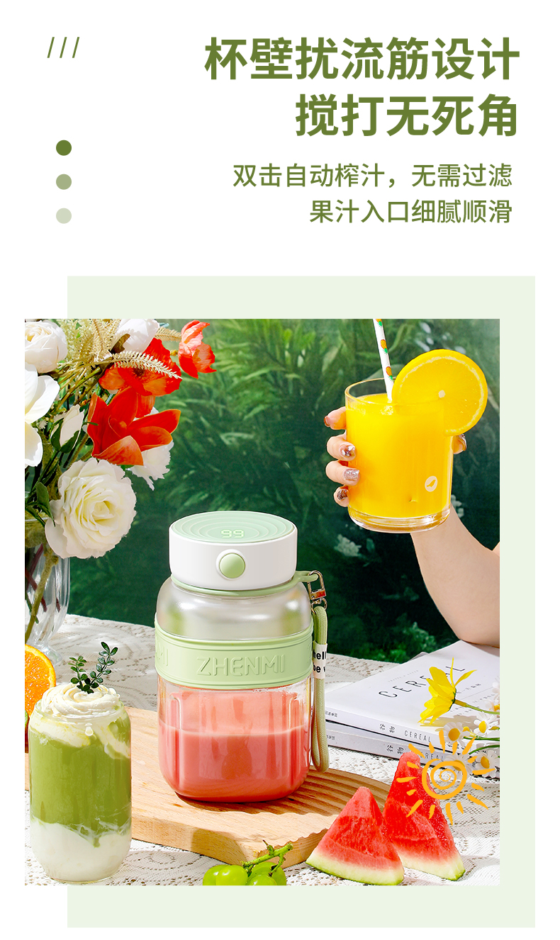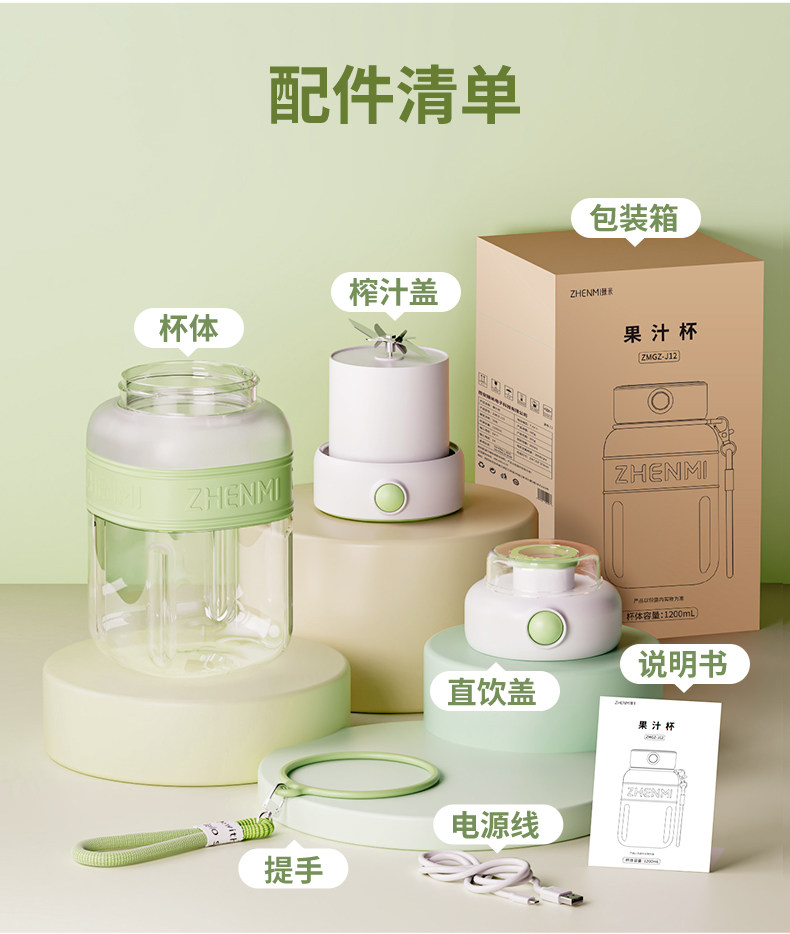 臻米榨汁机便携式榨汁桶小型家用多功能电动炸果汁机榨汁杯吨吨桶
