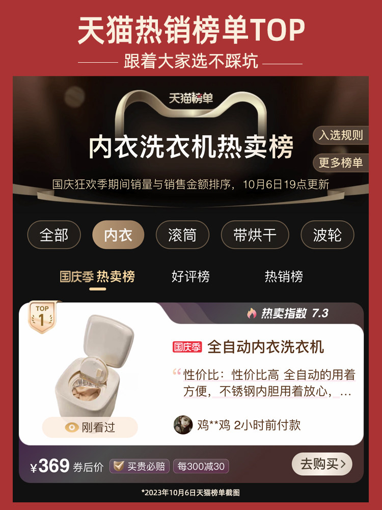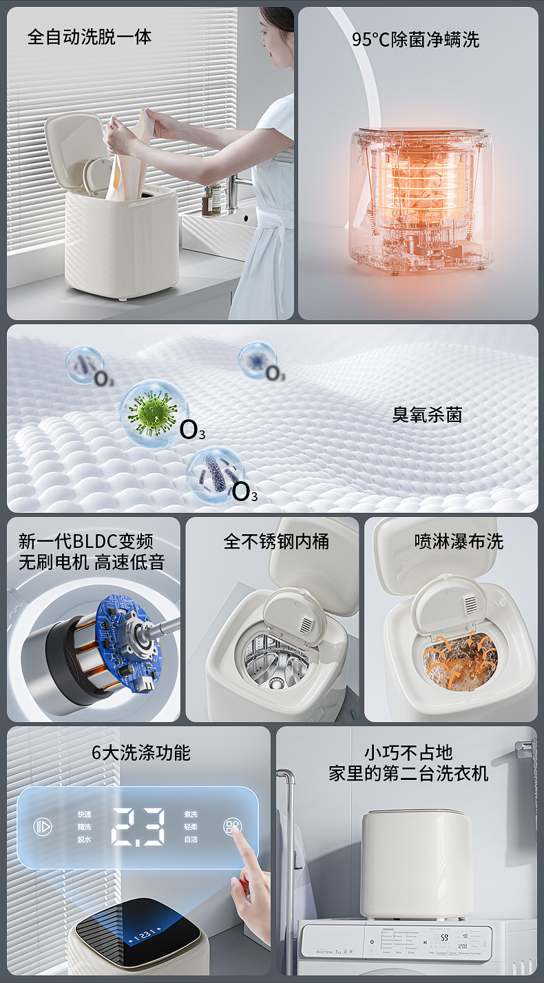贝贝康内衣洗衣机小型全自动迷你内裤洗衣机高温煮洗脱一体全自动