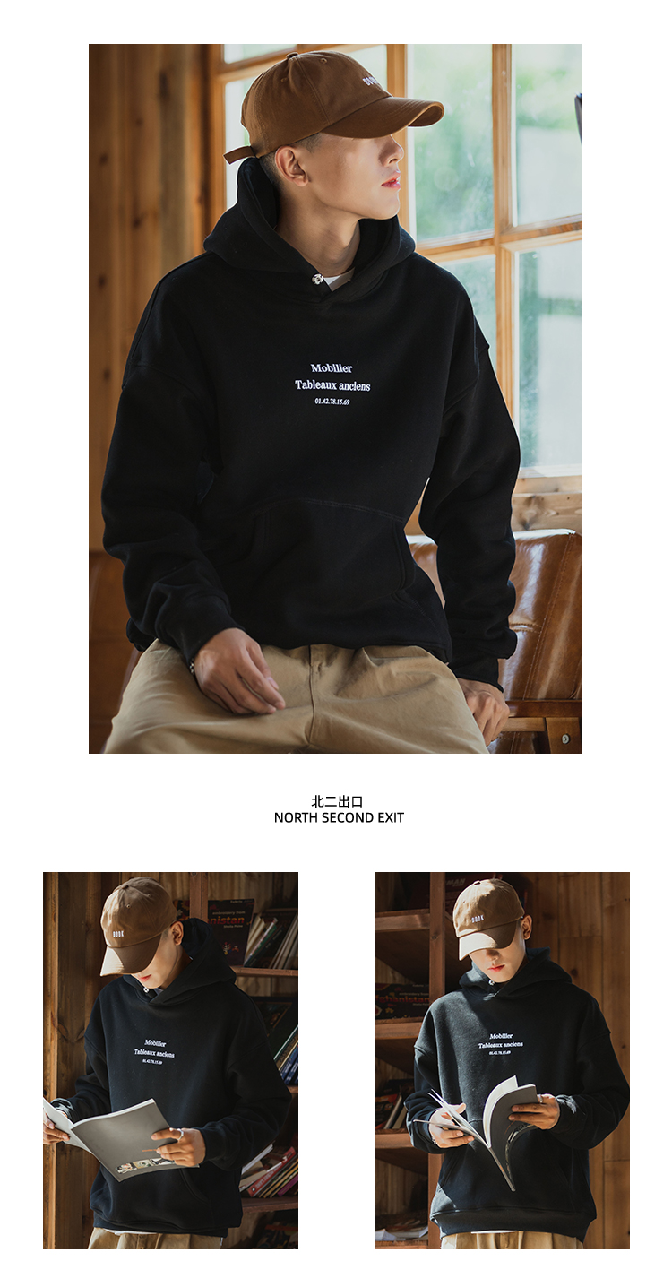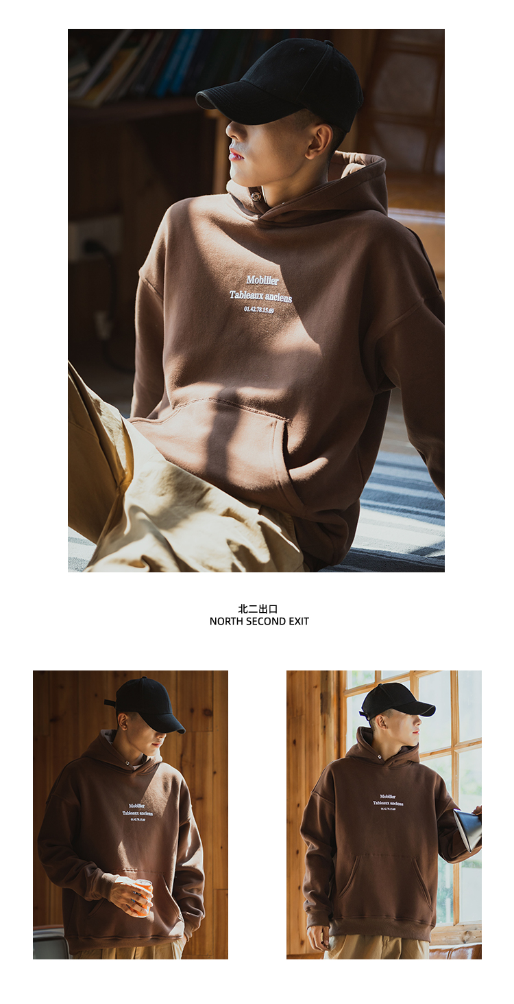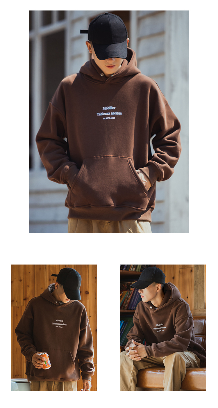 仓石一树联名潮牌美式秋冬款连帽卫衣男加绒圆领纯色外套宽松上衣