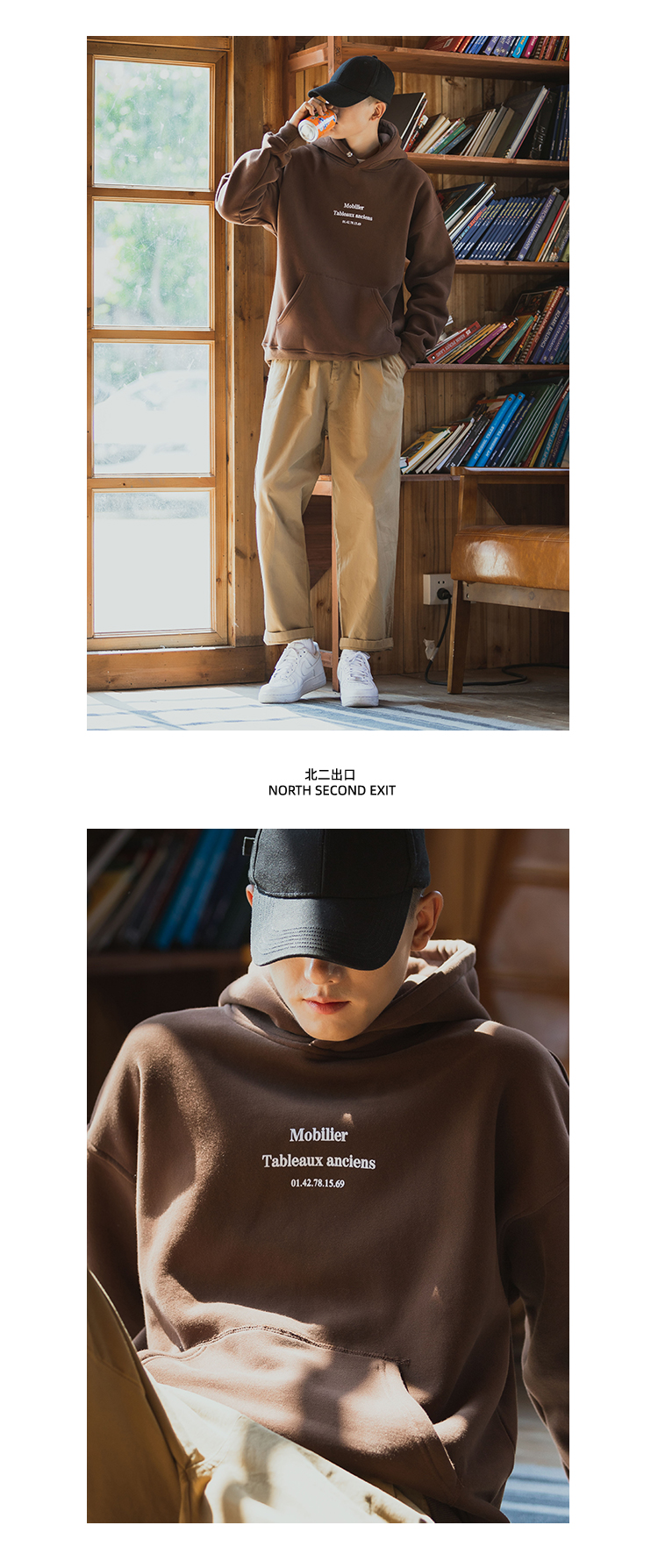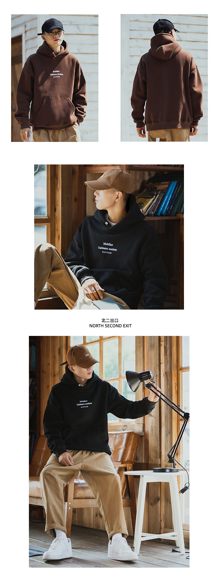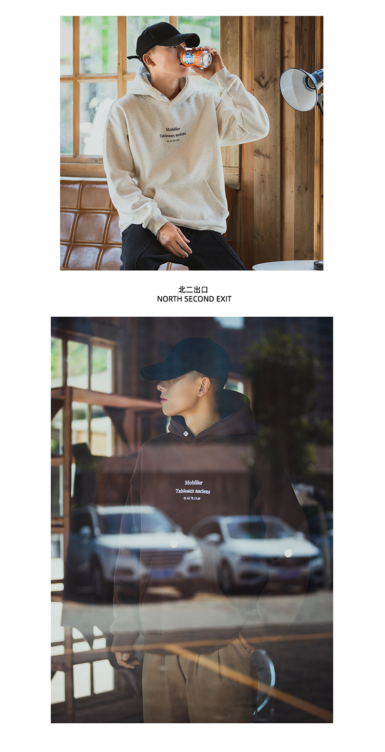 仓石一树联名潮牌美式秋冬款连帽卫衣男加绒圆领纯色外套宽松上衣