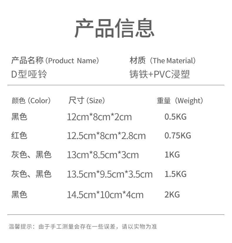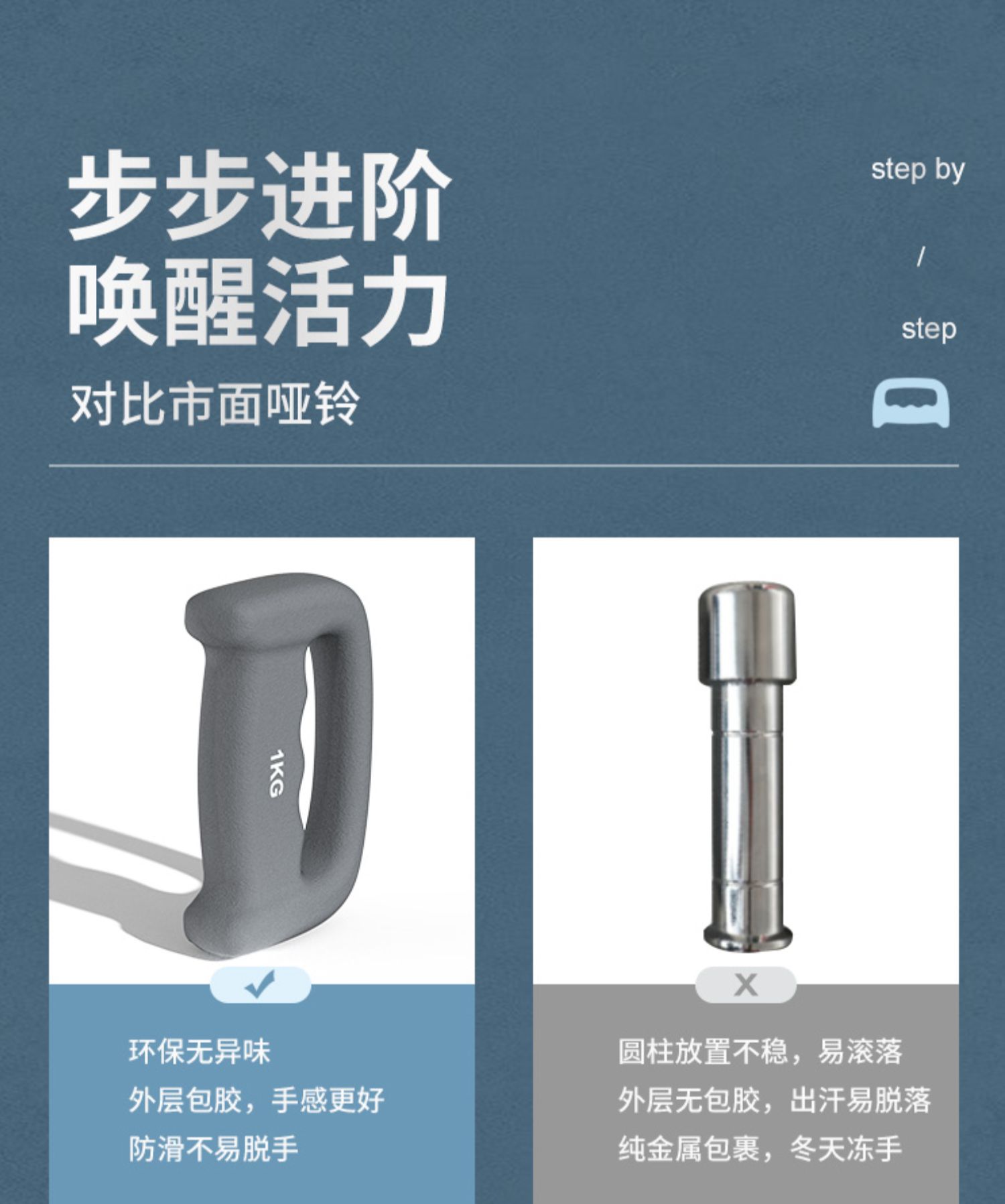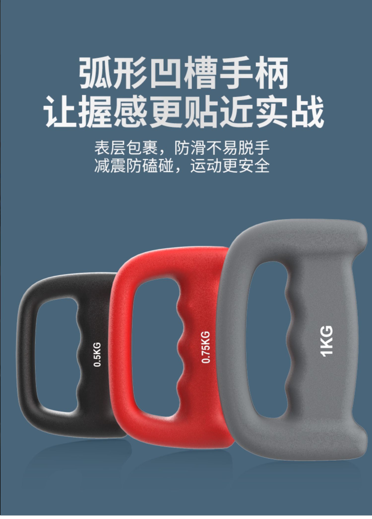 铁人体育家用拳击练习健身哑铃瘦手臂跳操拳峰落点哑铃D型一对装