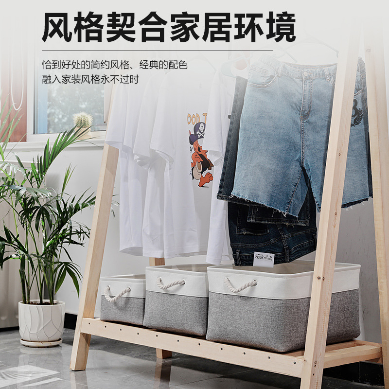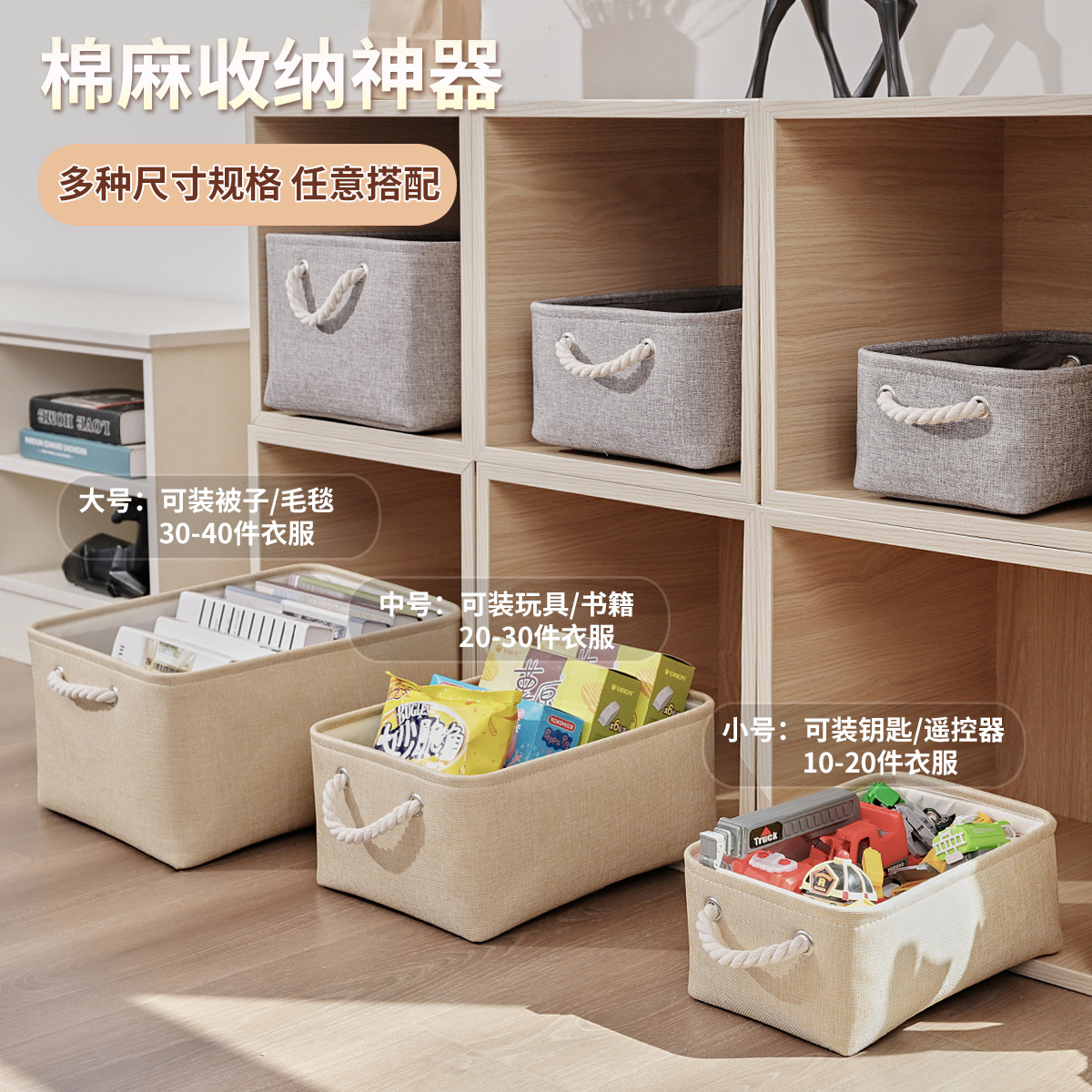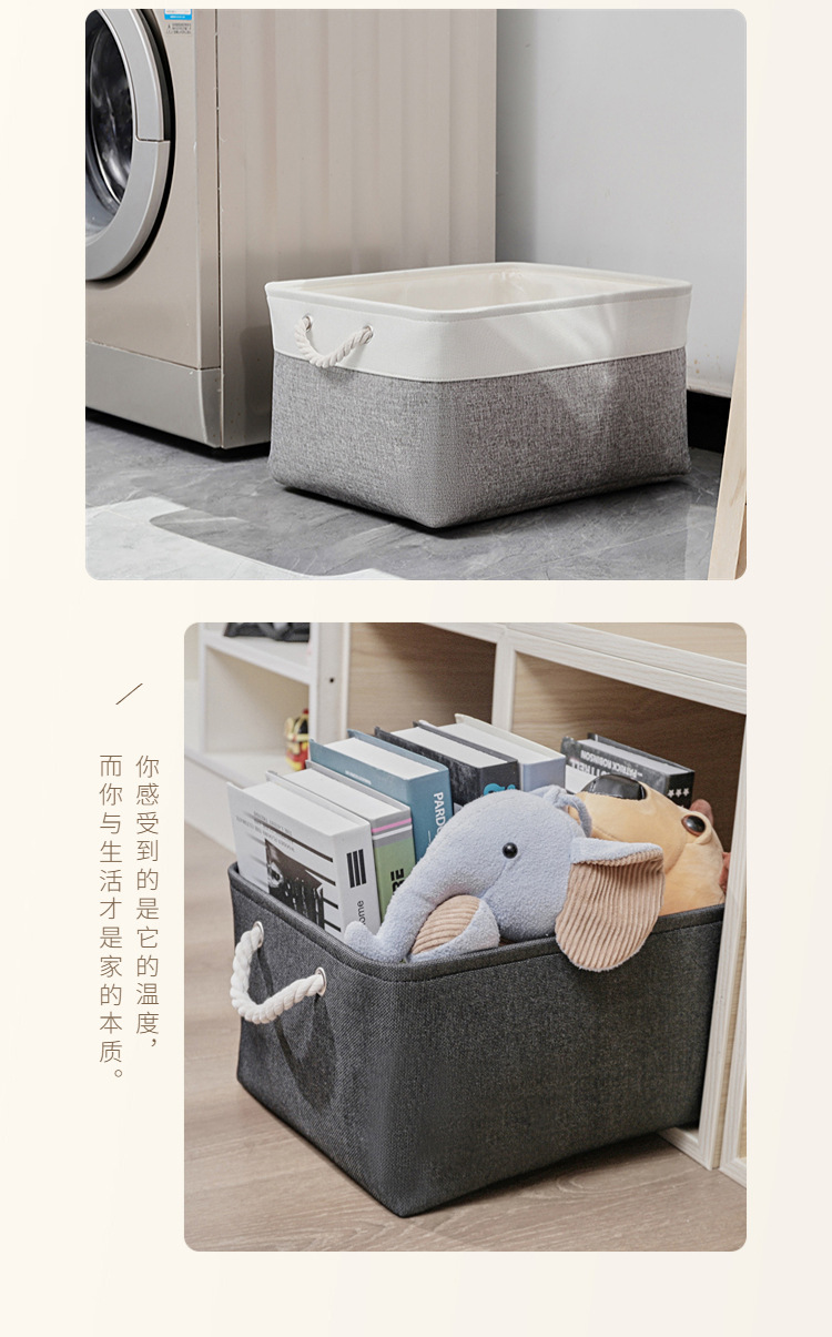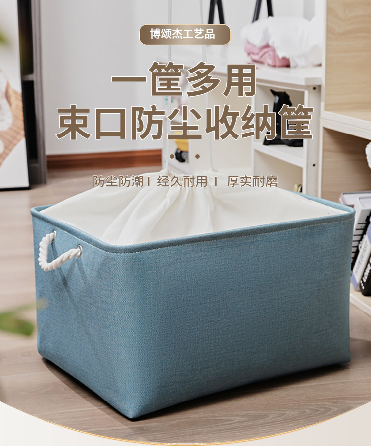 博颂杰纯色棉麻手提可折叠收纳筐被子布艺收纳盒防尘储物收纳篮