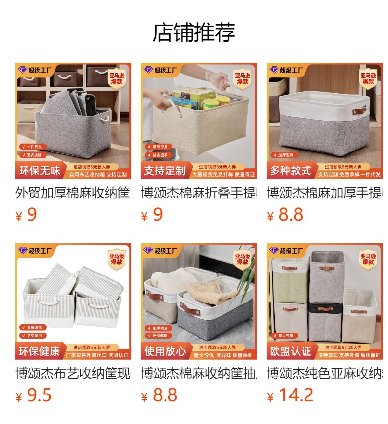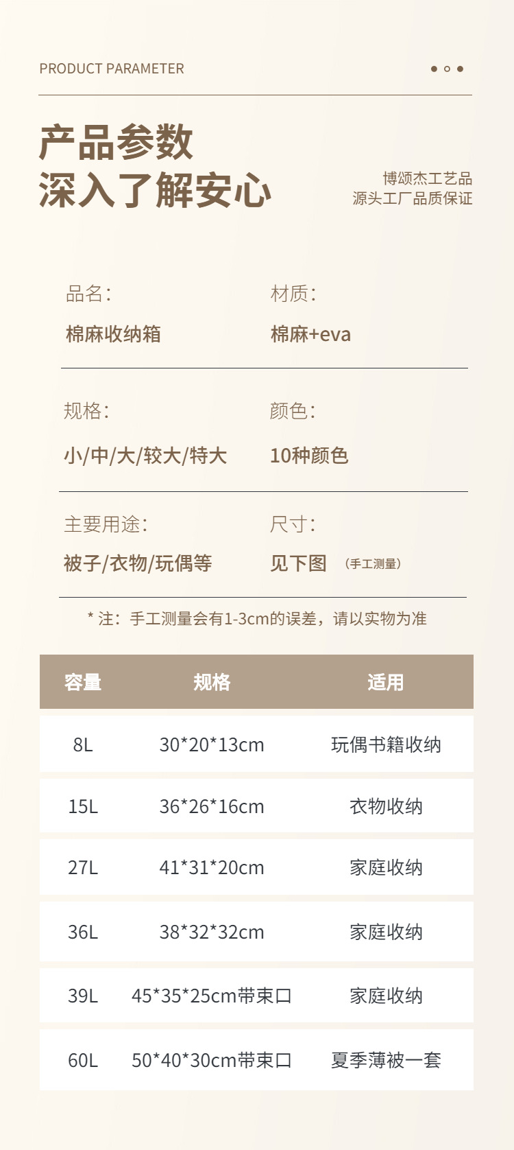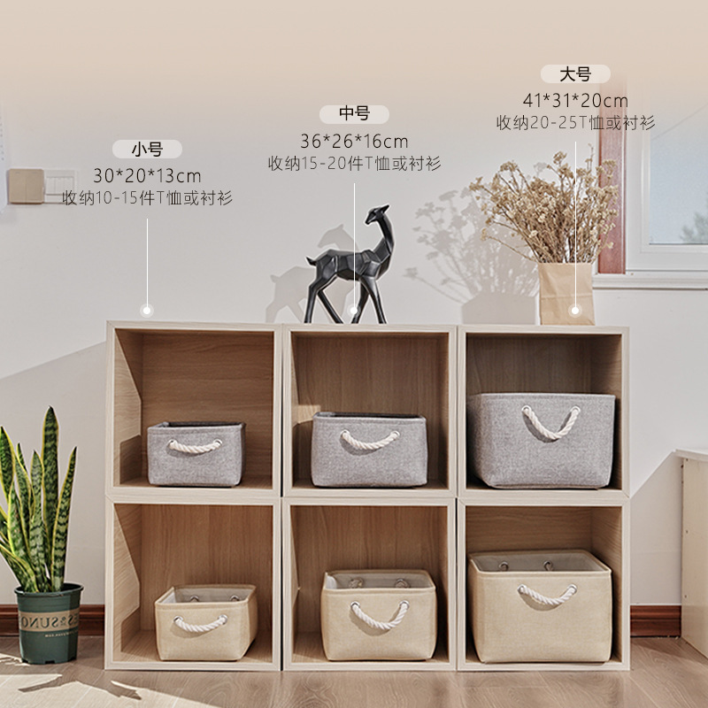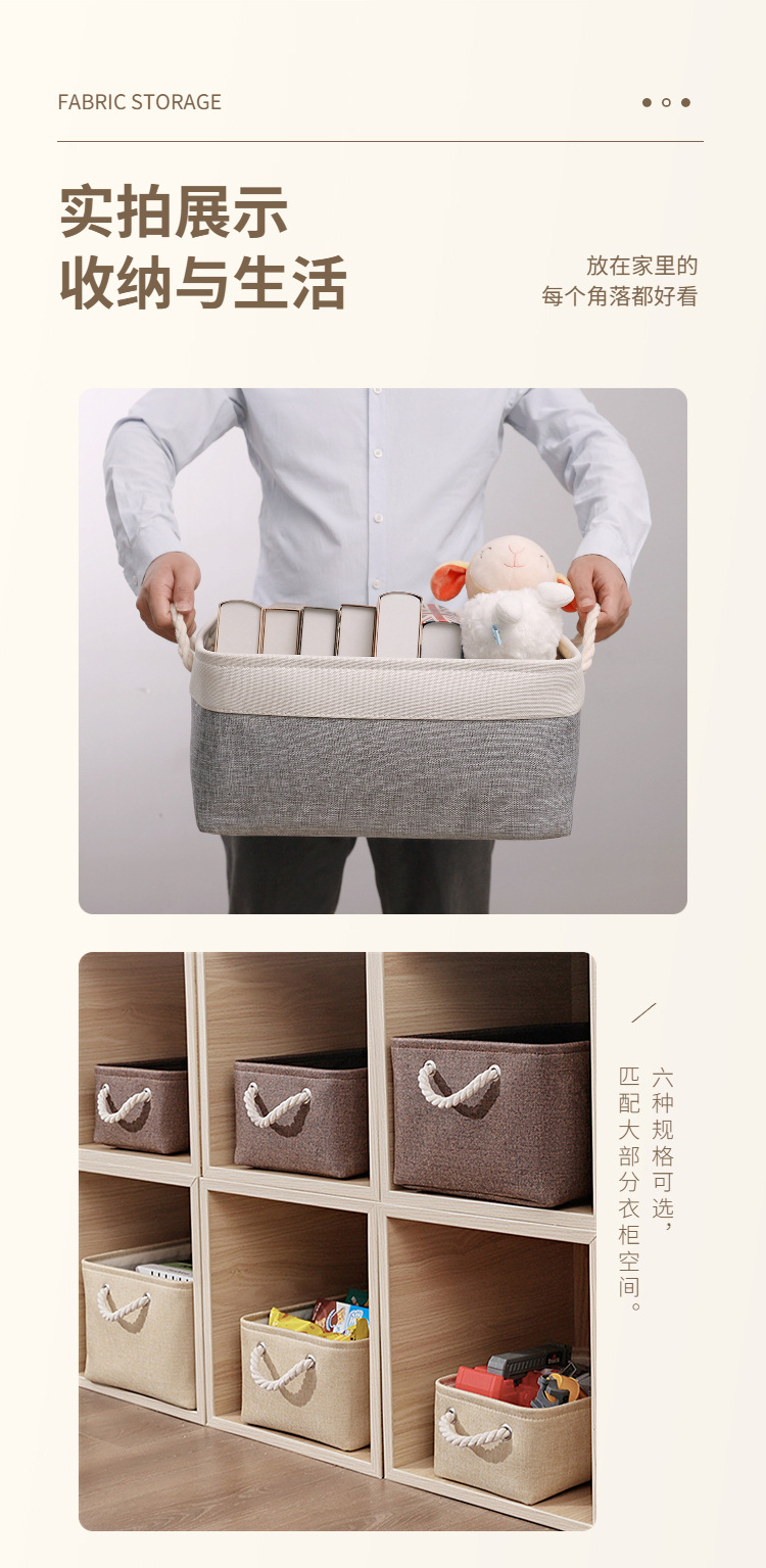 博颂杰纯色棉麻手提可折叠收纳筐被子布艺收纳盒防尘储物收纳篮