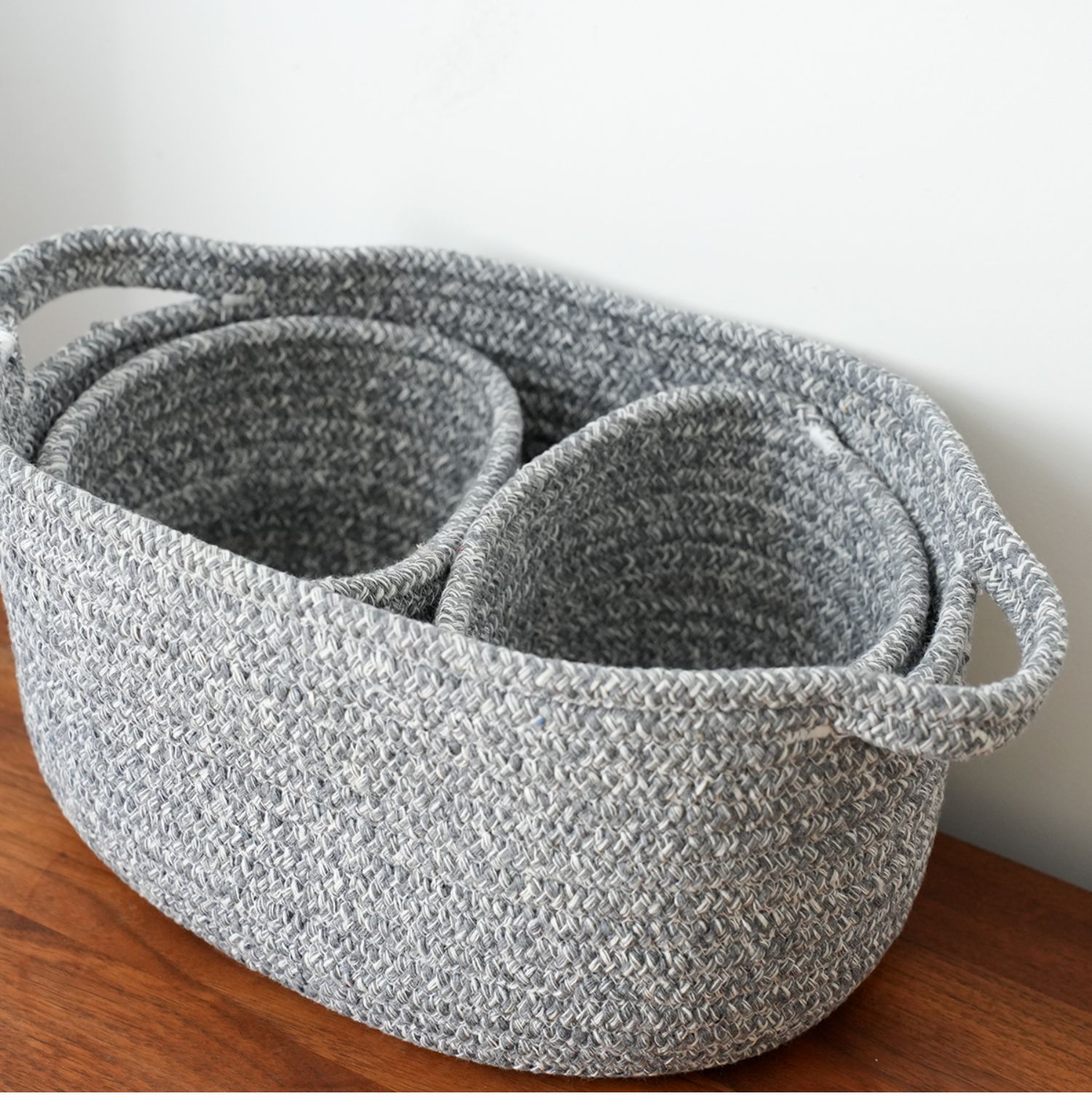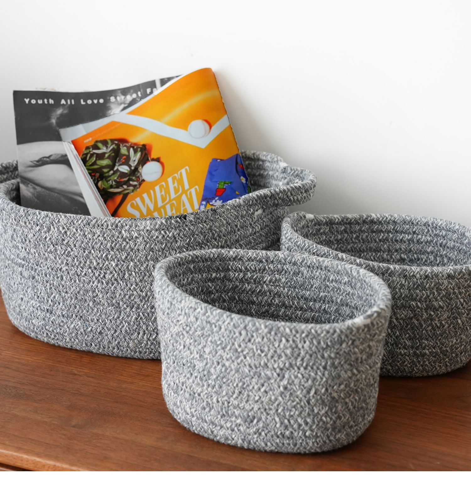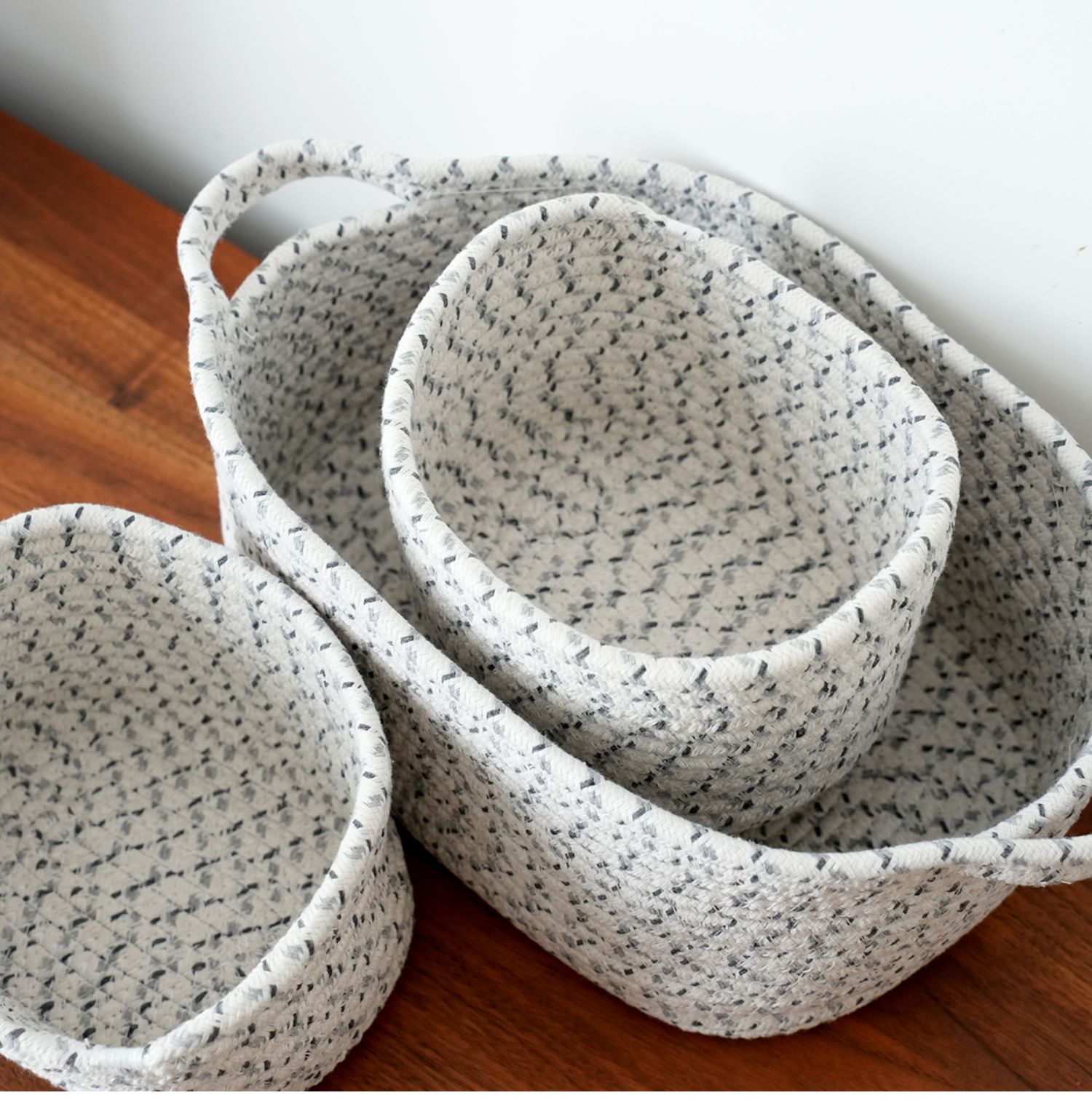 三件套 棉线编织收纳篮 桌面零食整理盒 置物筐杂物篓 家用品