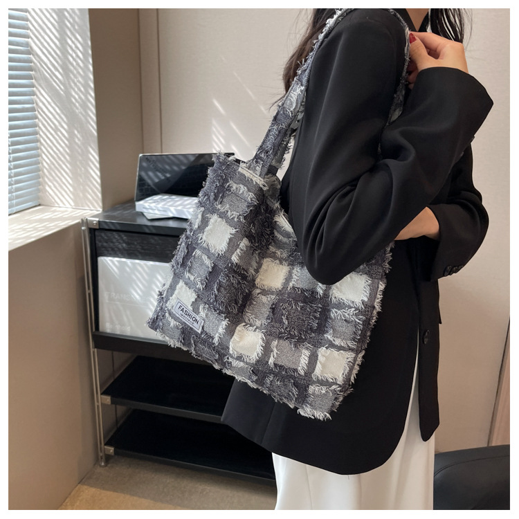 韩版ins包包女大容量学生上课帆布单肩托特包2023时尚通勤手提袋