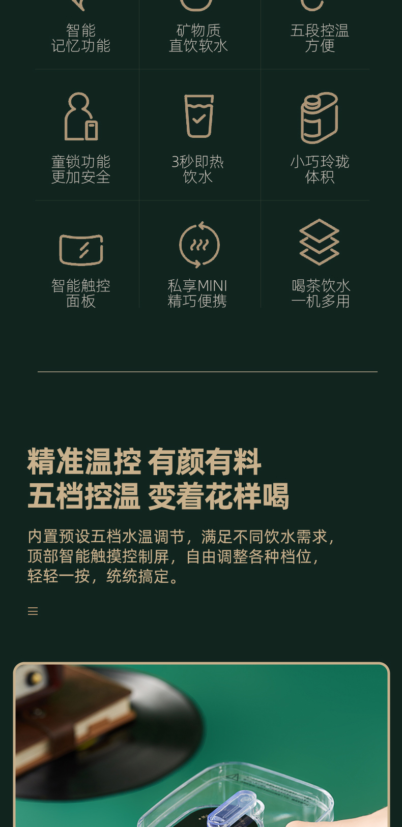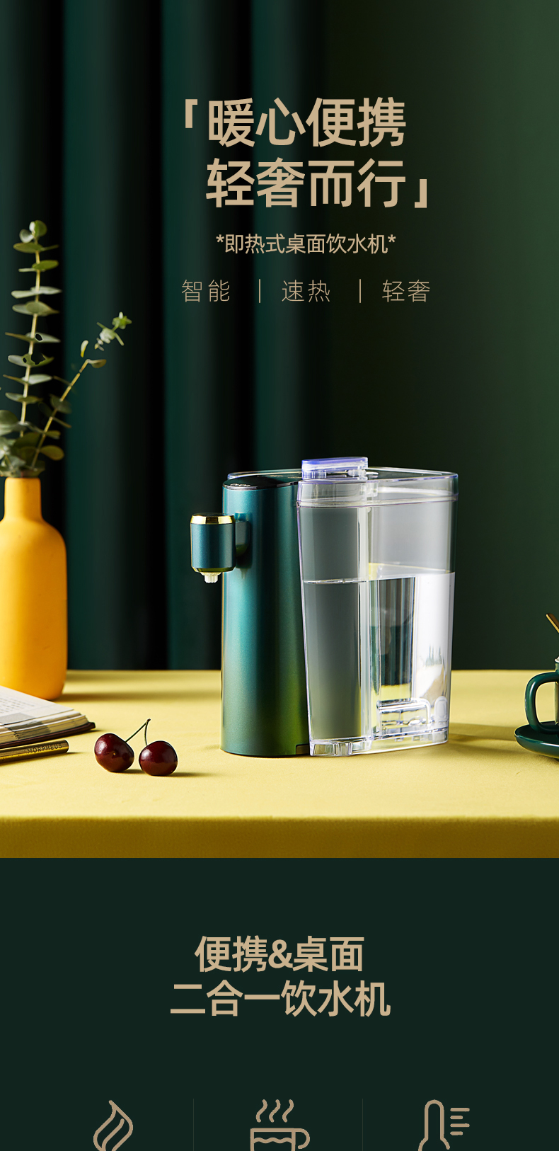 ouon便携即热式饮水机家用小型桌面台式直饮机旅行迷你口袋热水器