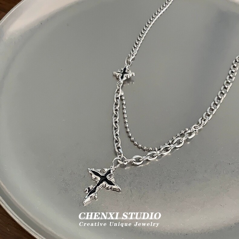 暗黑十字架项链男女酷潮牌百搭小众个性嘻哈冷淡风时尚配饰毛衣链
