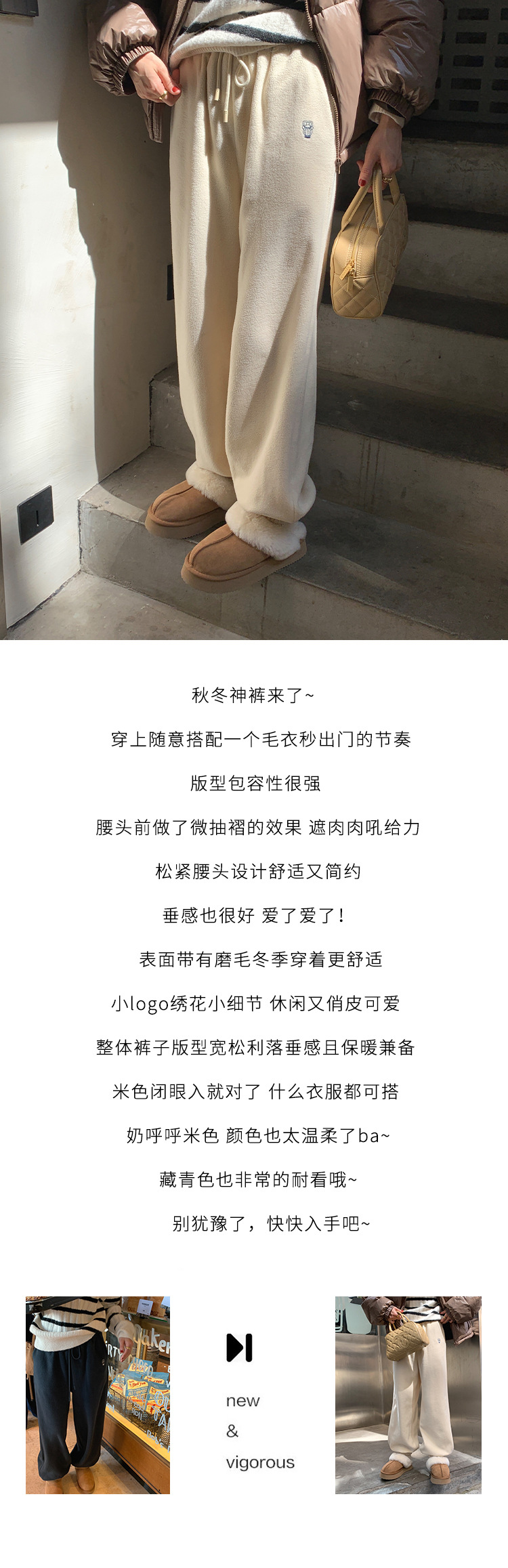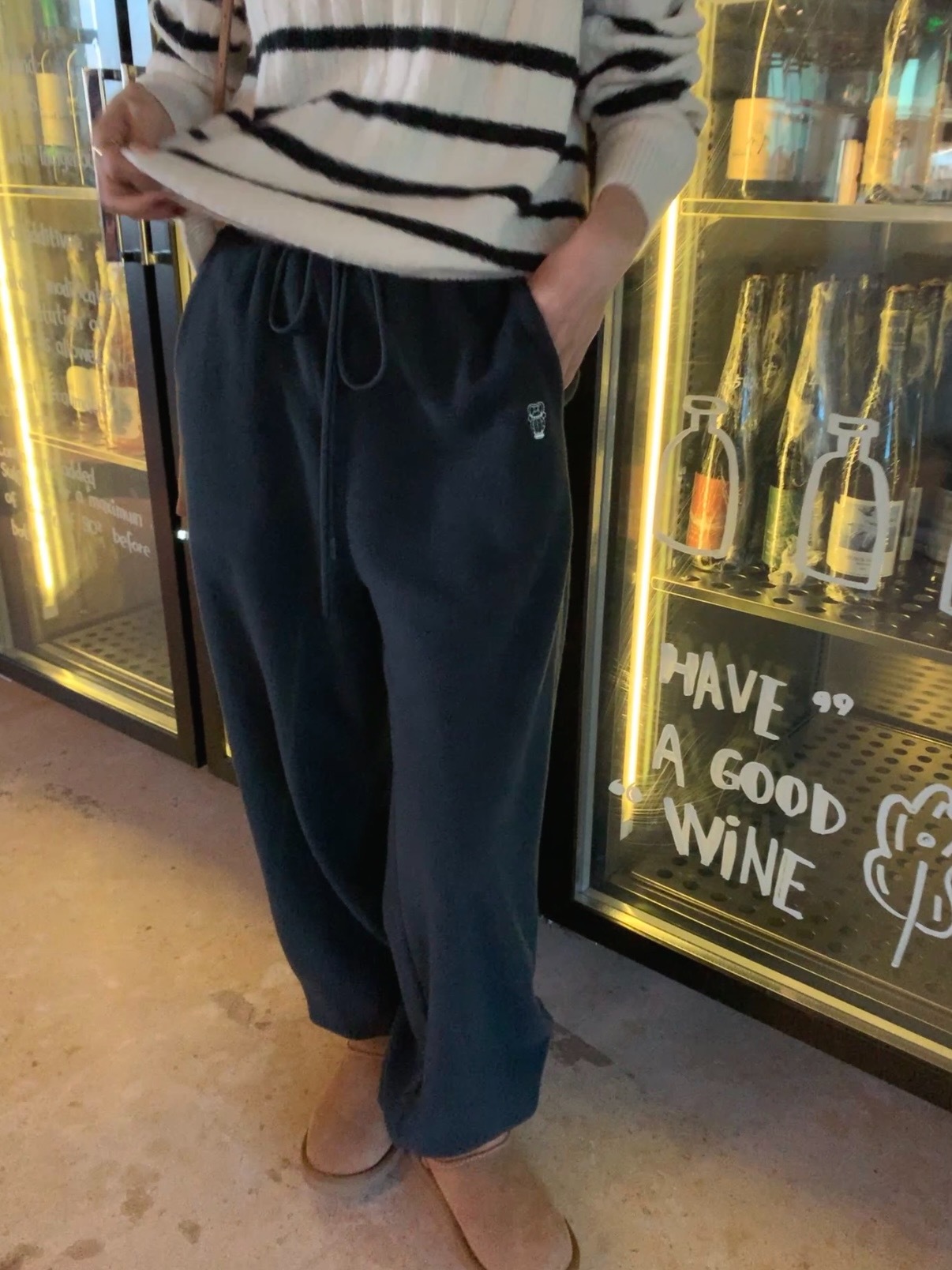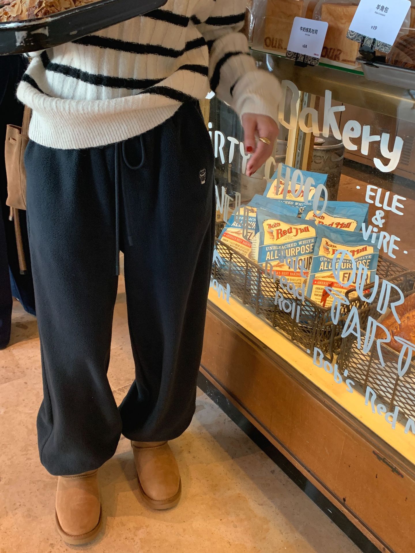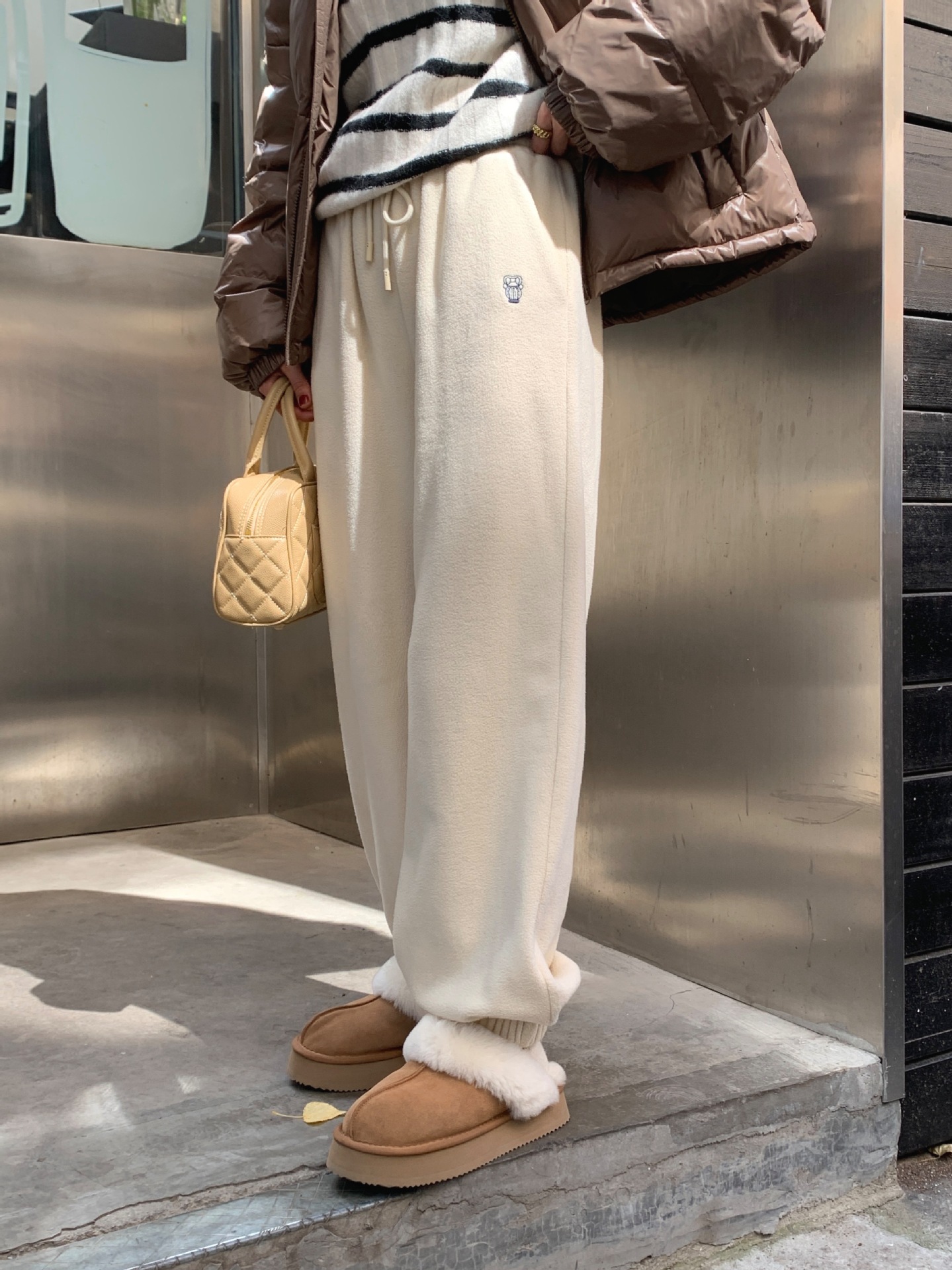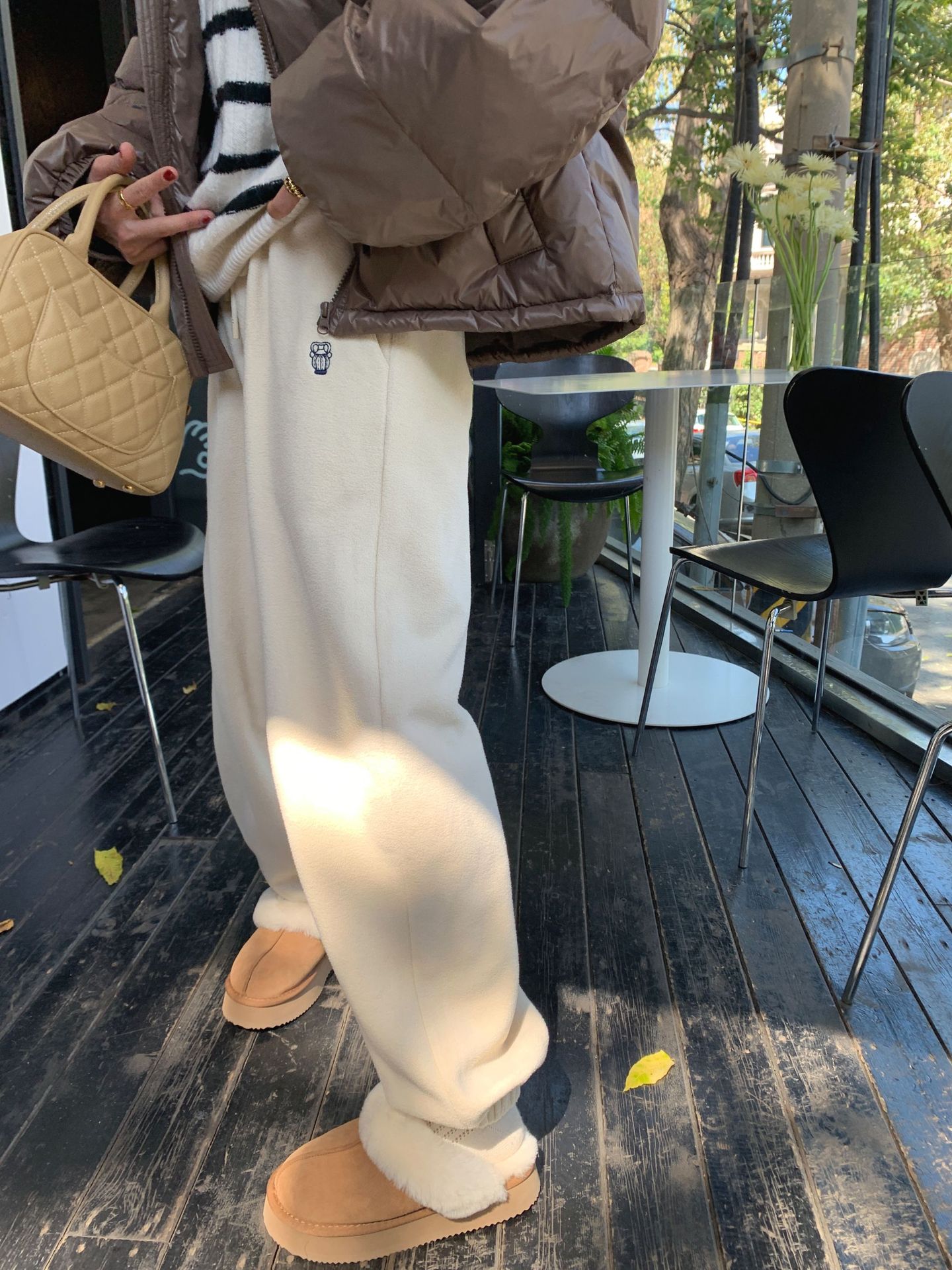现2023冬季新款韩国东大门高腰显瘦宽松阔腿直筒松紧腰休闲裤卫裤