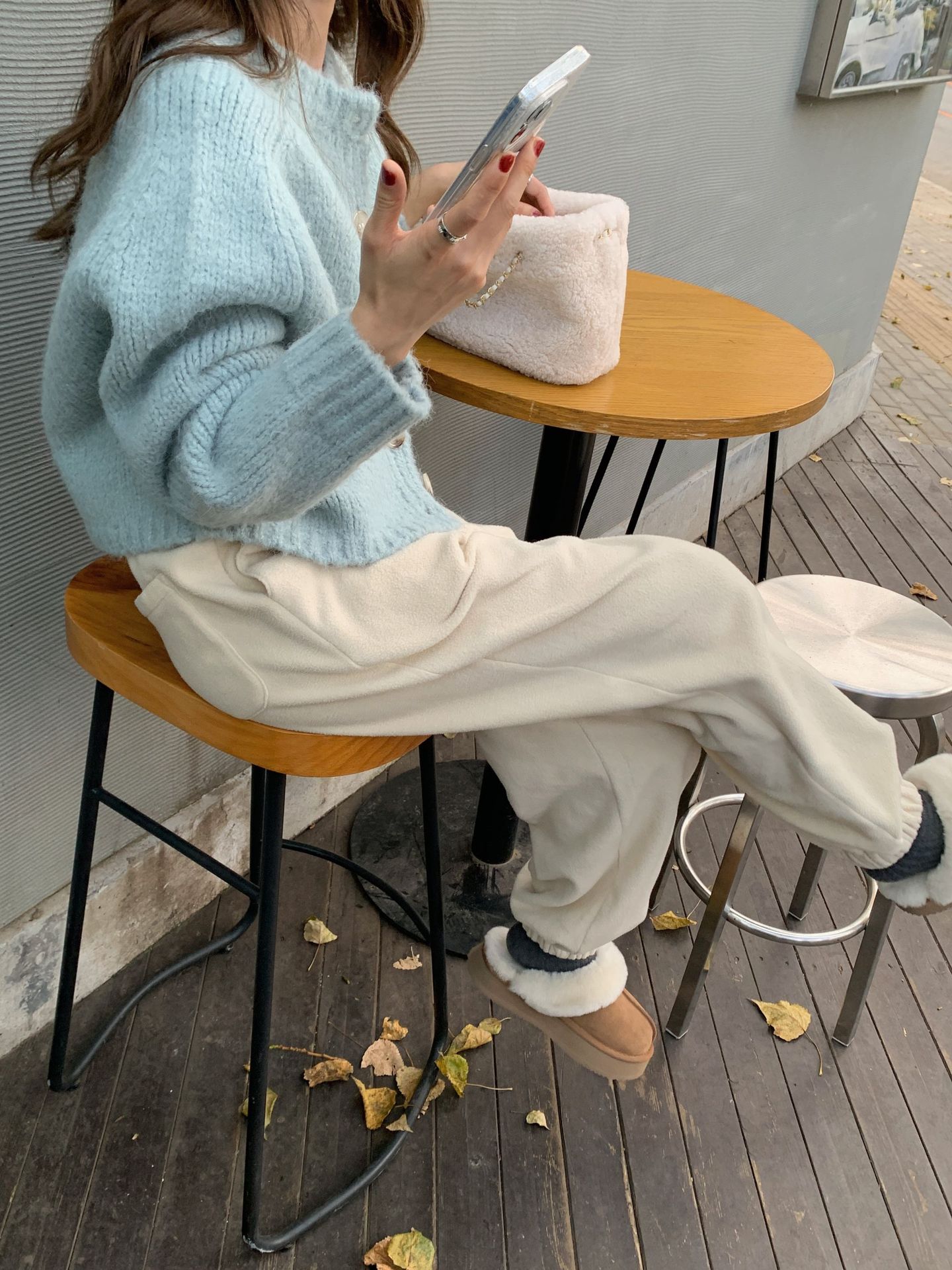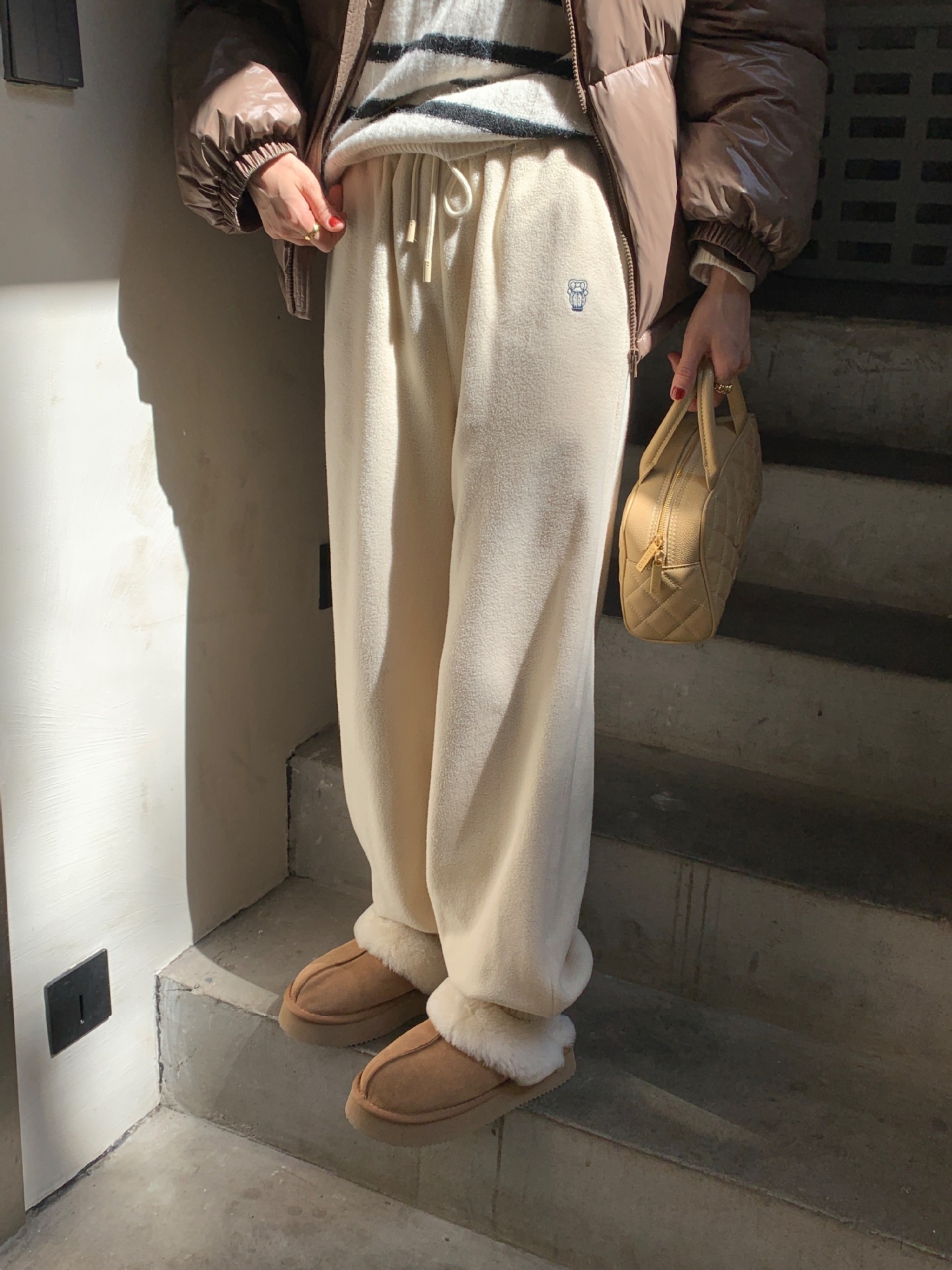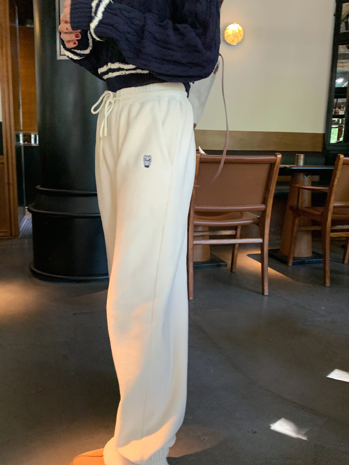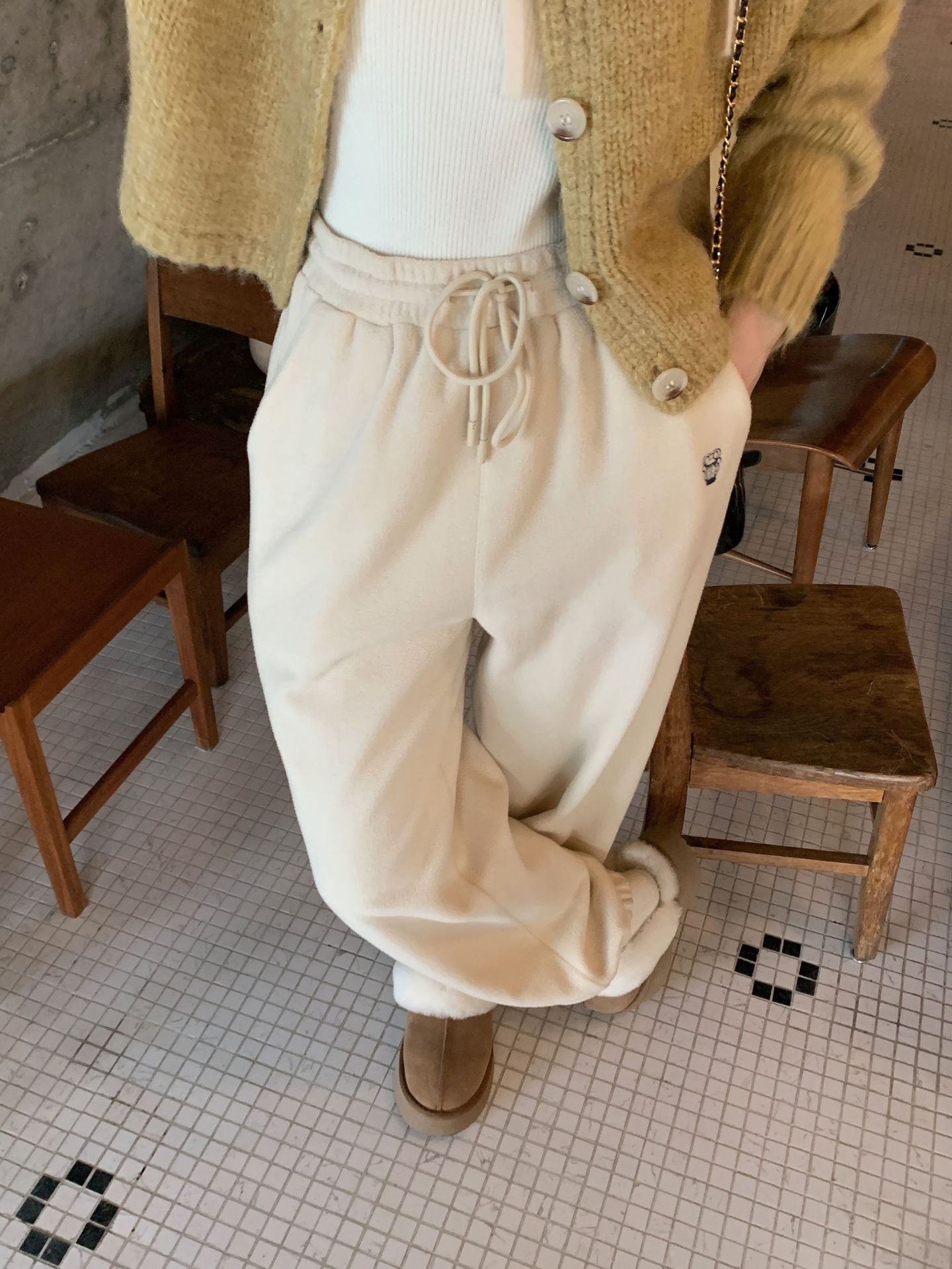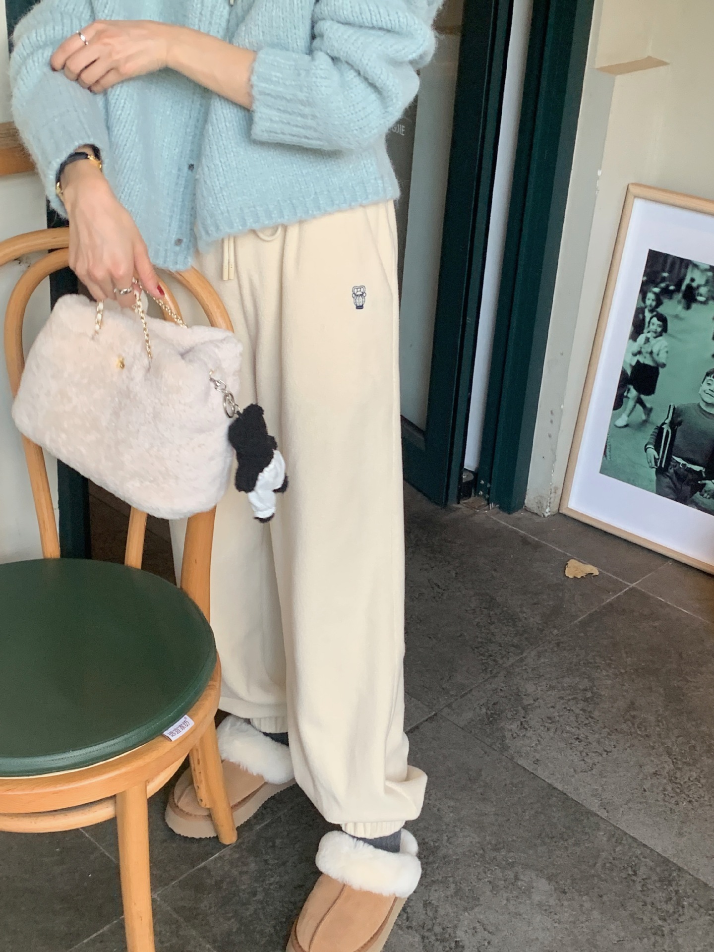现2023冬季新款韩国东大门高腰显瘦宽松阔腿直筒松紧腰休闲裤卫裤