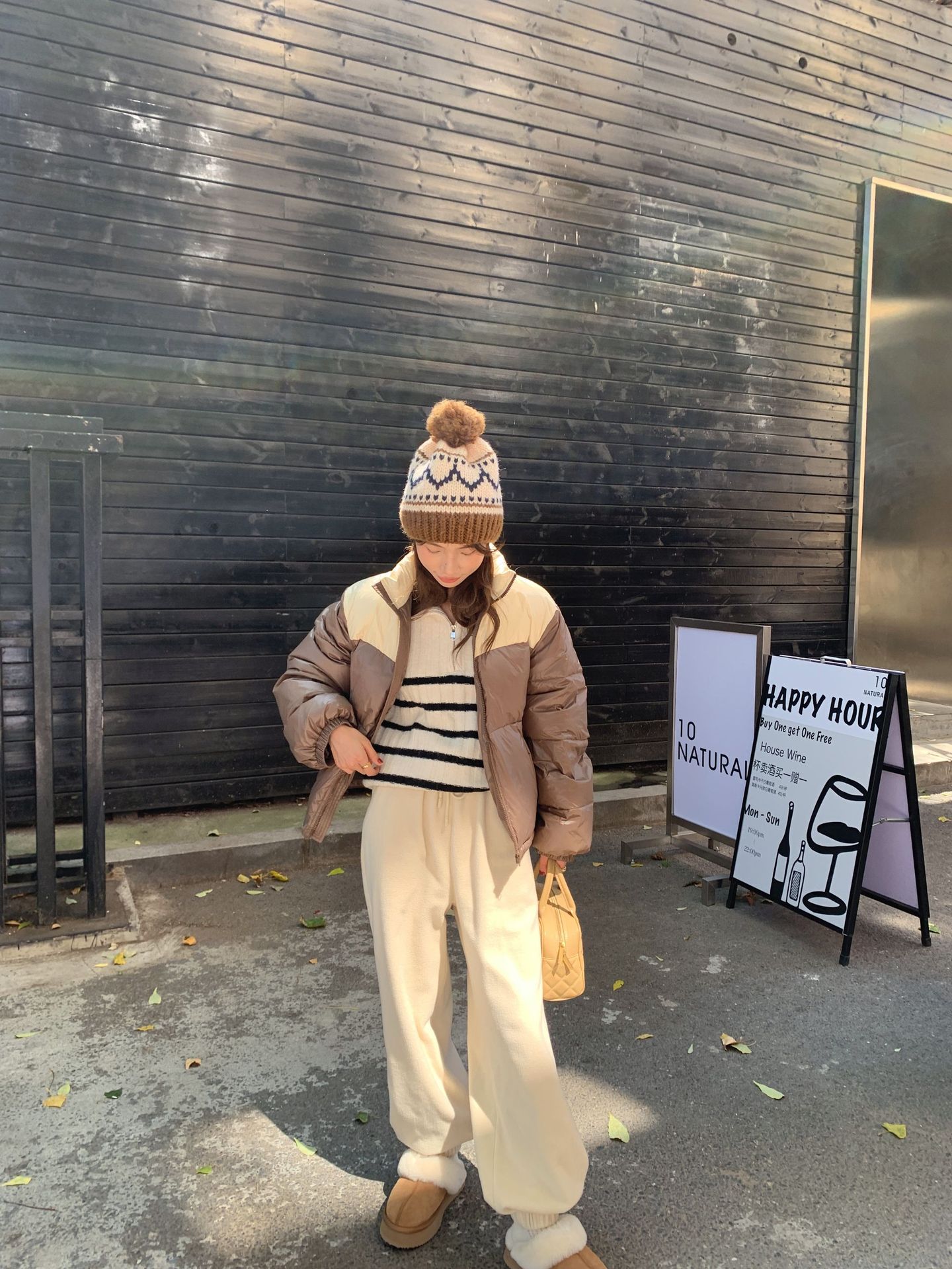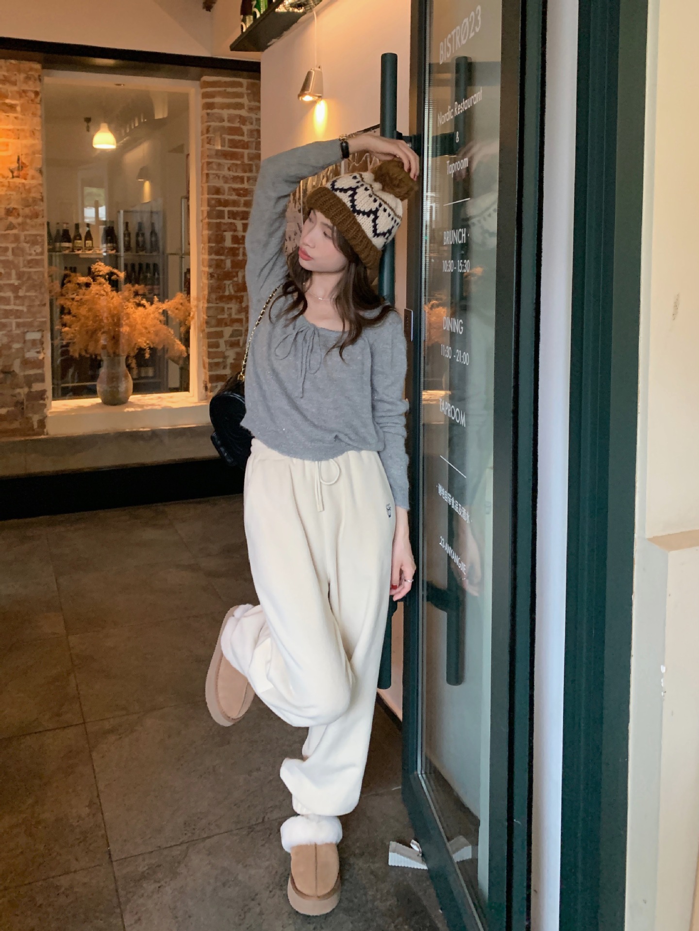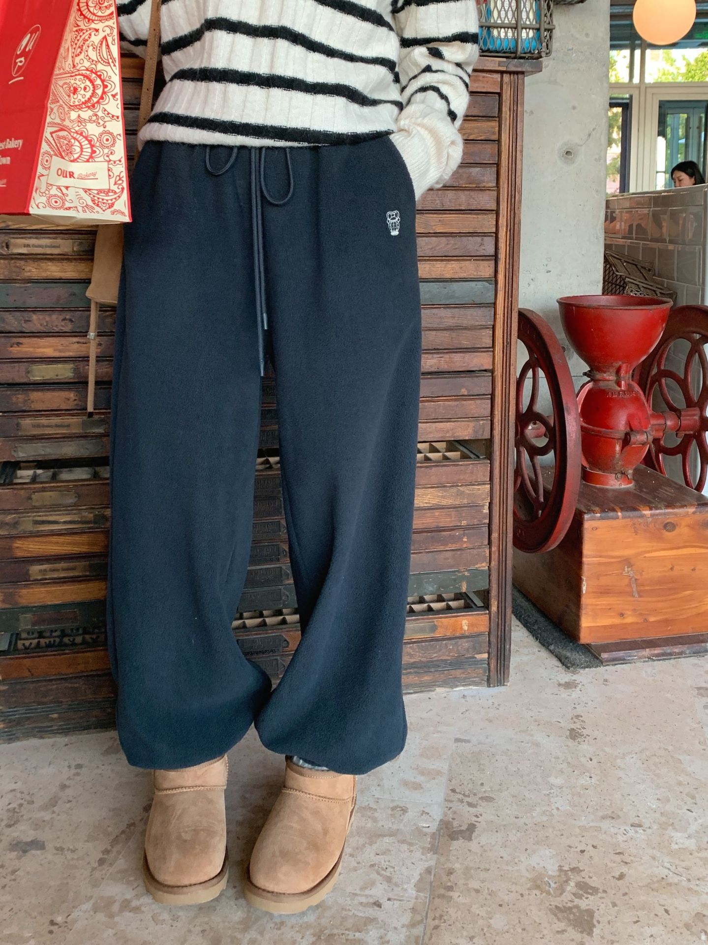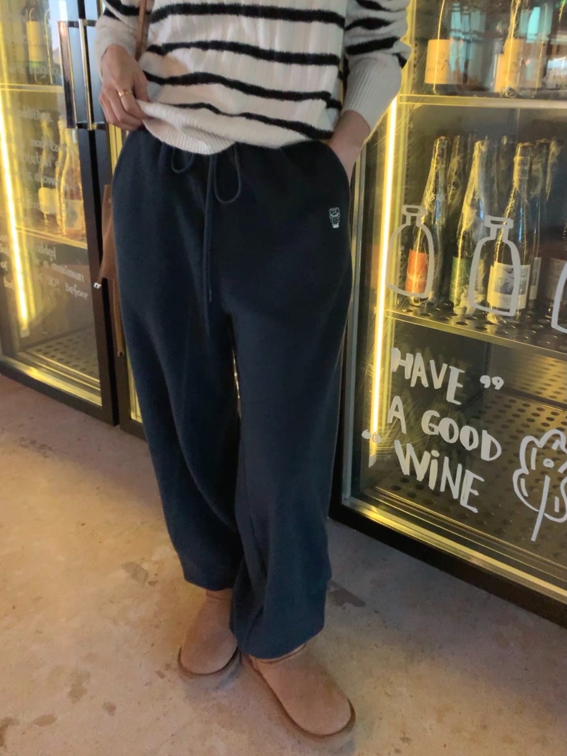 现2023冬季新款韩国东大门高腰显瘦宽松阔腿直筒松紧腰休闲裤卫裤
