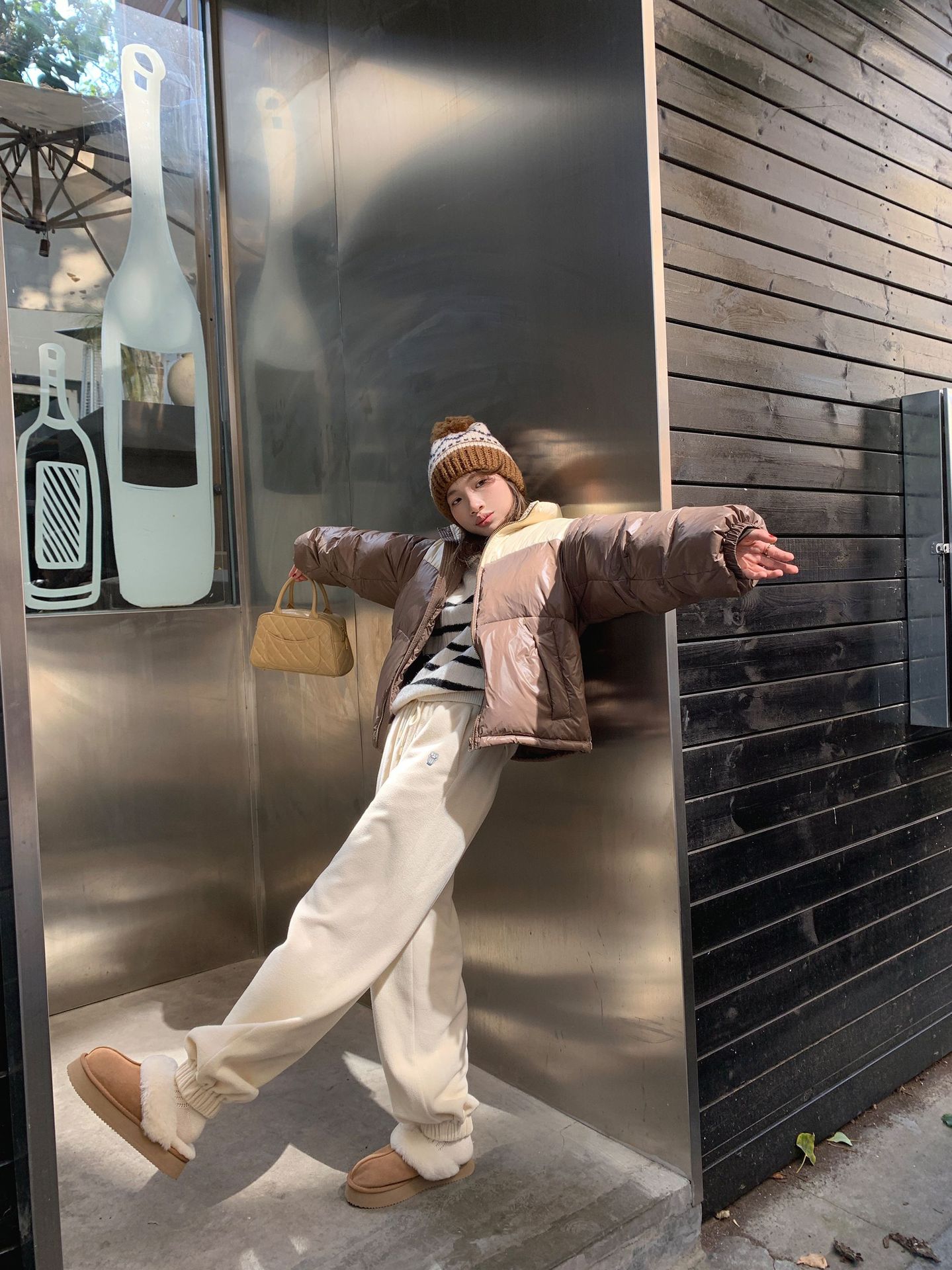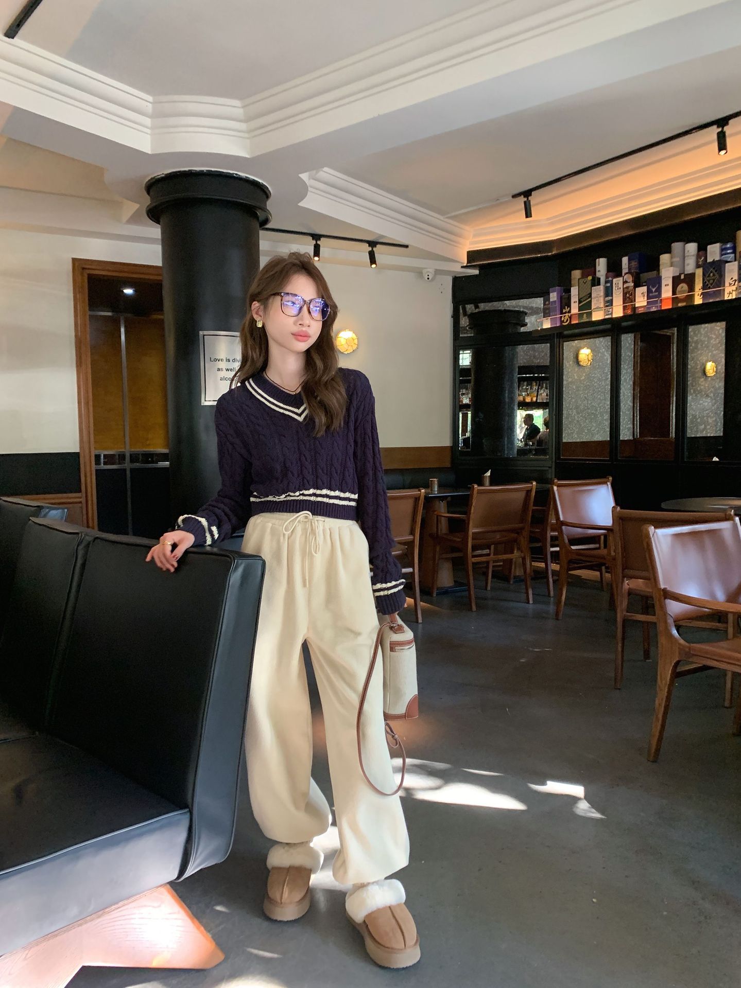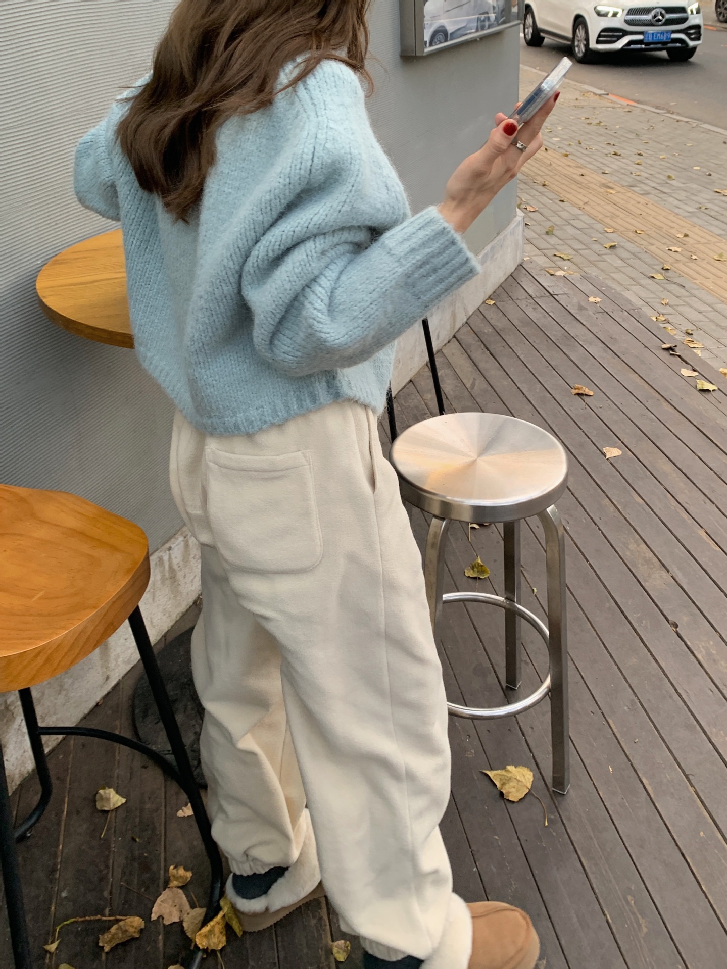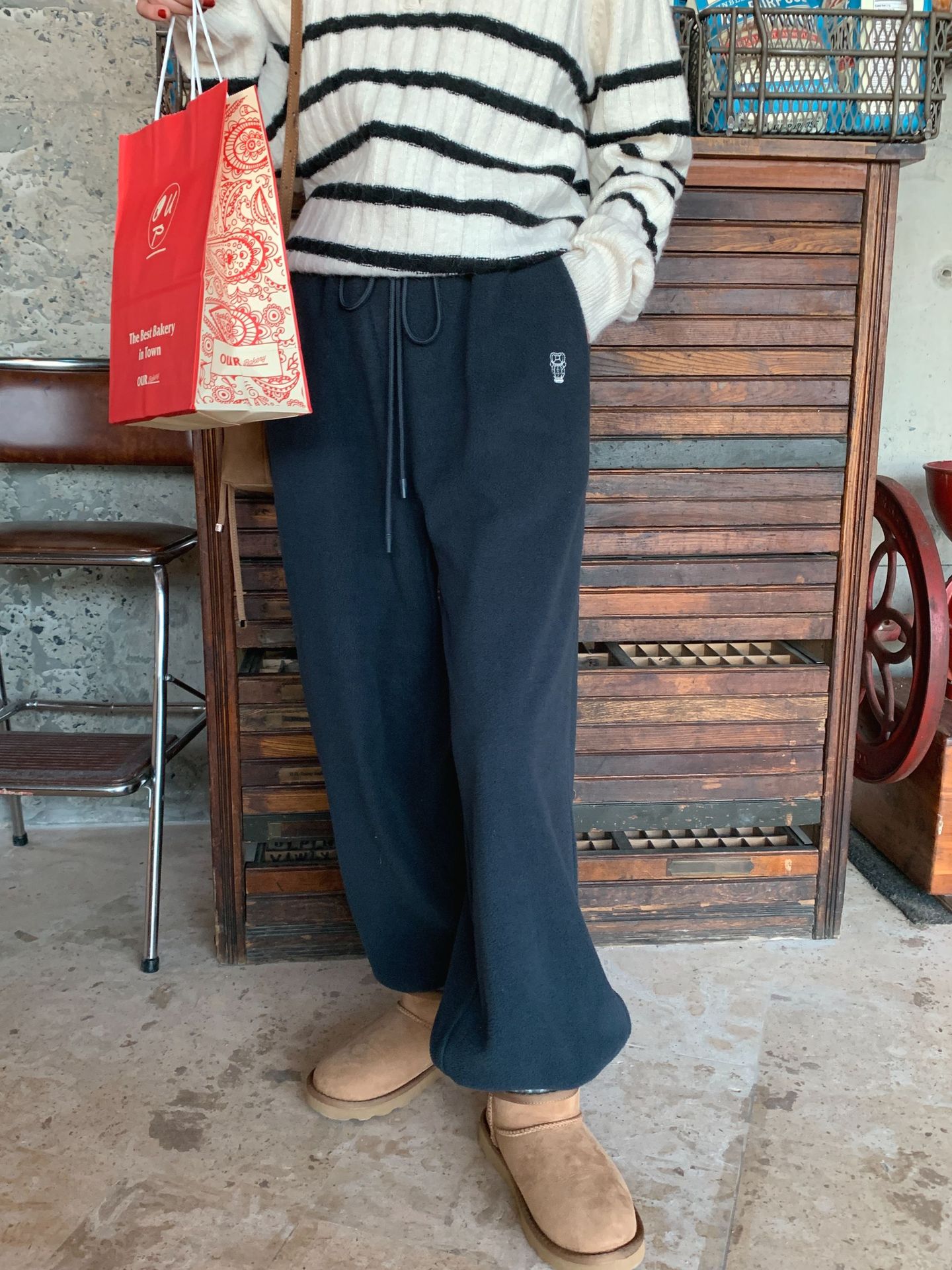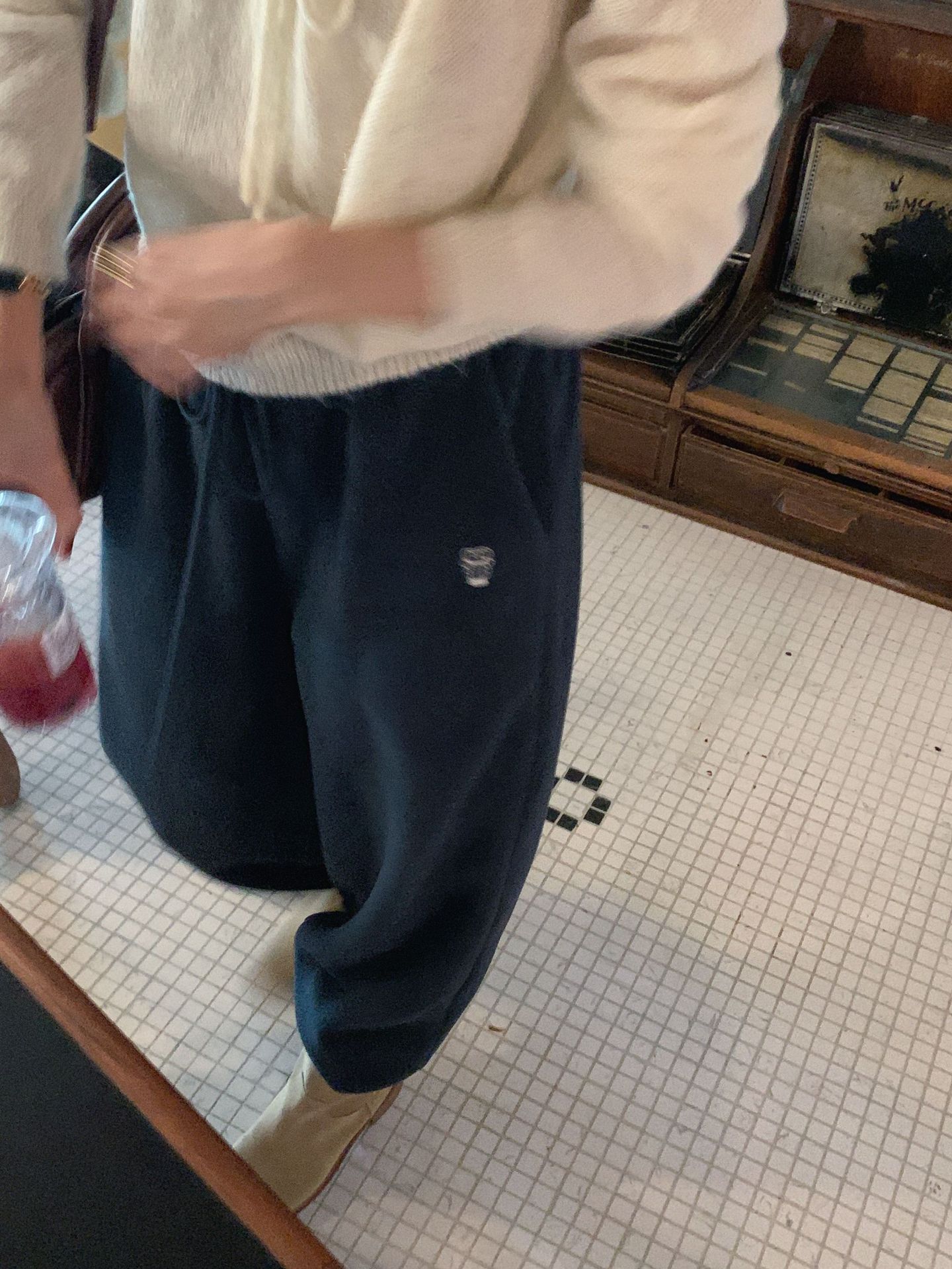 现2023冬季新款韩国东大门高腰显瘦宽松阔腿直筒松紧腰休闲裤卫裤