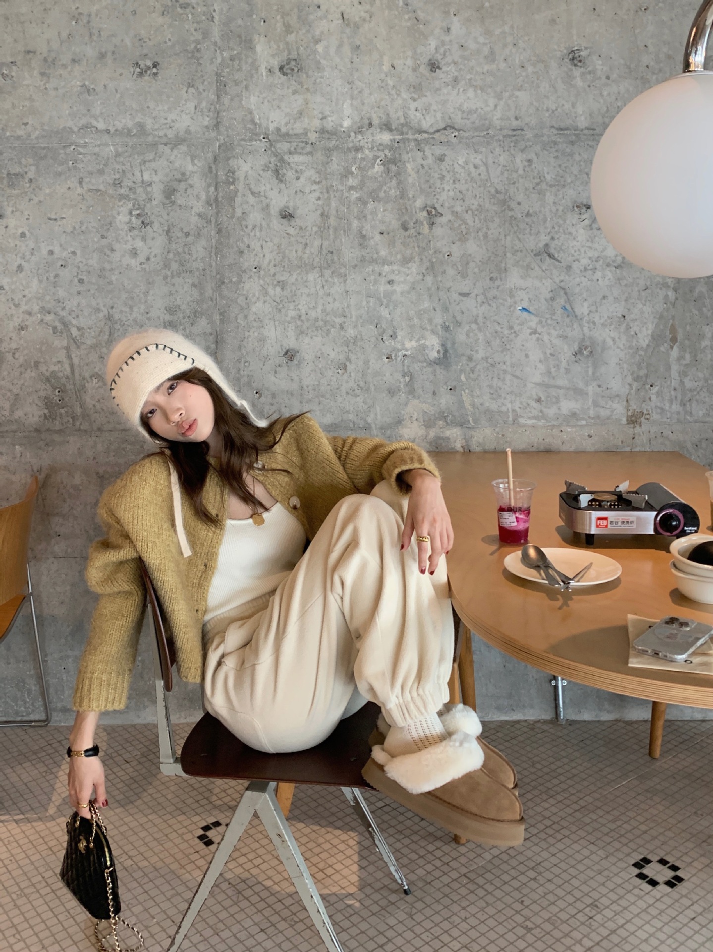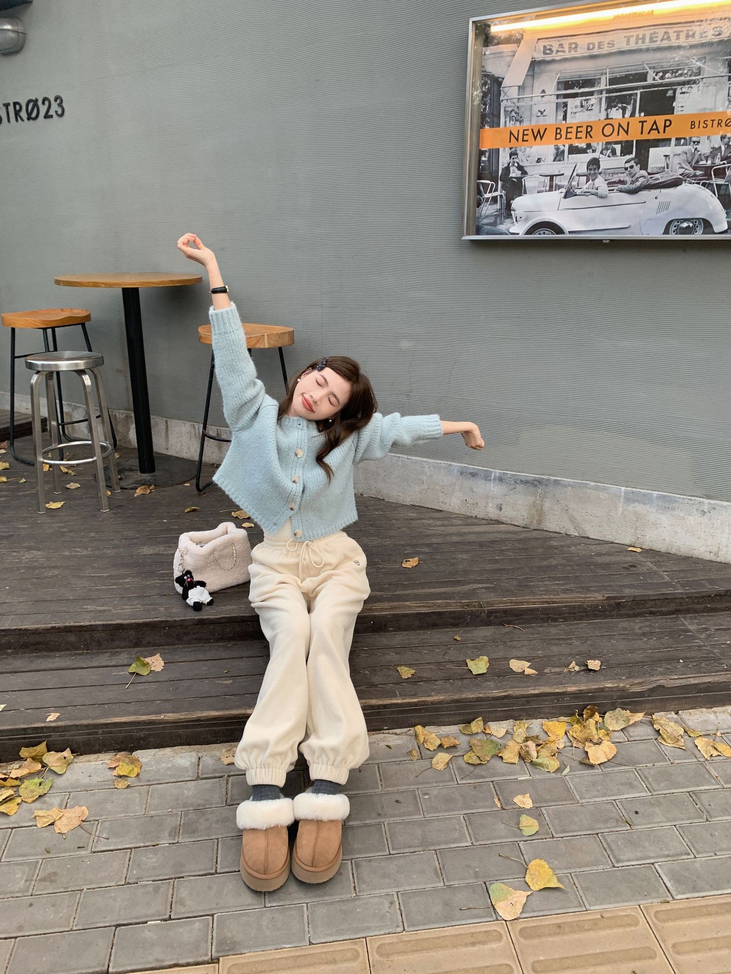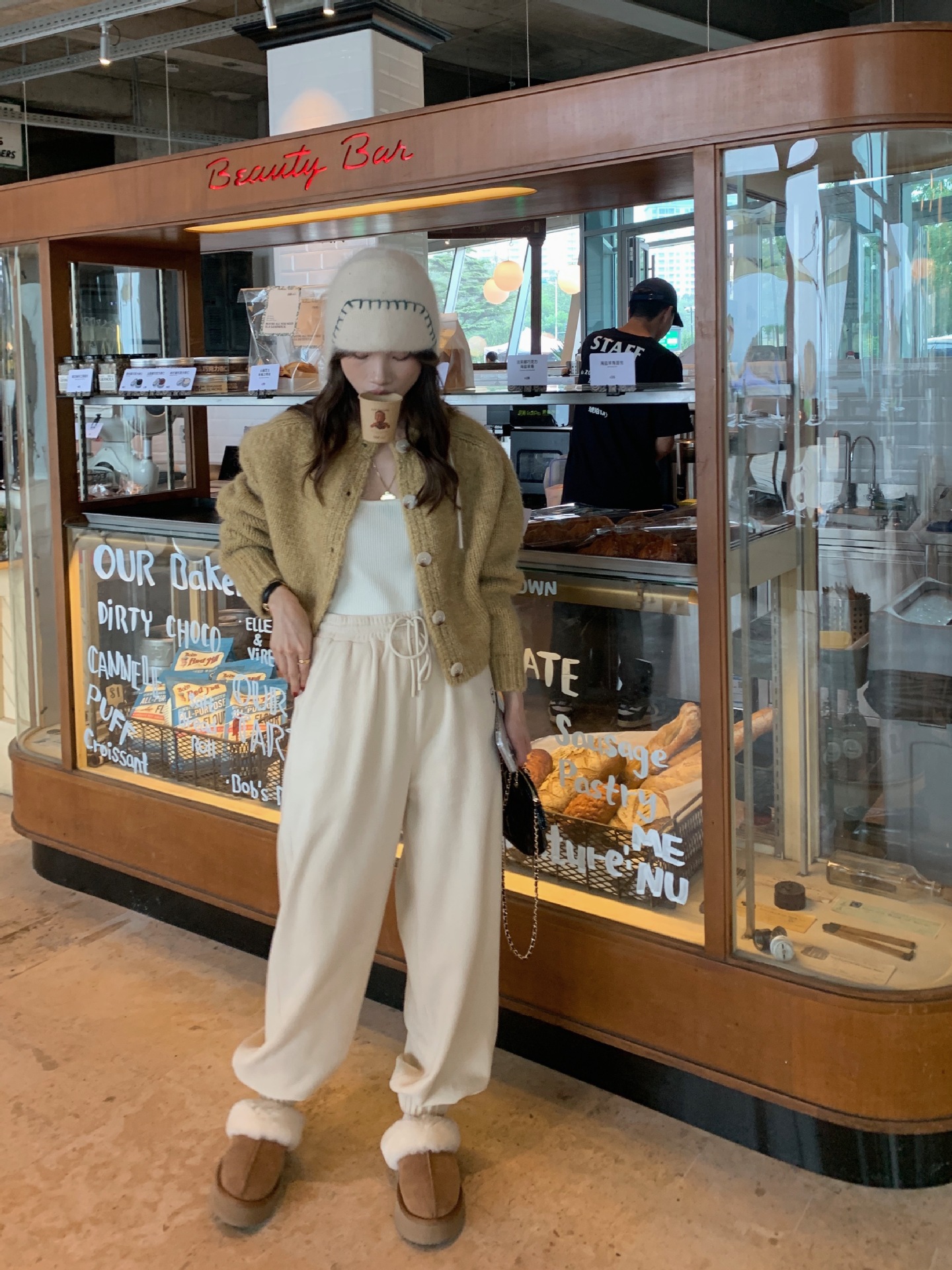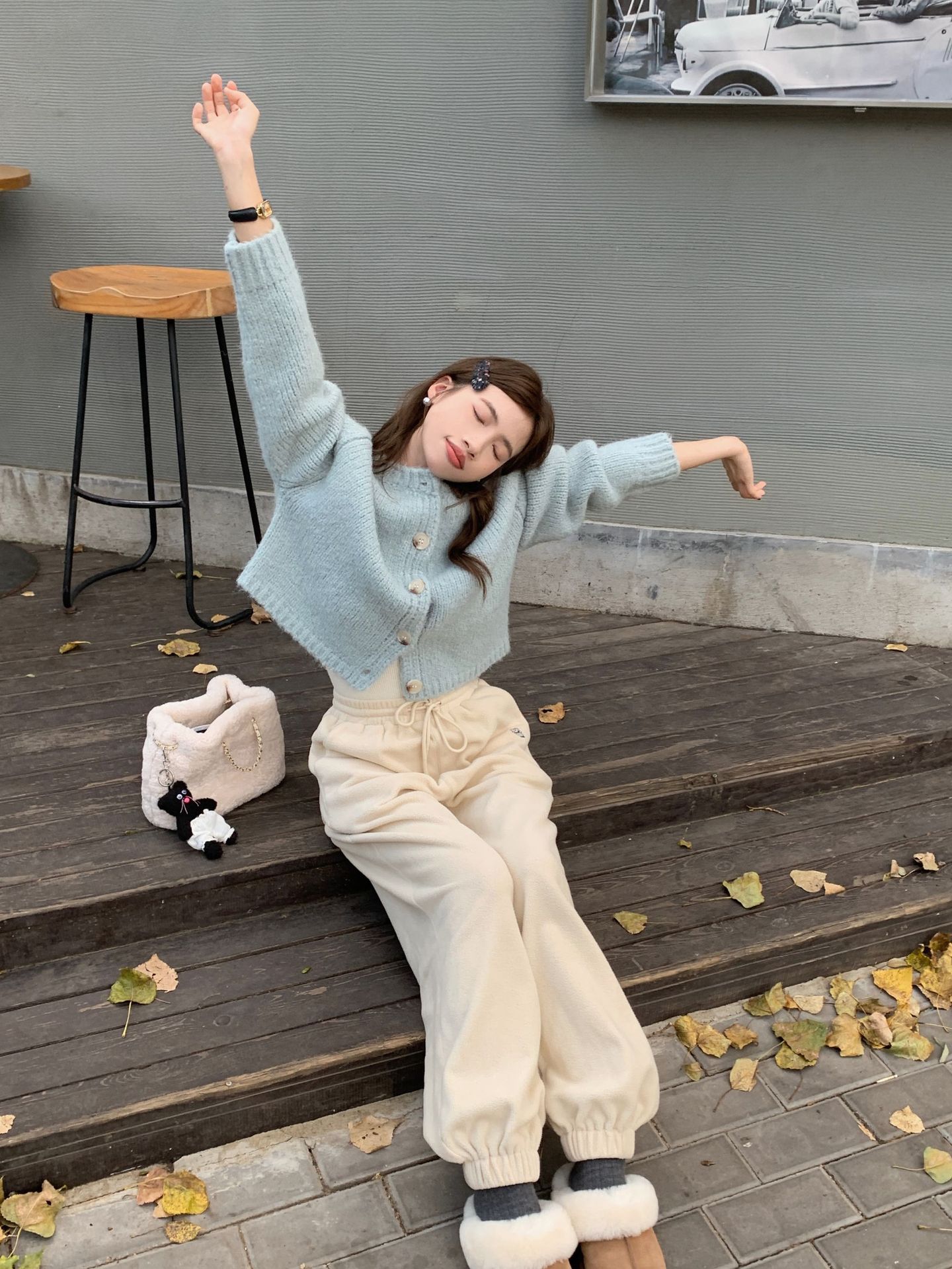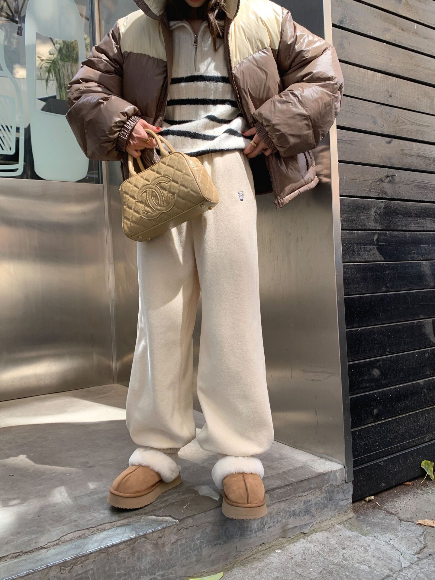 现2023冬季新款韩国东大门高腰显瘦宽松阔腿直筒松紧腰休闲裤卫裤