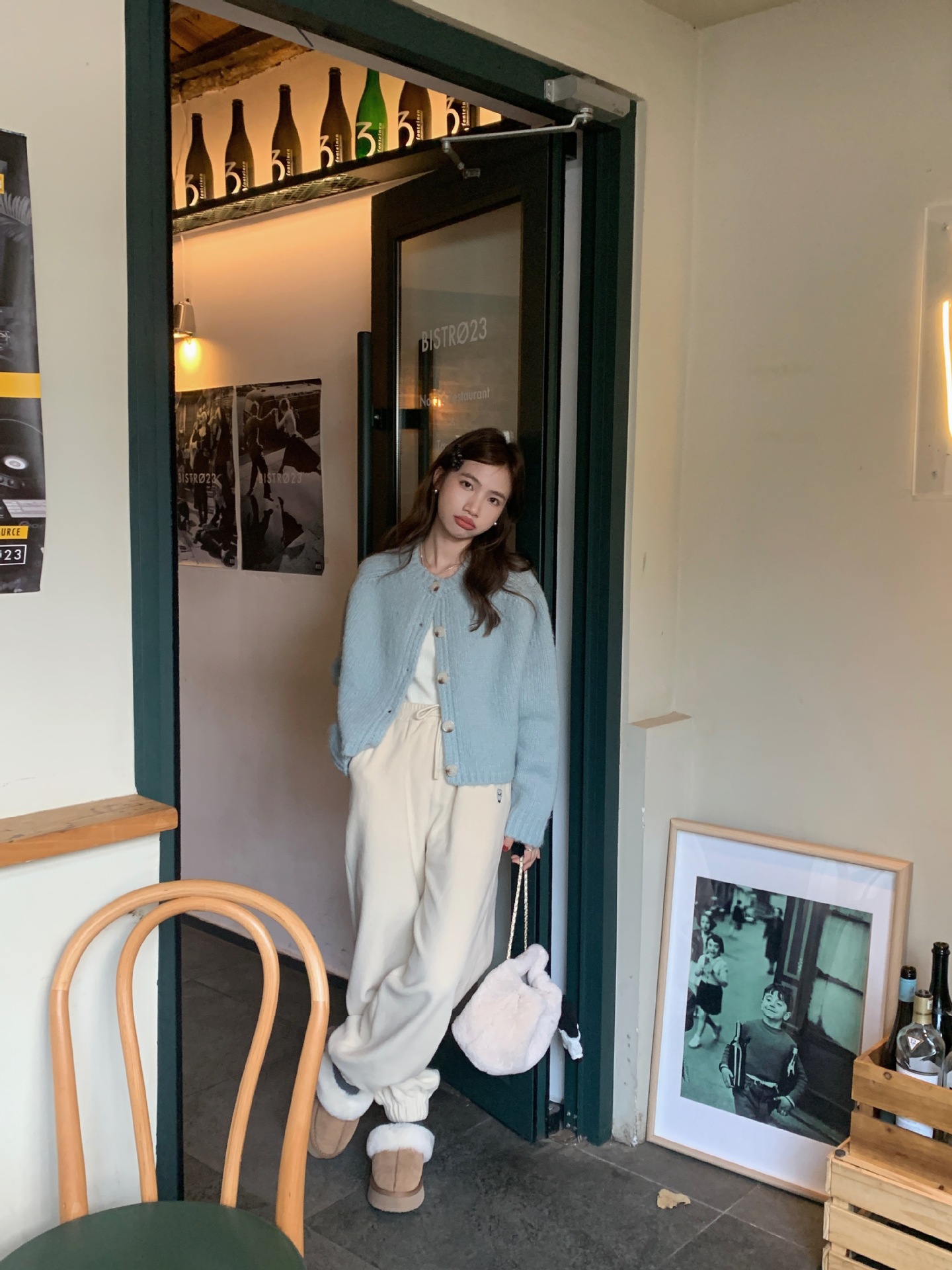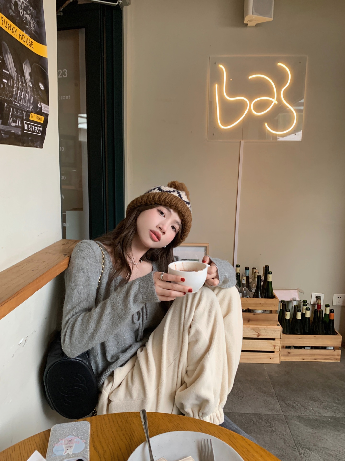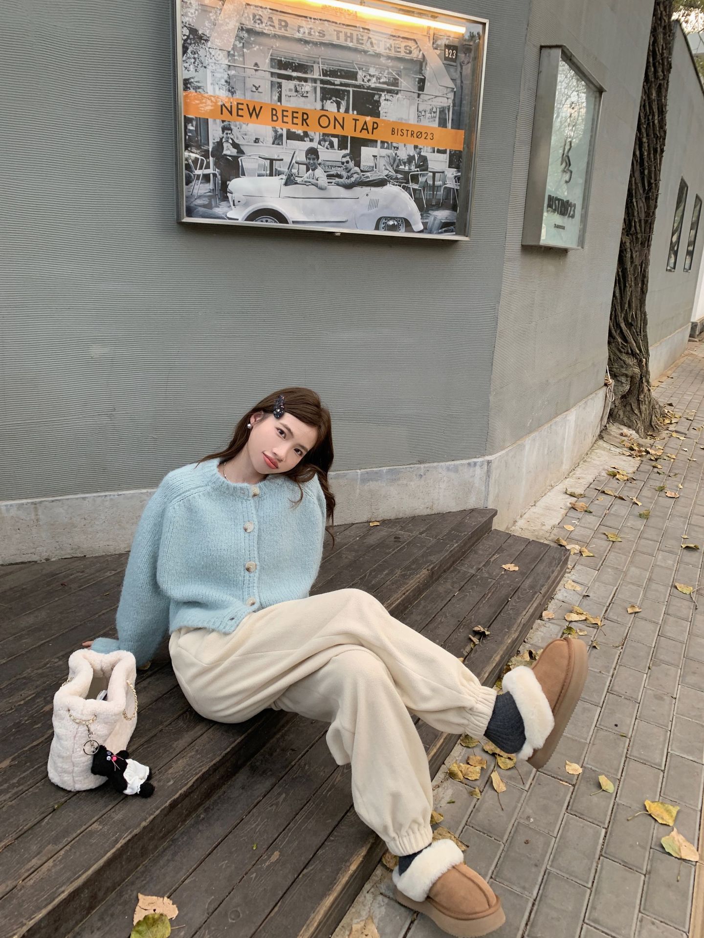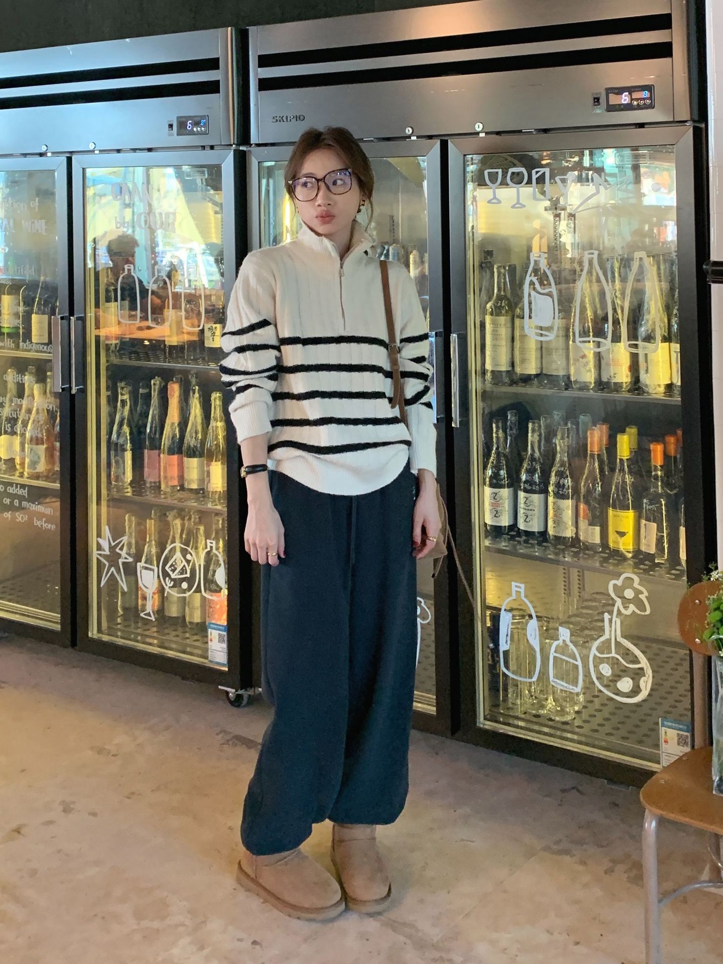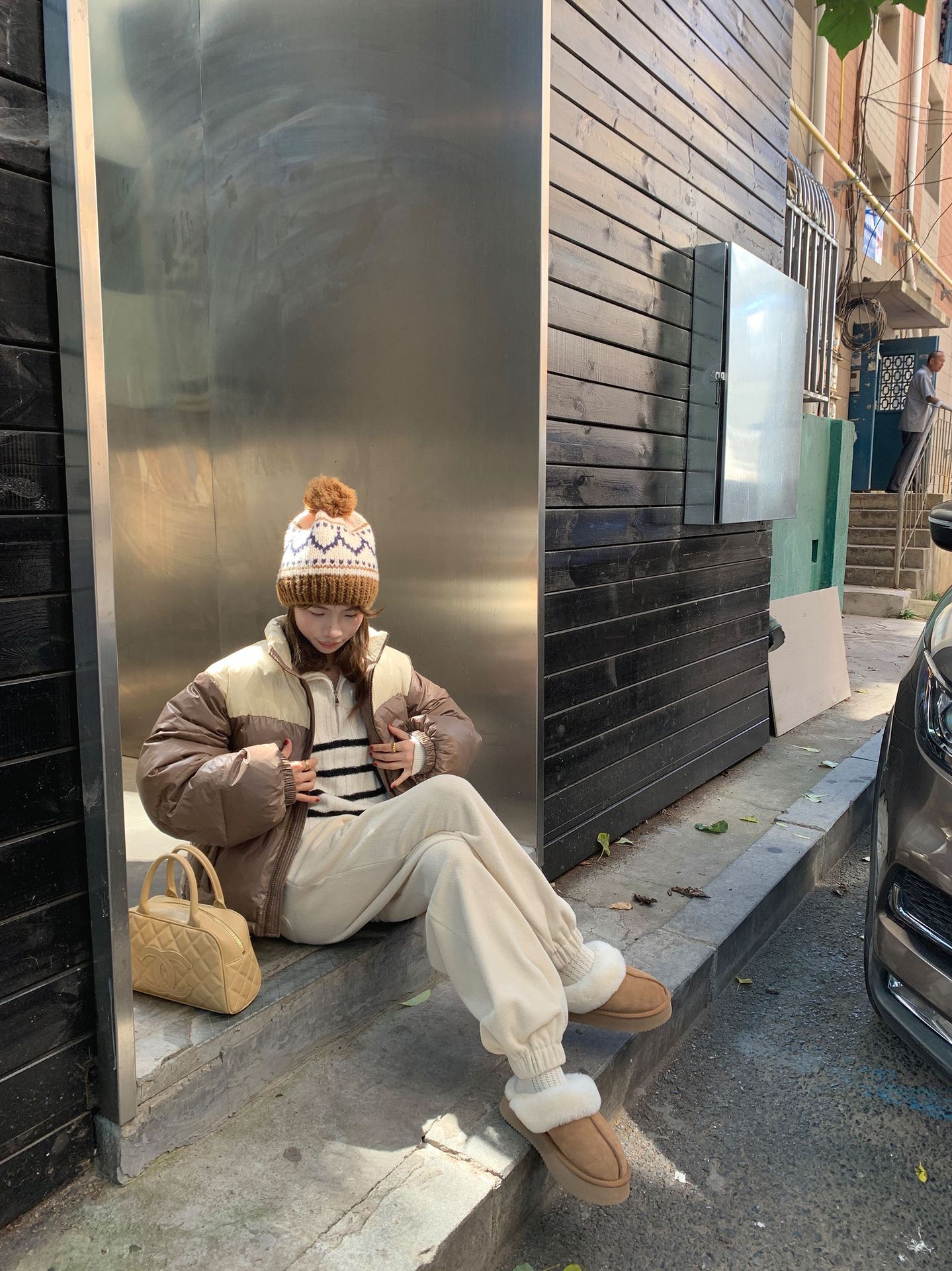 现2023冬季新款韩国东大门高腰显瘦宽松阔腿直筒松紧腰休闲裤卫裤