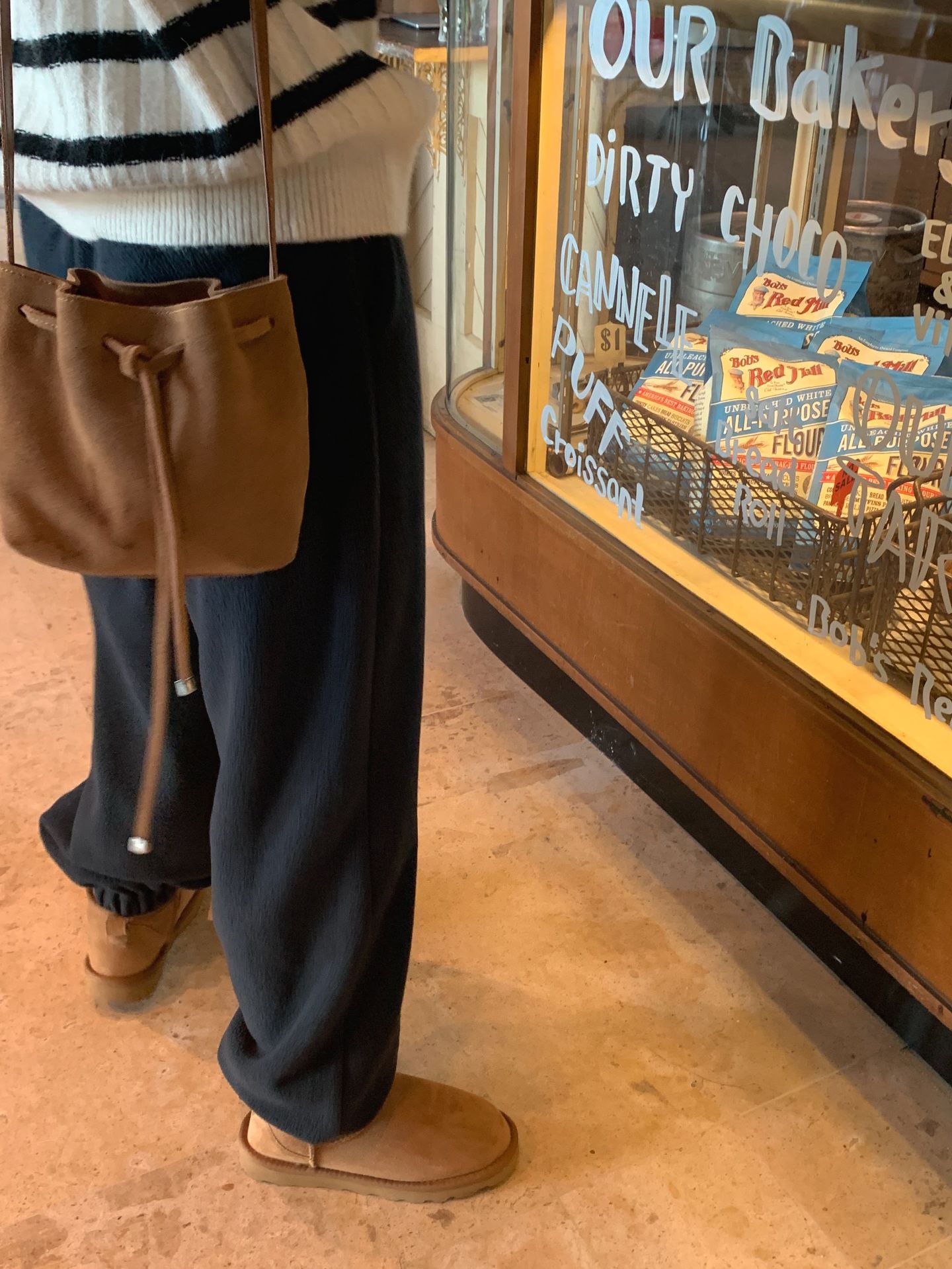 하이웨이스트 슬림 와이드 캐주얼 팬츠