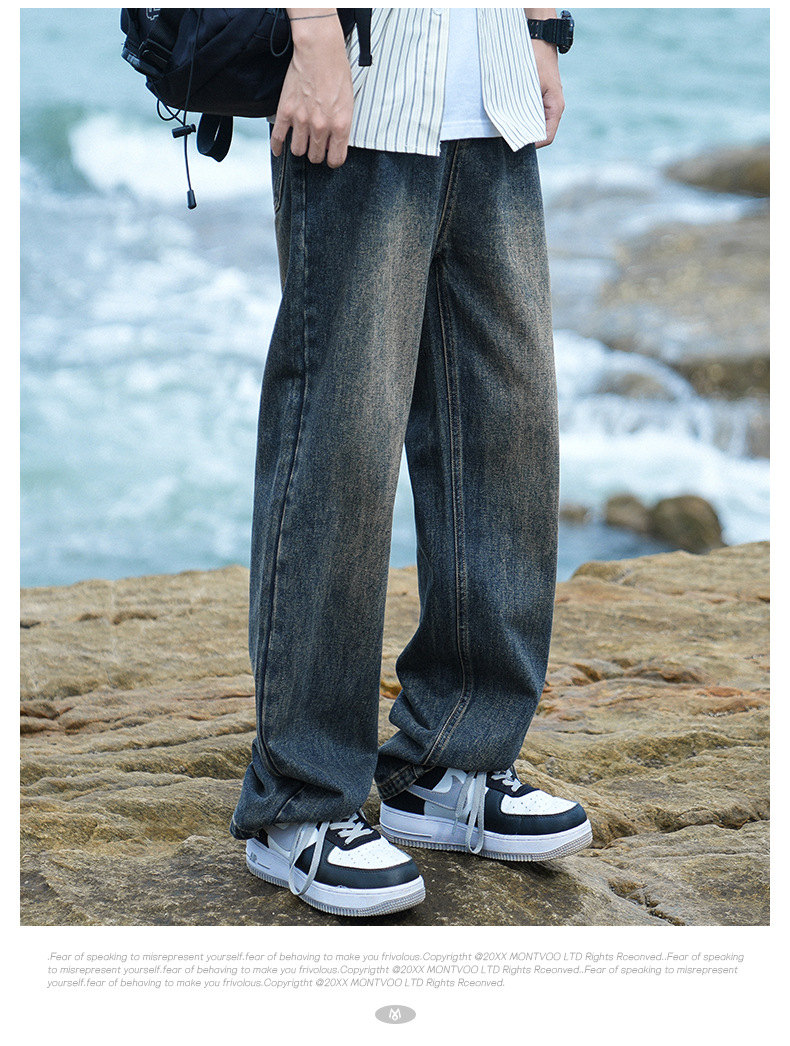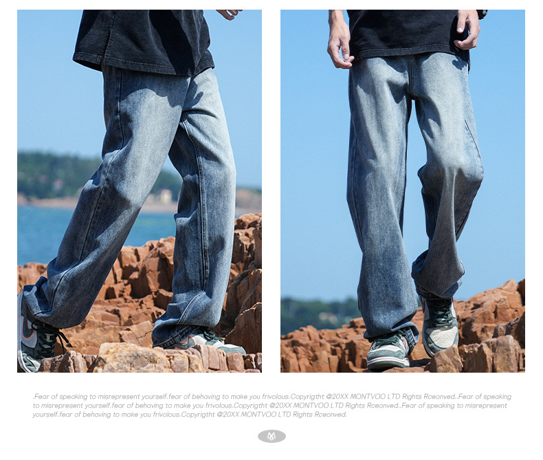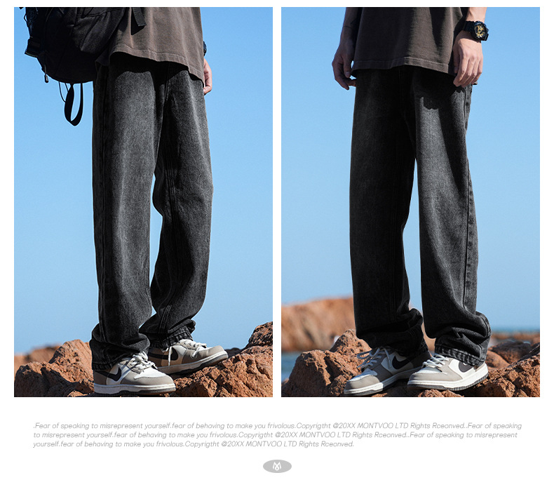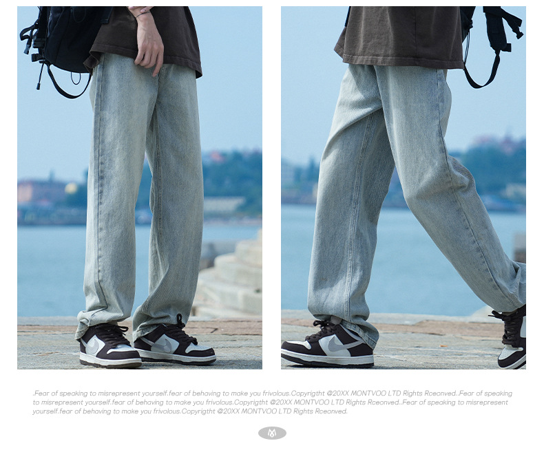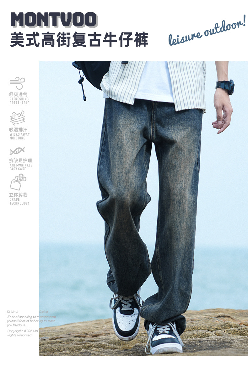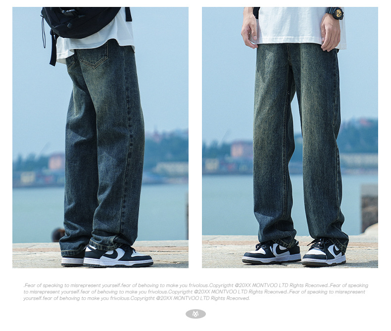 NASA复古牛仔裤男士春秋季2023年新款宽松直筒潮流加绒休闲长裤子