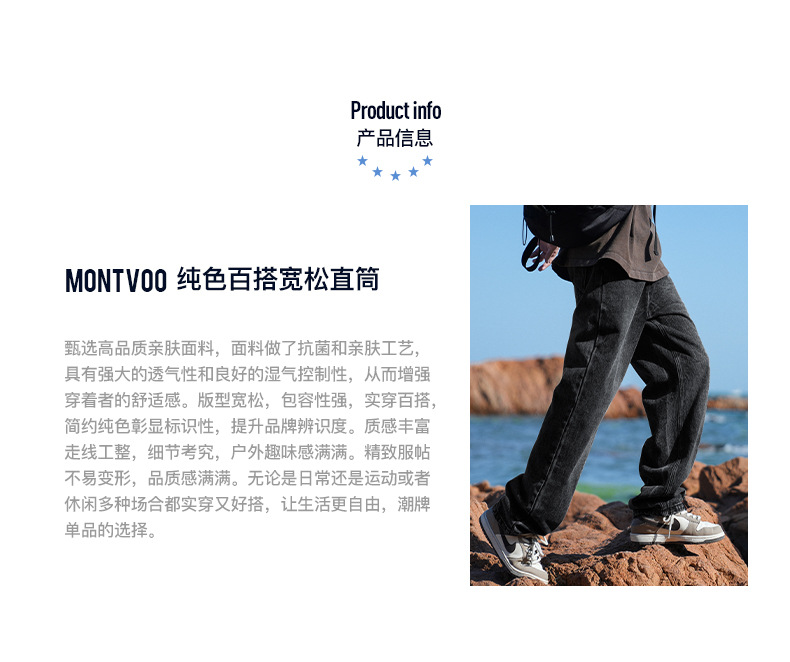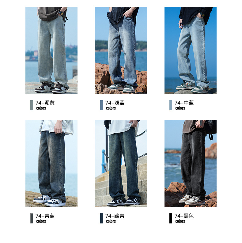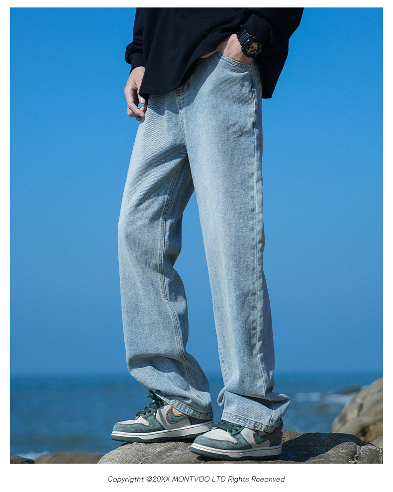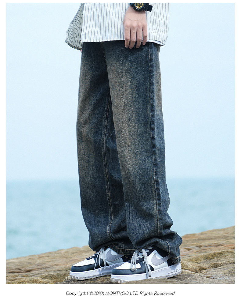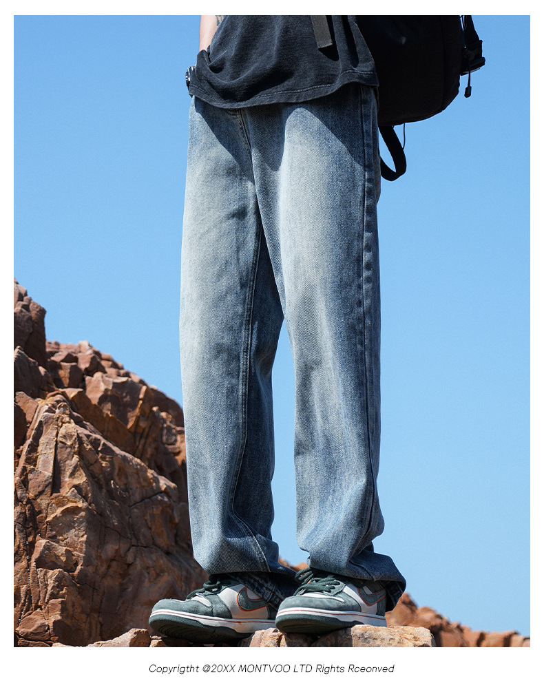 NASA复古牛仔裤男士春秋季2023年新款宽松直筒潮流加绒休闲长裤子
