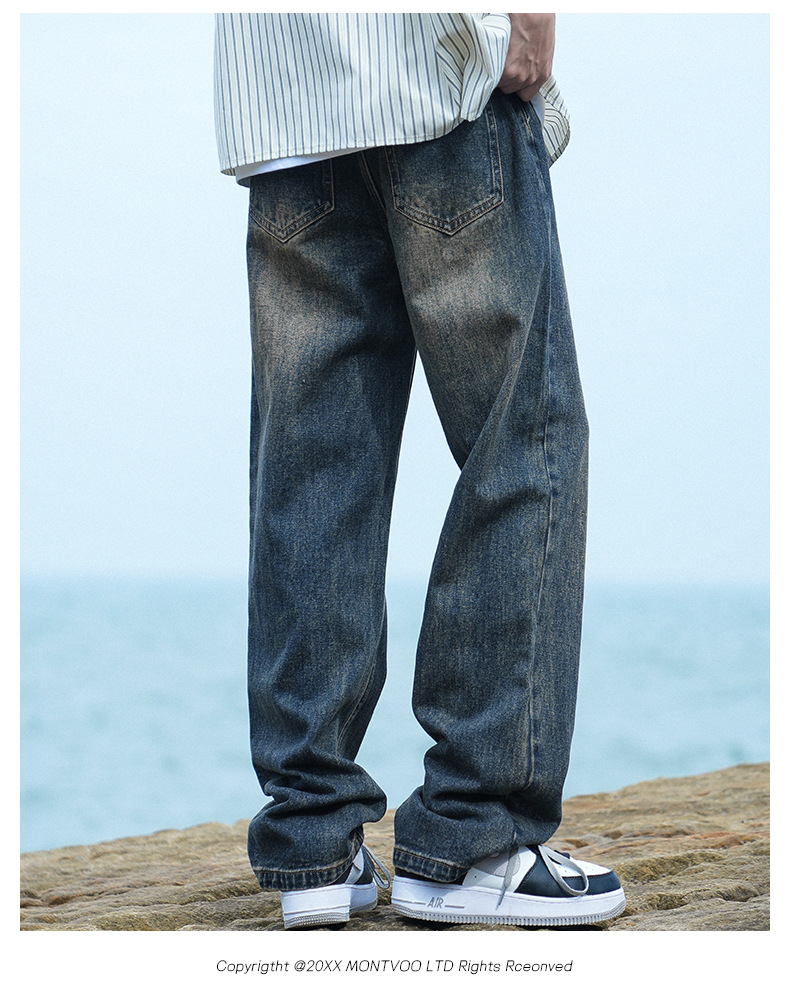 스트레이트 기모 캐주얼 빈티지 청바지 남