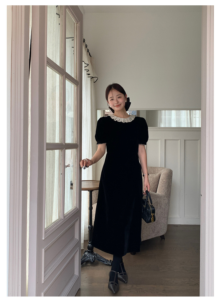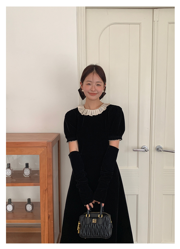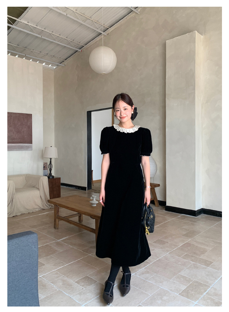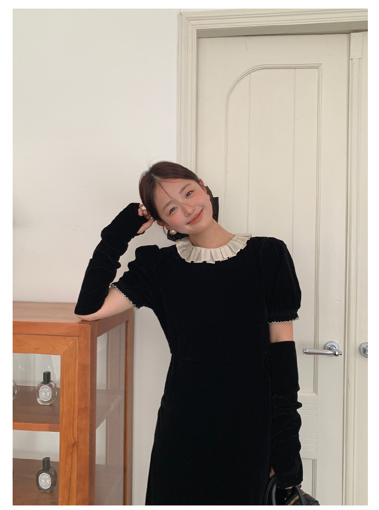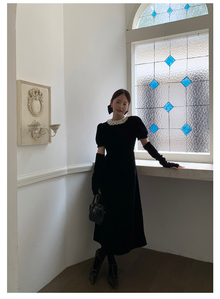 레이스 칼라 슬림 버블 슬리브 원피스 여
