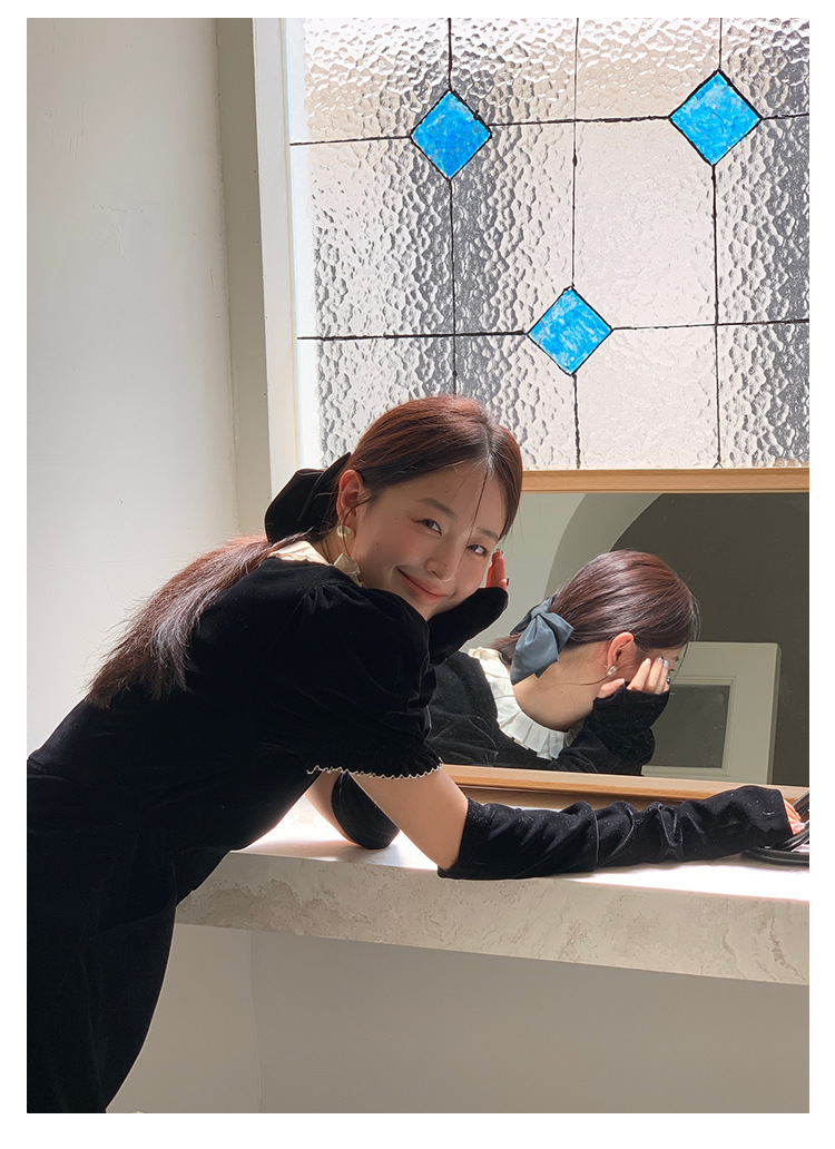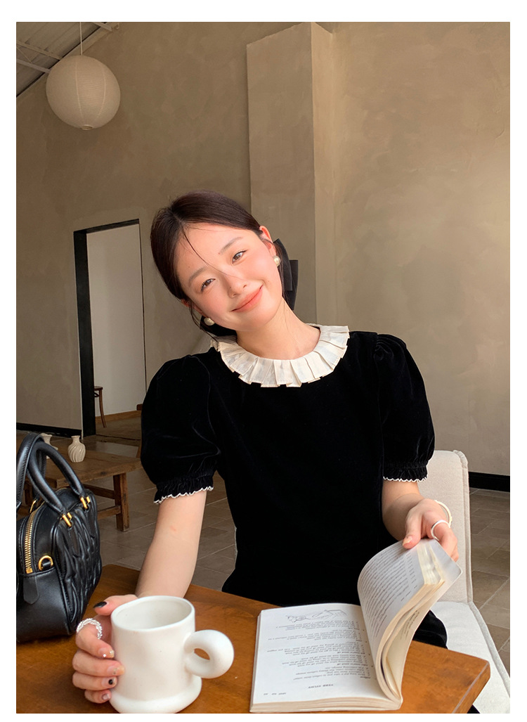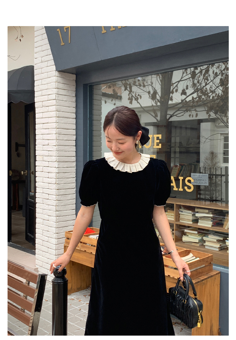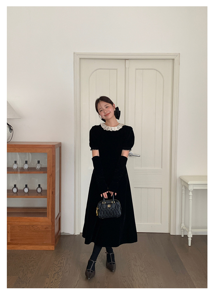 레이스 칼라 슬림 버블 슬리브 원피스 여