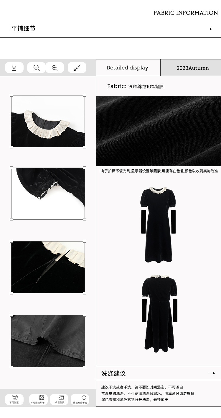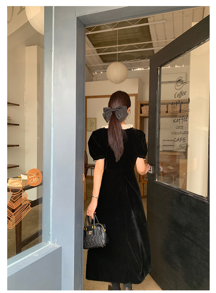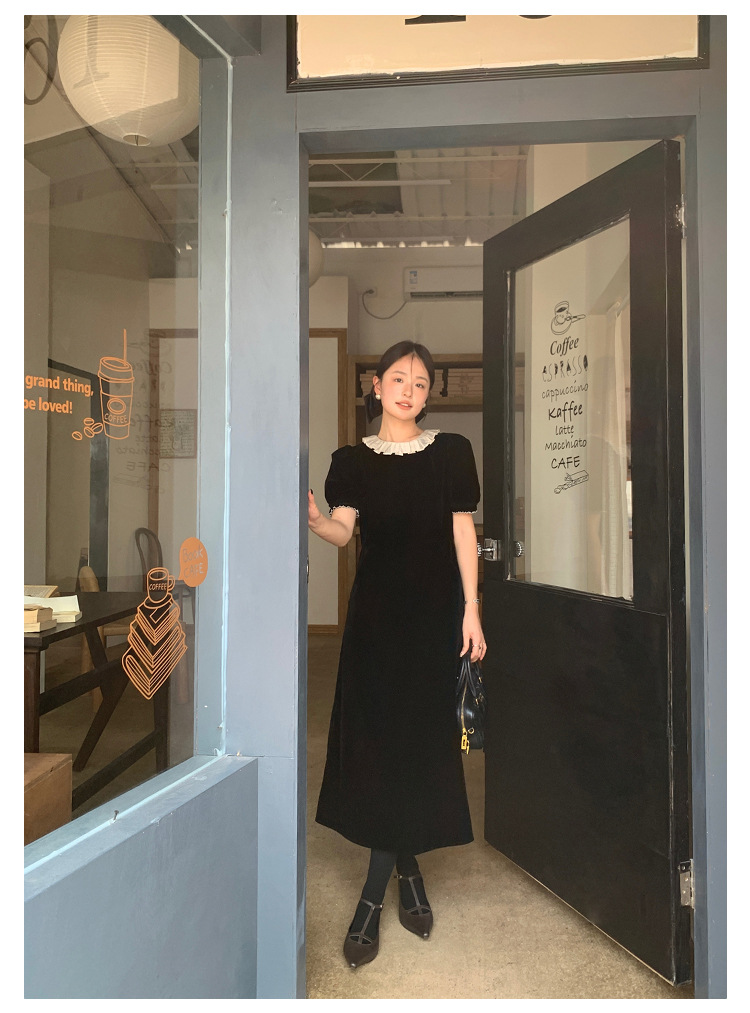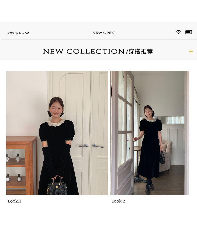 诠释美 NEWOPEN 2023秋冬法式花边领显瘦气质泡泡袖连衣裙女83923