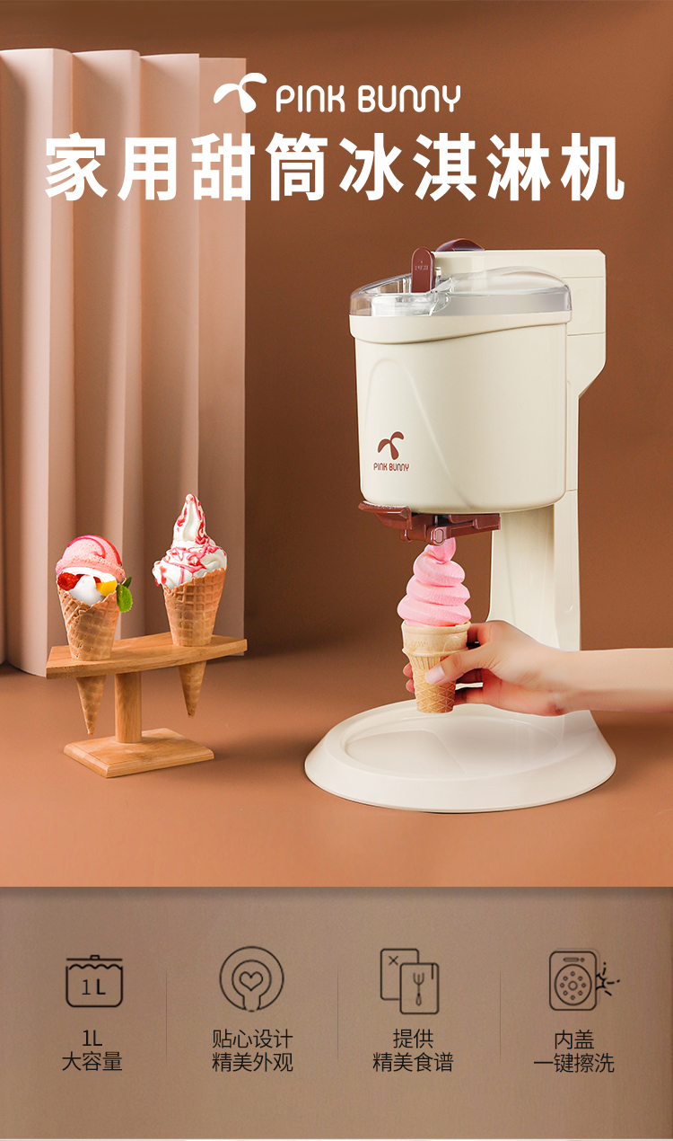 班尼兔冰激凌机家用小型全自动甜筒机雪糕机儿童自制冰淇淋机器