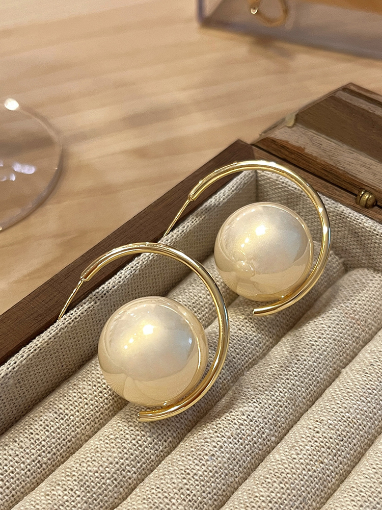 라인 리버사이드~빅 진주 귀걸이 여성스러운 디자인의 고급스러운 2024년 신상 서양풍 귀걸이
