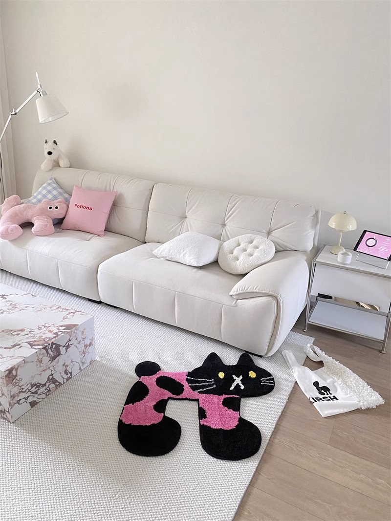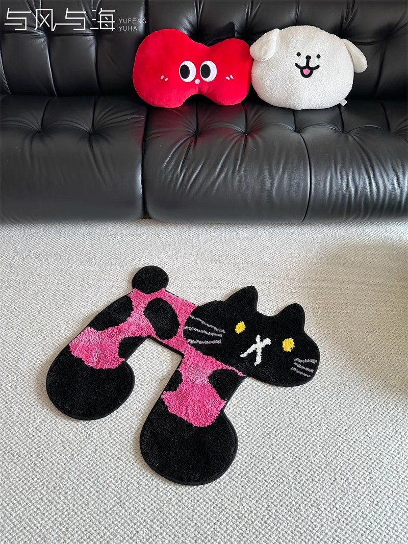 黑粉猫猫地毯 客厅毛毯可爱猫咪卧室床边毯浴室吸水垫植绒地毯