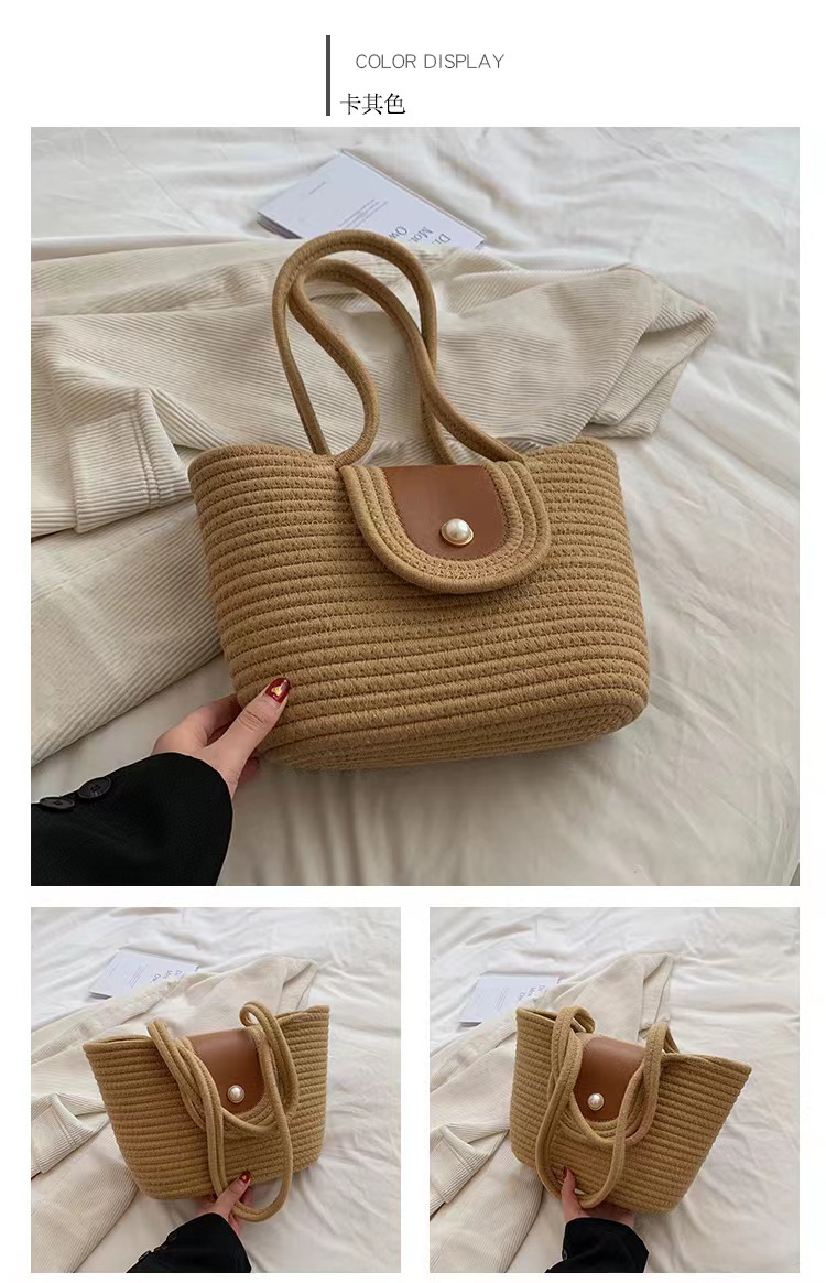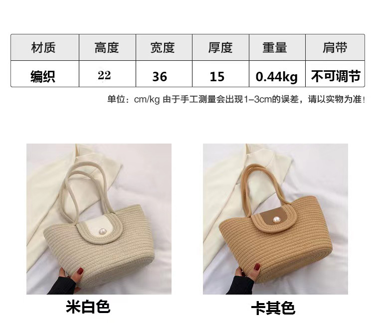 春夏编织女包草编包棉绳手提包手拎磁扣棉绳手提包沙滩包