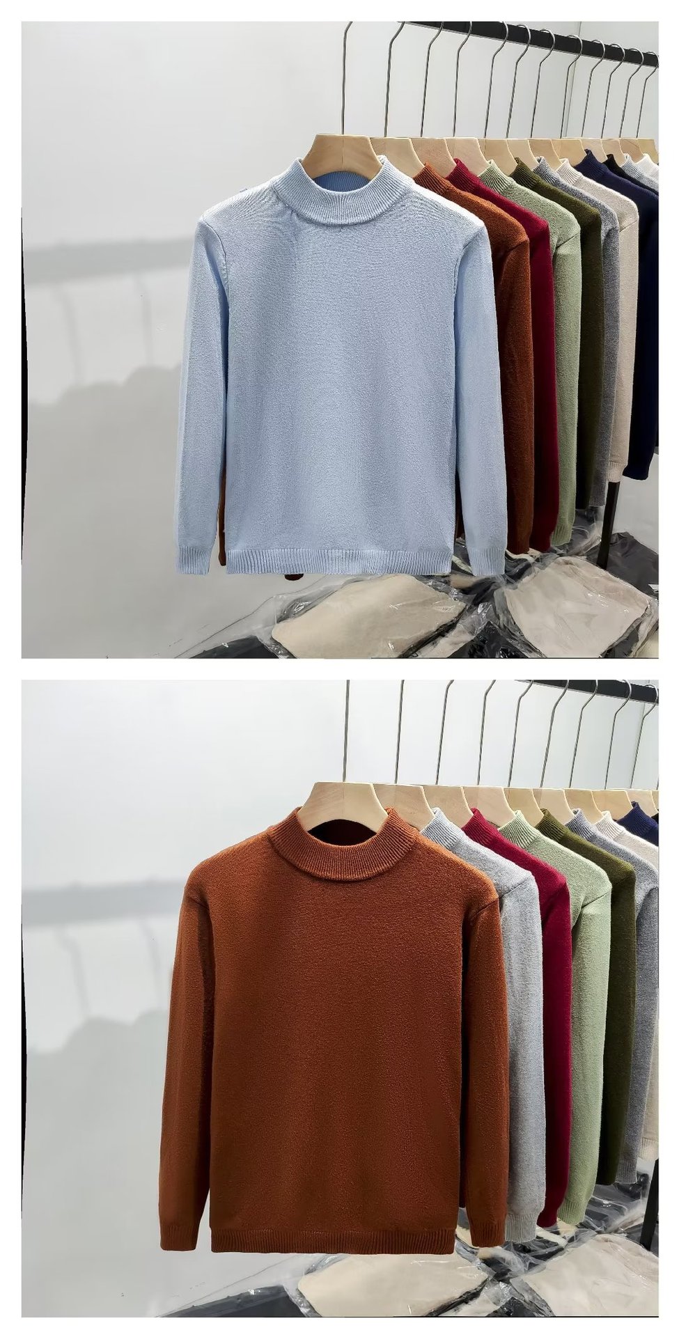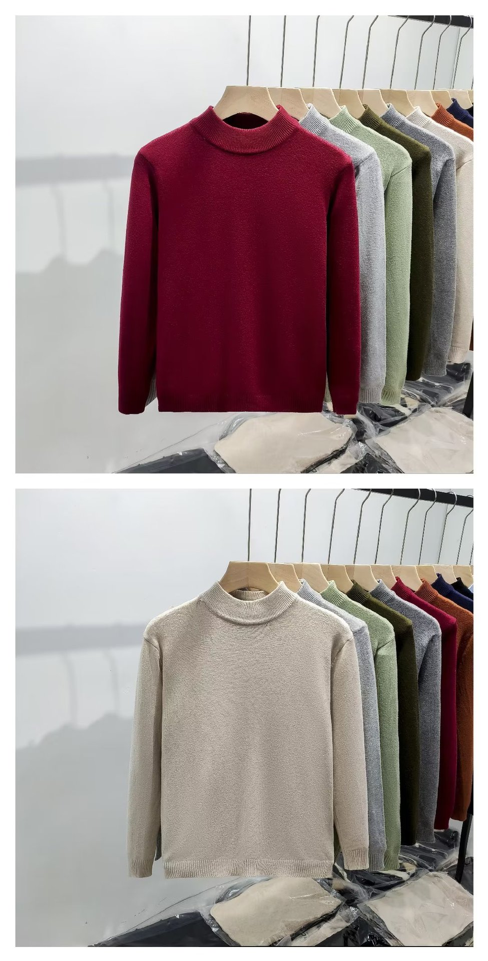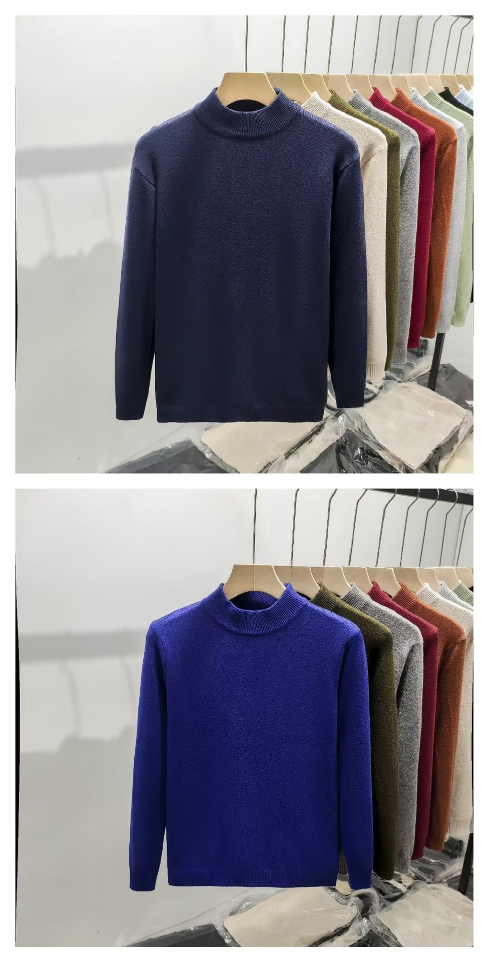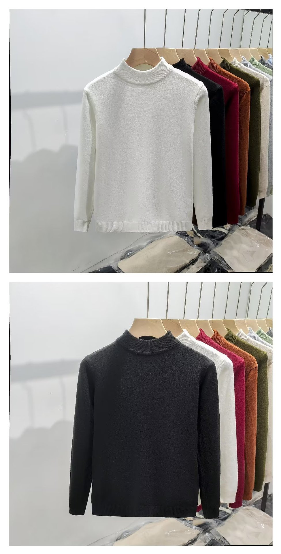 秋冬男保暖半高领毛衣纯色百搭针织衫女冬打底衫线衣上衣跨境代发