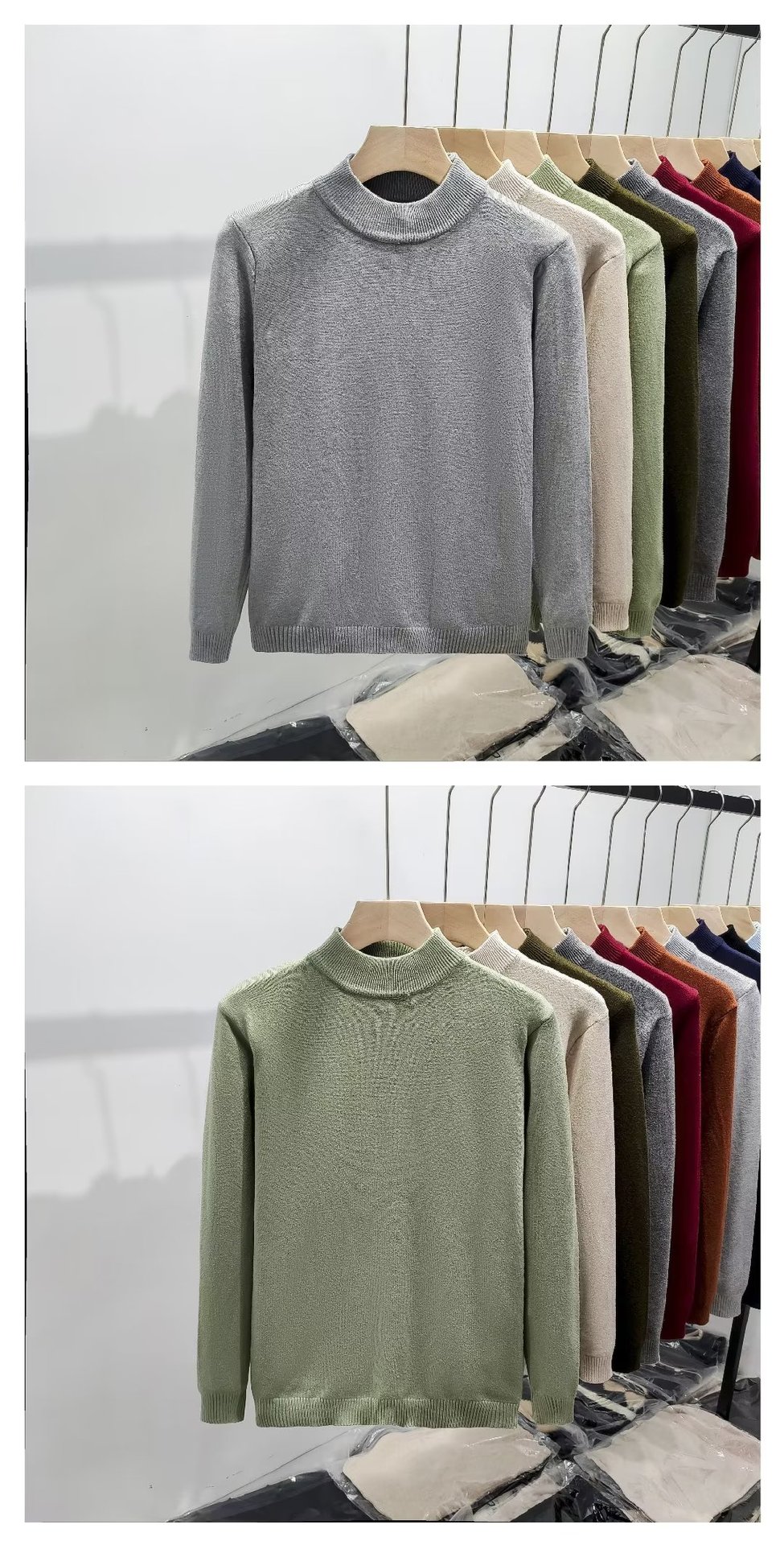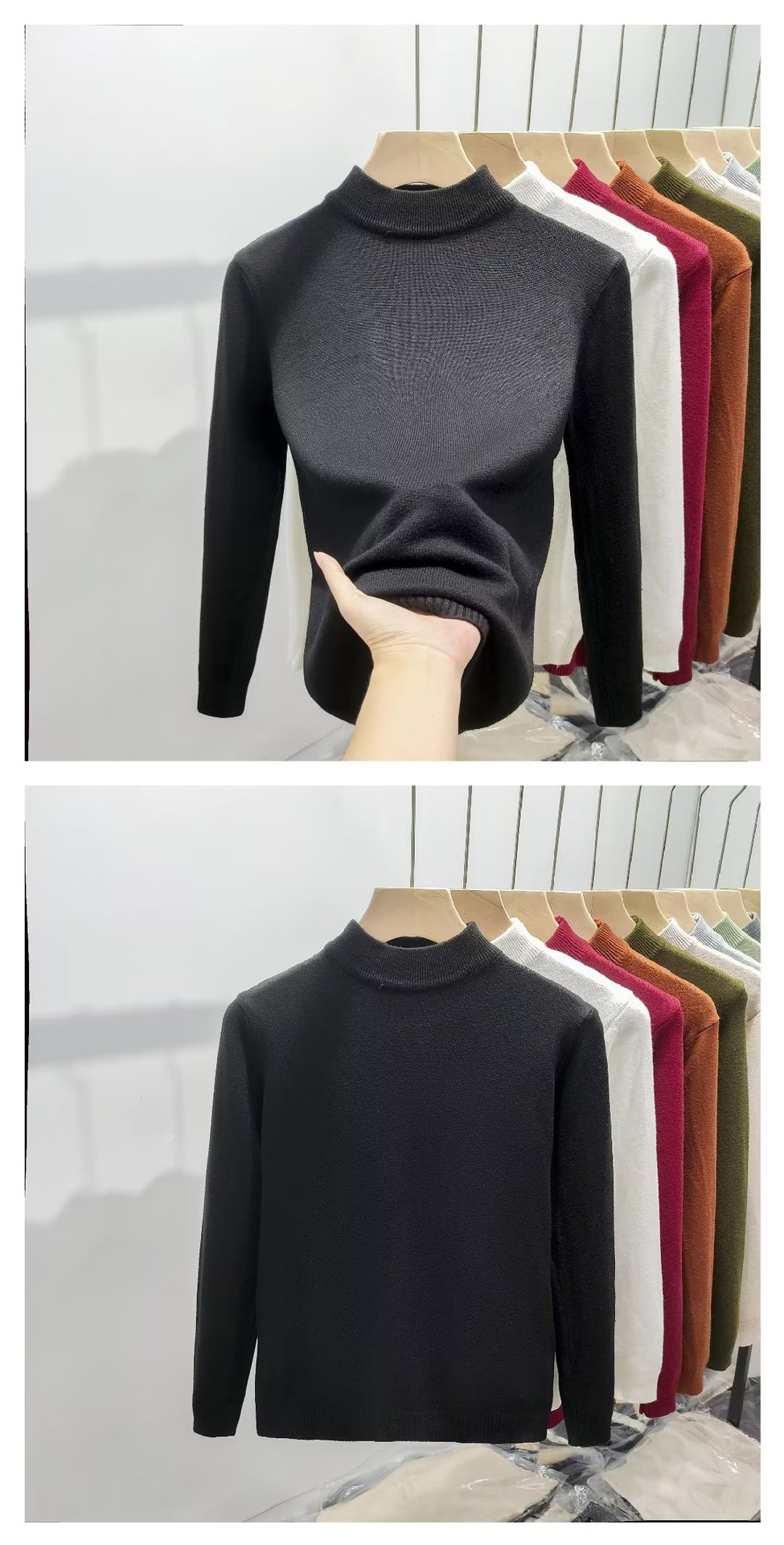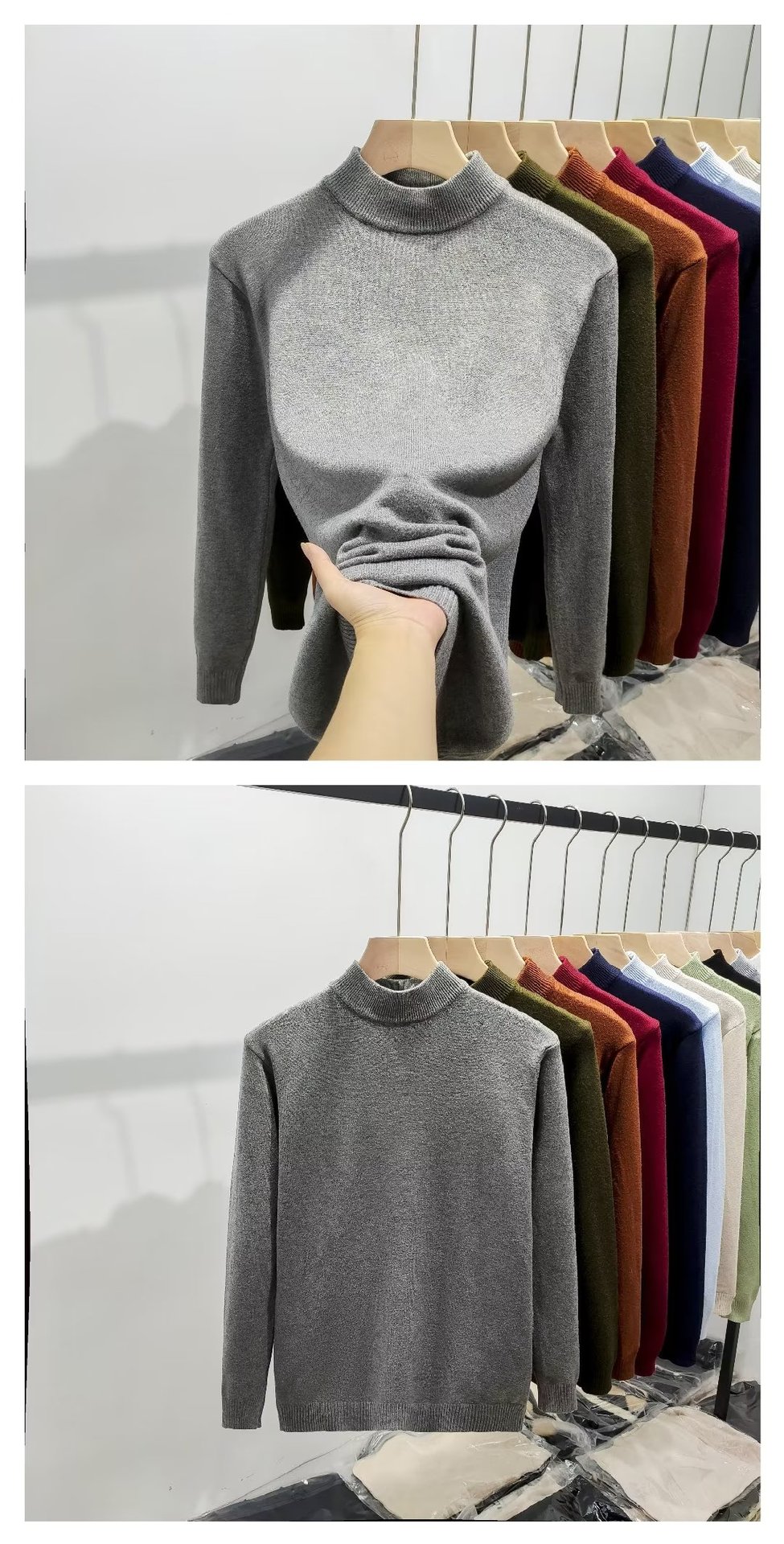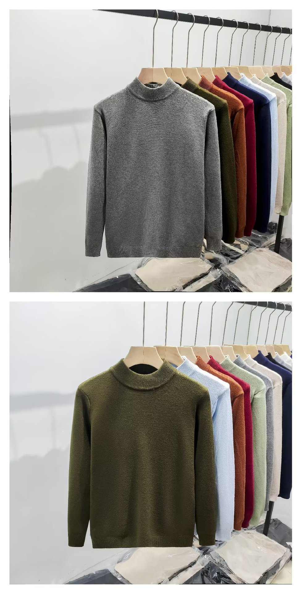 秋冬男保暖半高领毛衣纯色百搭针织衫女冬打底衫线衣上衣跨境代发