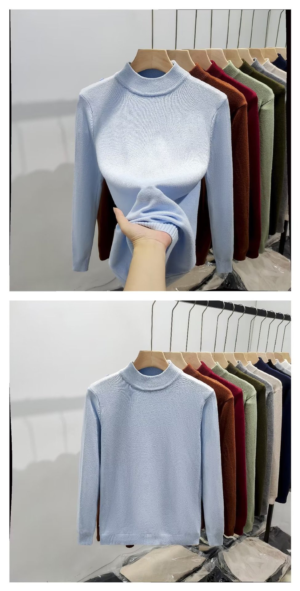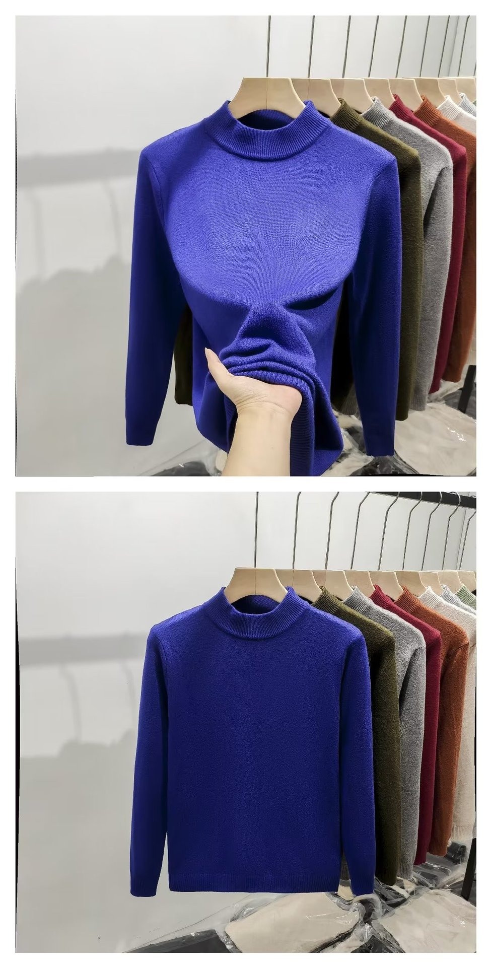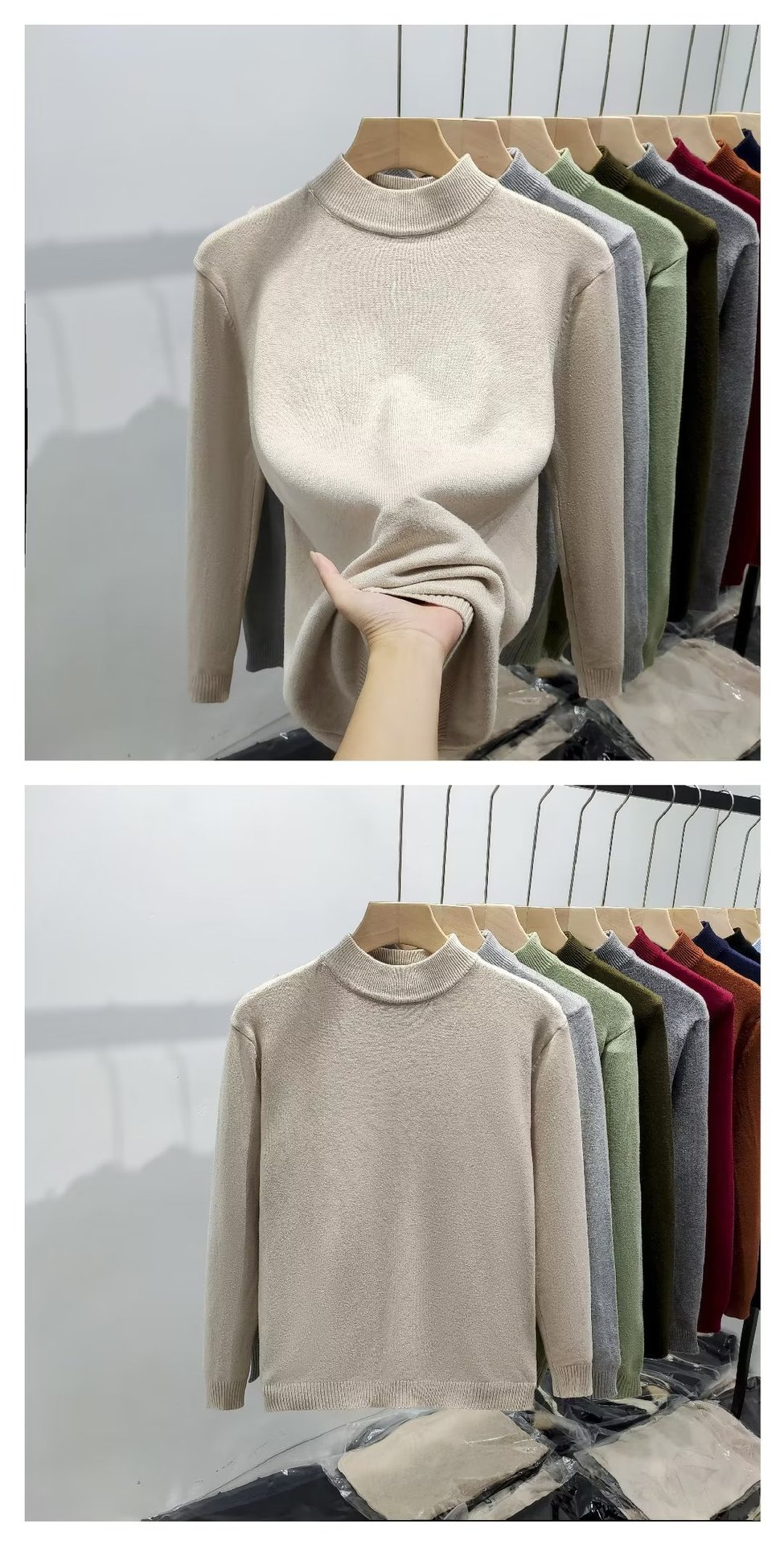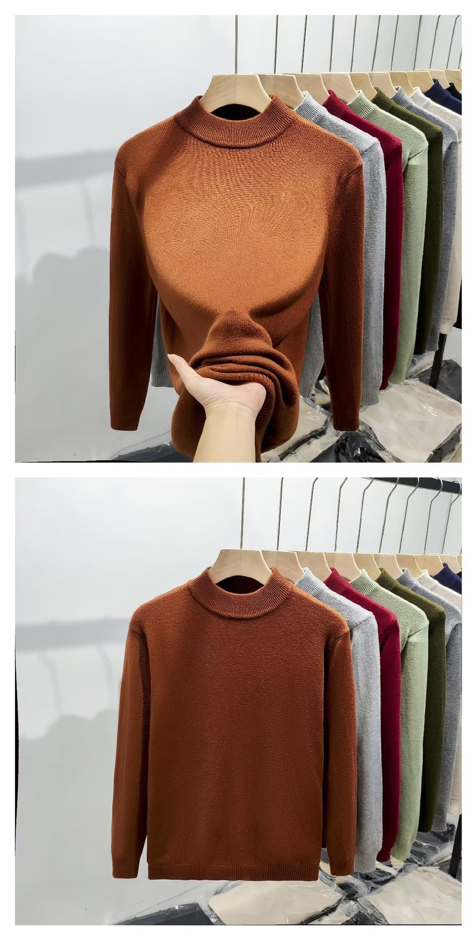 秋冬男保暖半高领毛衣纯色百搭针织衫女冬打底衫线衣上衣跨境代发