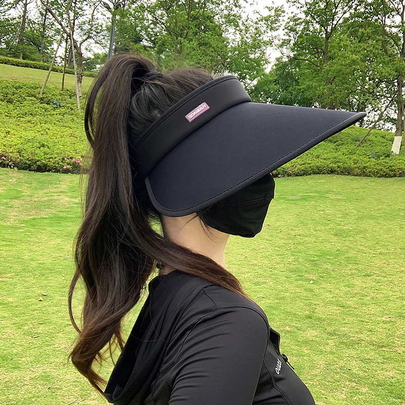 新款空顶防晒帽女夏季防紫外线加大帽檐骑车遮阳帽黑色冰丝太阳帽