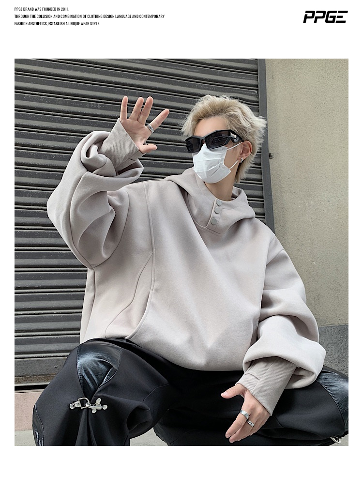 500g重磅卫衣男2024春秋款美式复古潮牌硬挺套头连帽外套oversize