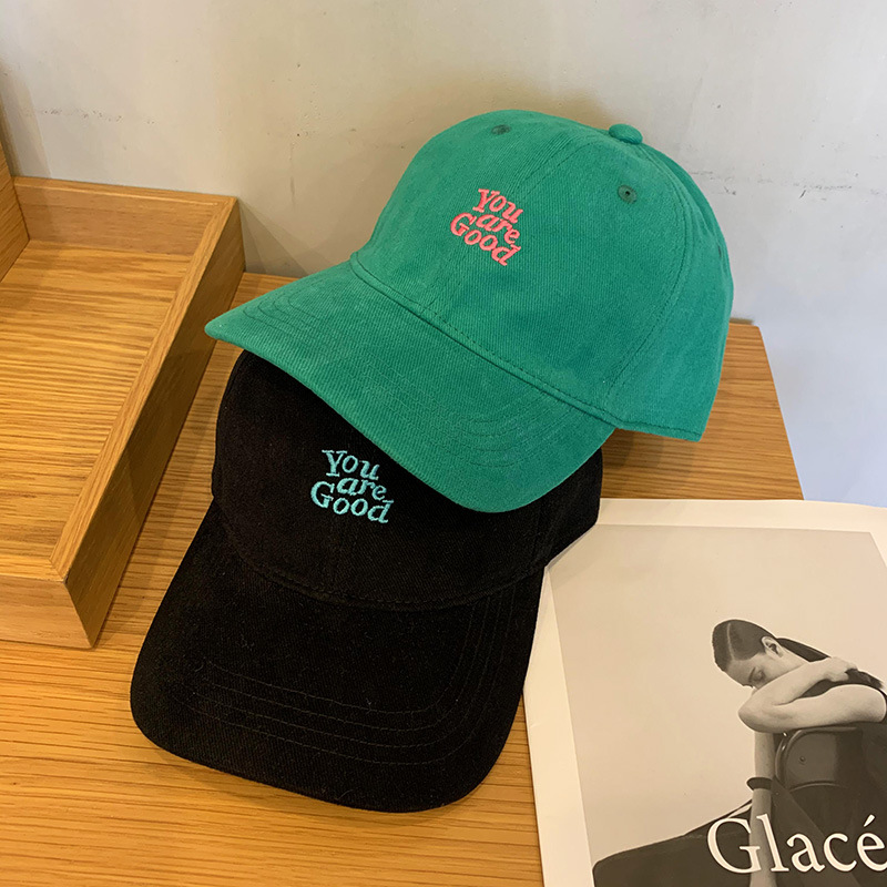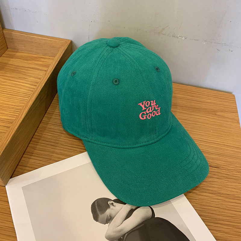 韩国ins绿色软顶棒球帽子女春夏百搭日系时尚潮流字母刺绣鸭舌帽