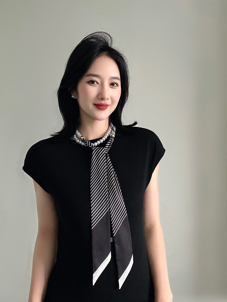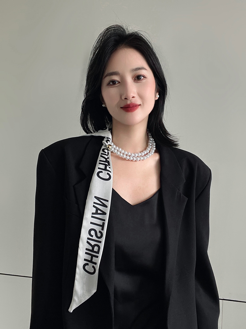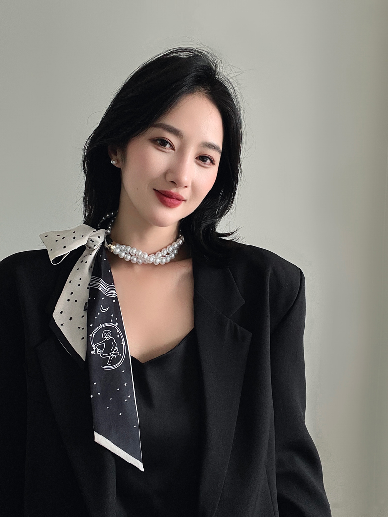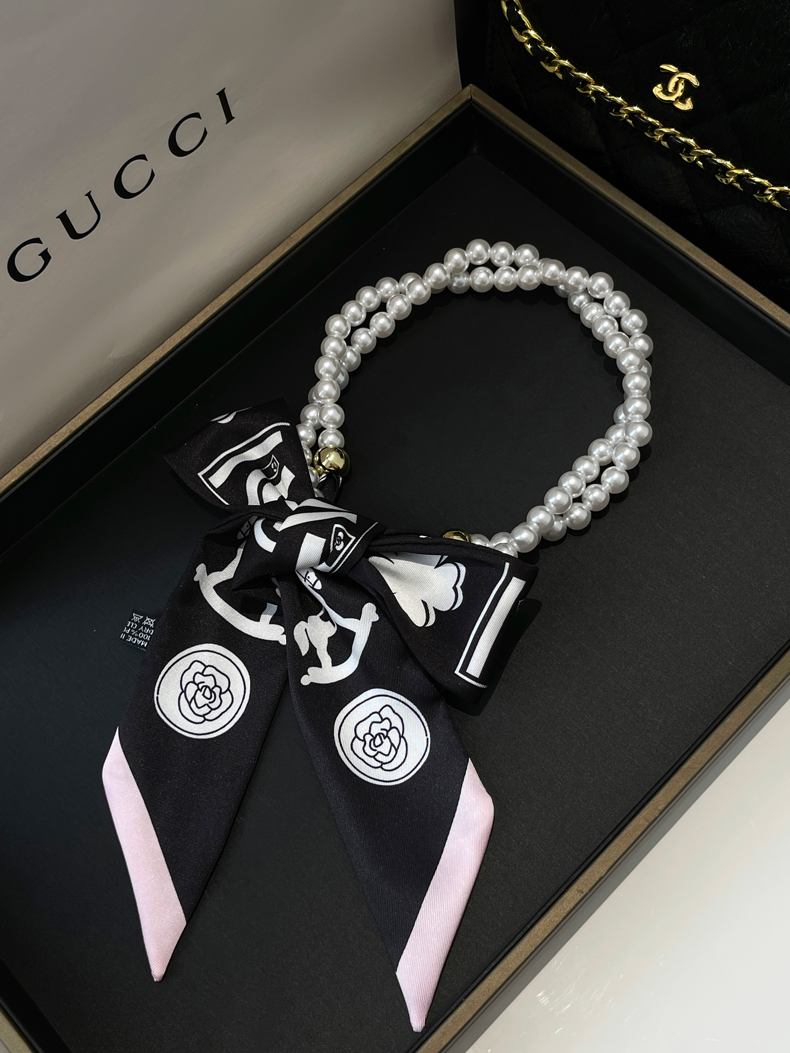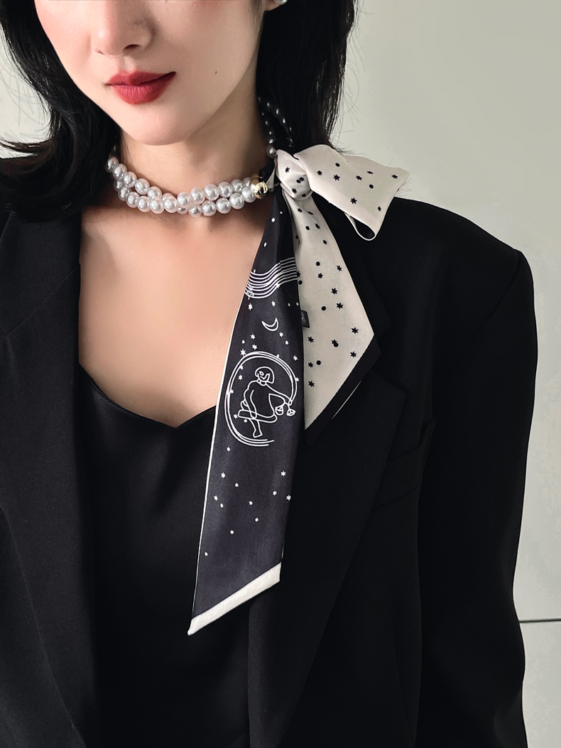 法式复古春夏珍珠项链丝巾女锁骨链丝带韩版装饰绑发带小领巾飘带