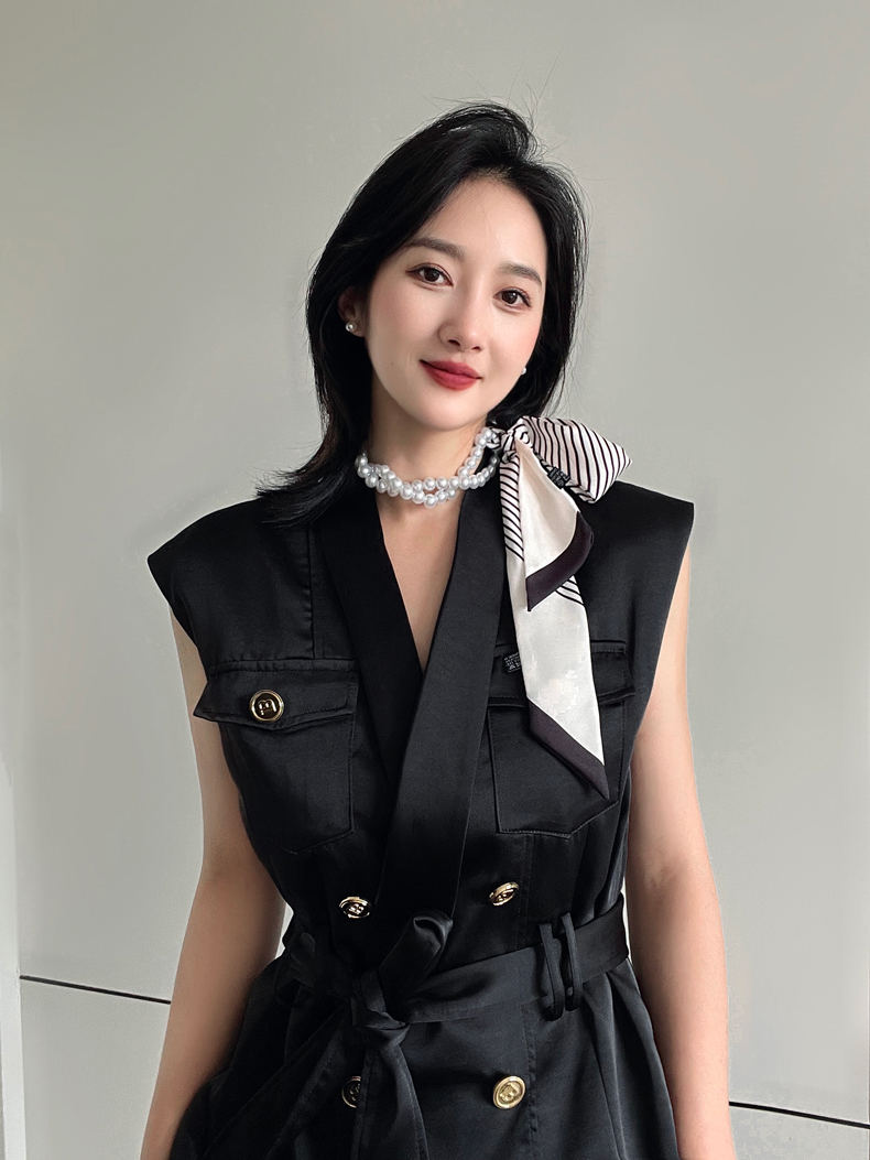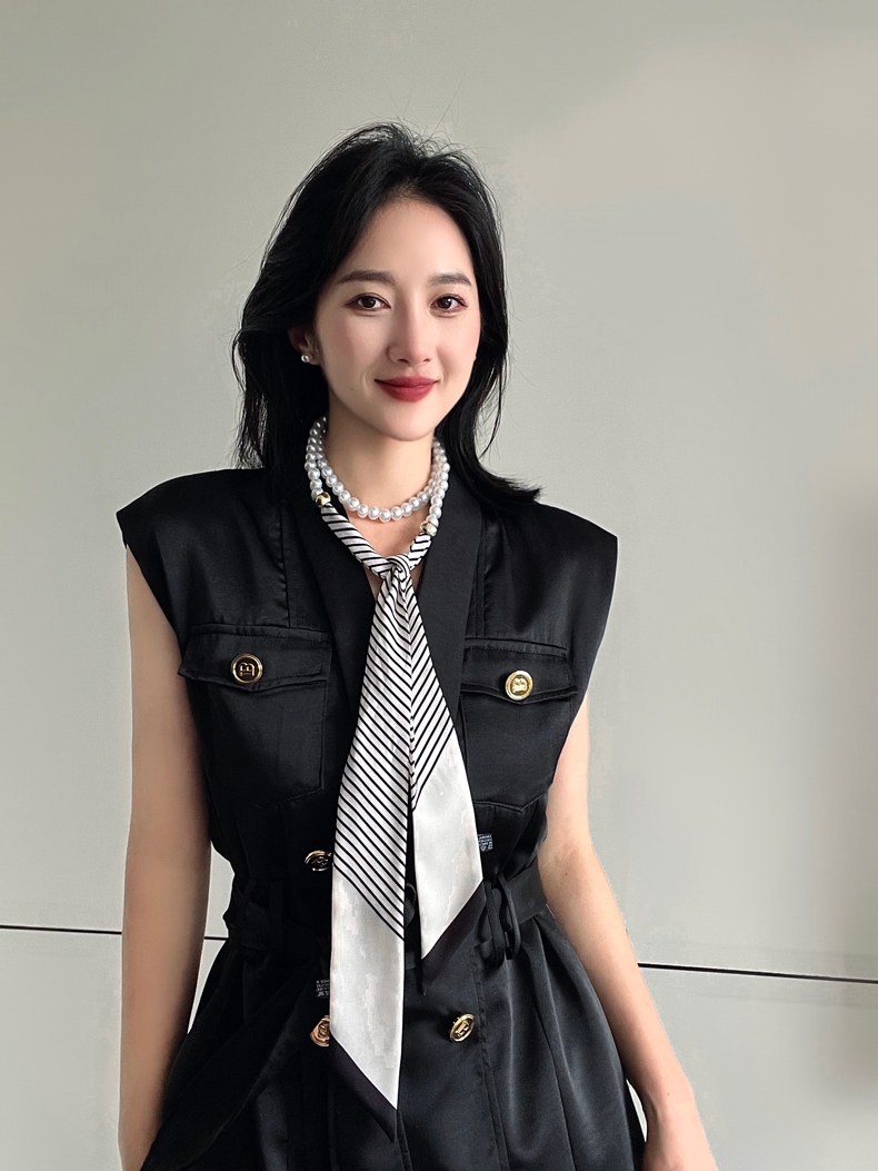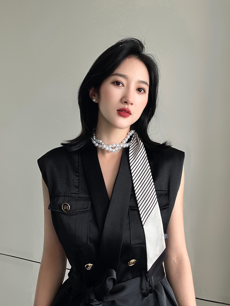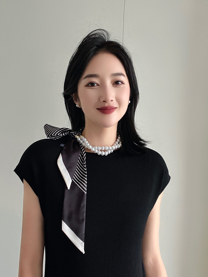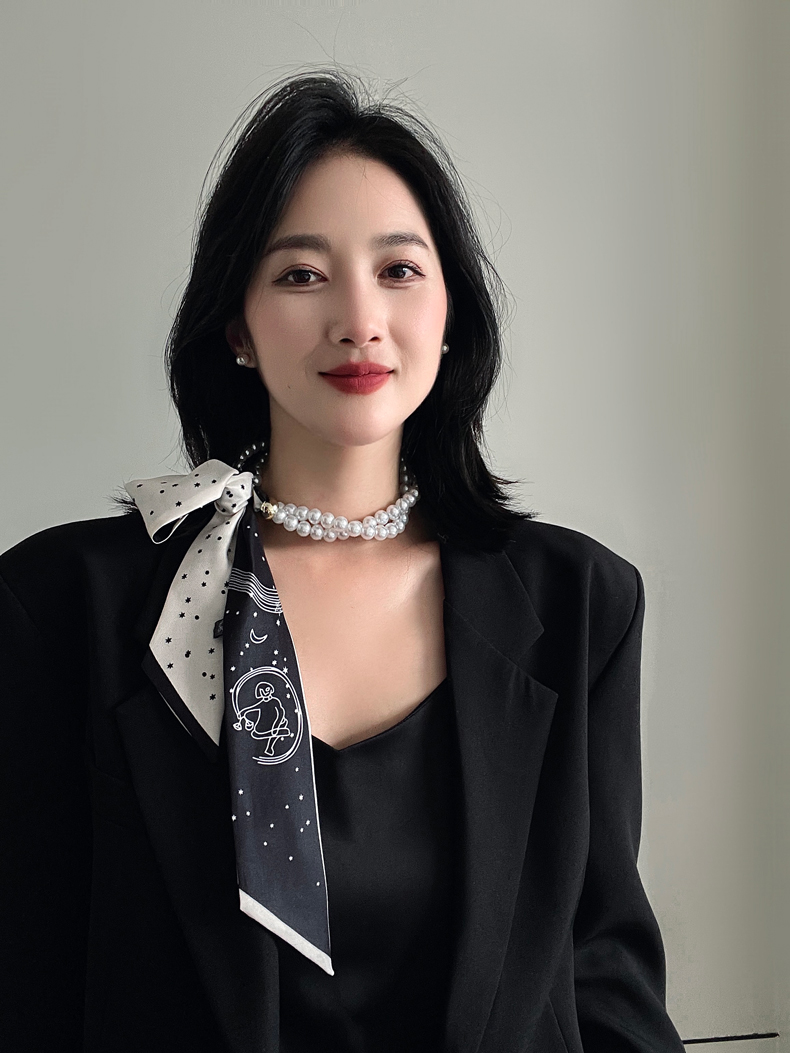法式复古春夏珍珠项链丝巾女锁骨链丝带韩版装饰绑发带小领巾飘带