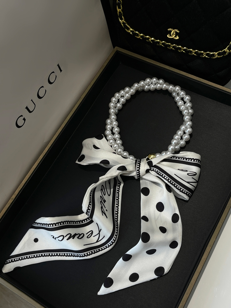 프렌치 빈티지 봄여름 진주 목걸이 스카프 여