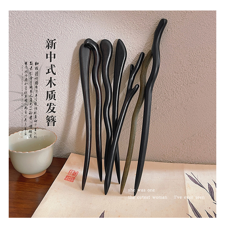 古风高级感黑檀木发簪女简约现代簪子新中式发簪盘发发钗2023新款
