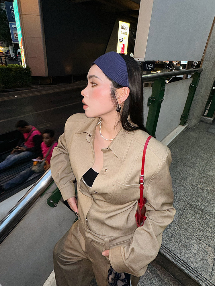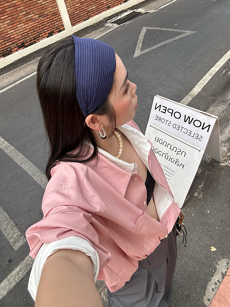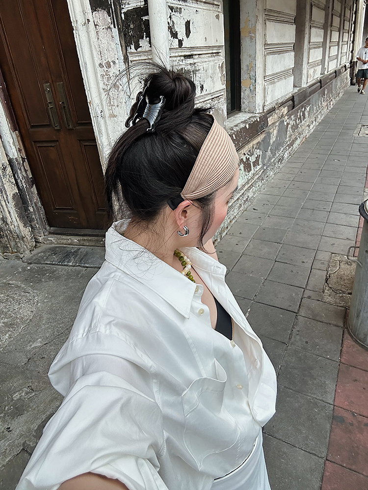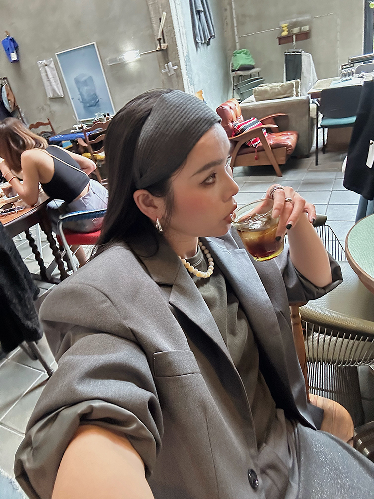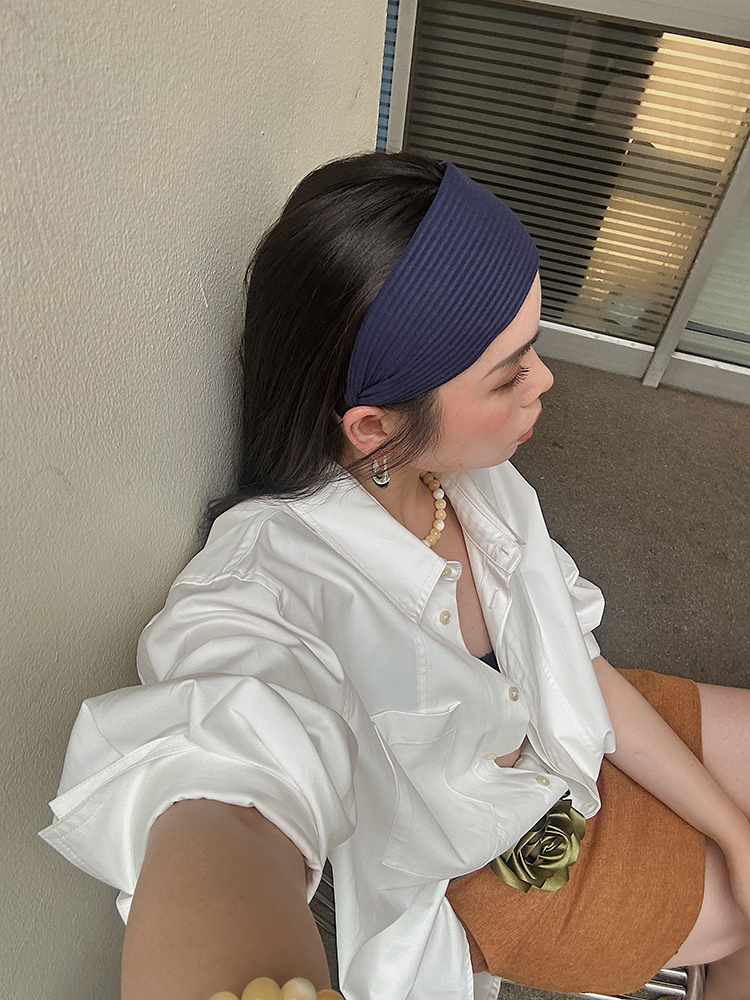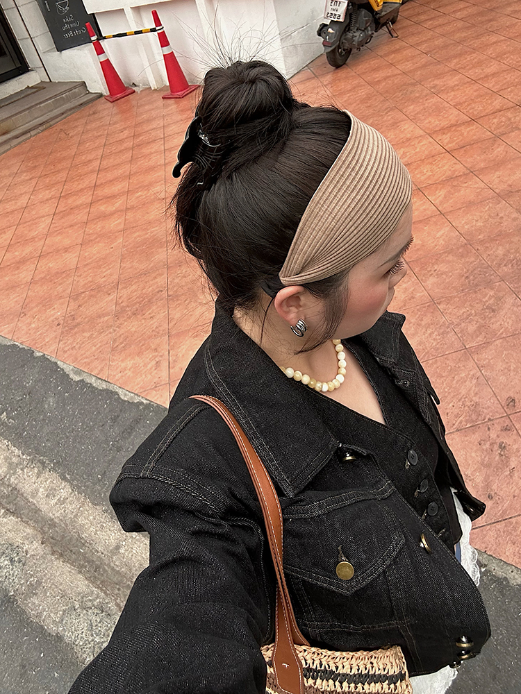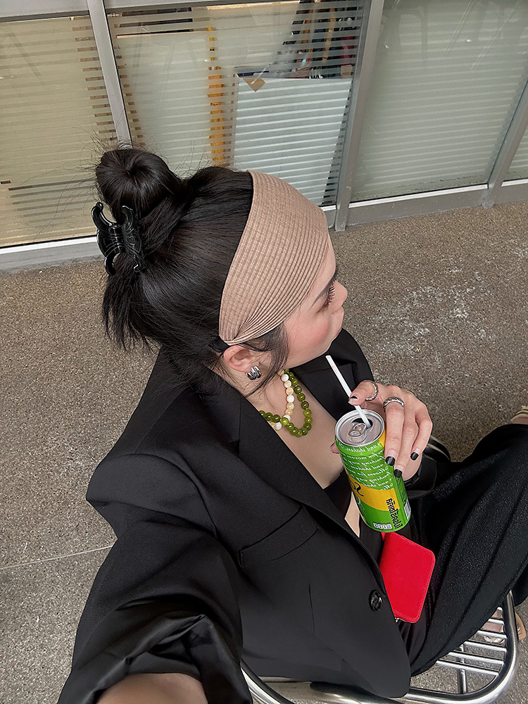 1CP 藏蓝色时尚百搭高颅顶发箍卡其色出游搭配头饰高级感灰色发卡