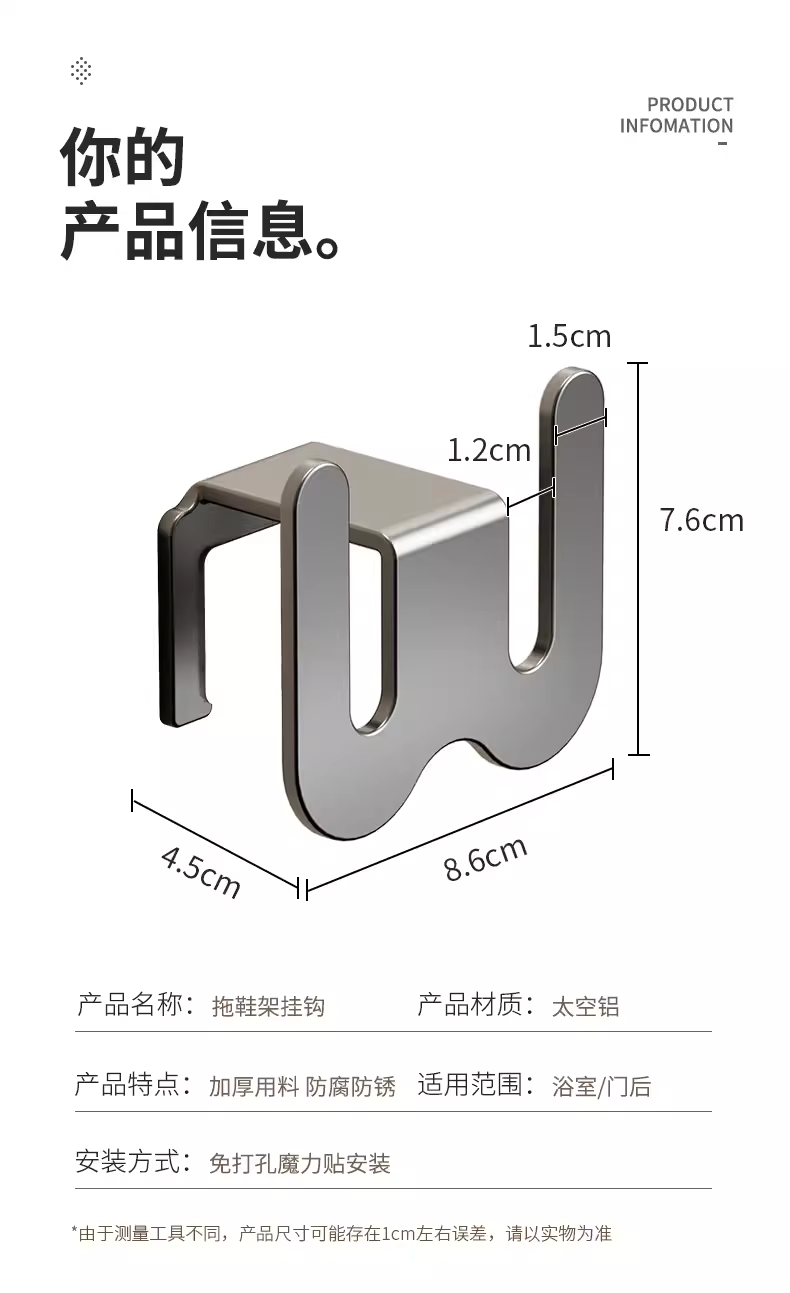 拖鞋收纳架免打孔壁挂浴室拖鞋架卫生间门后挂架沥水挂钩神器家装
